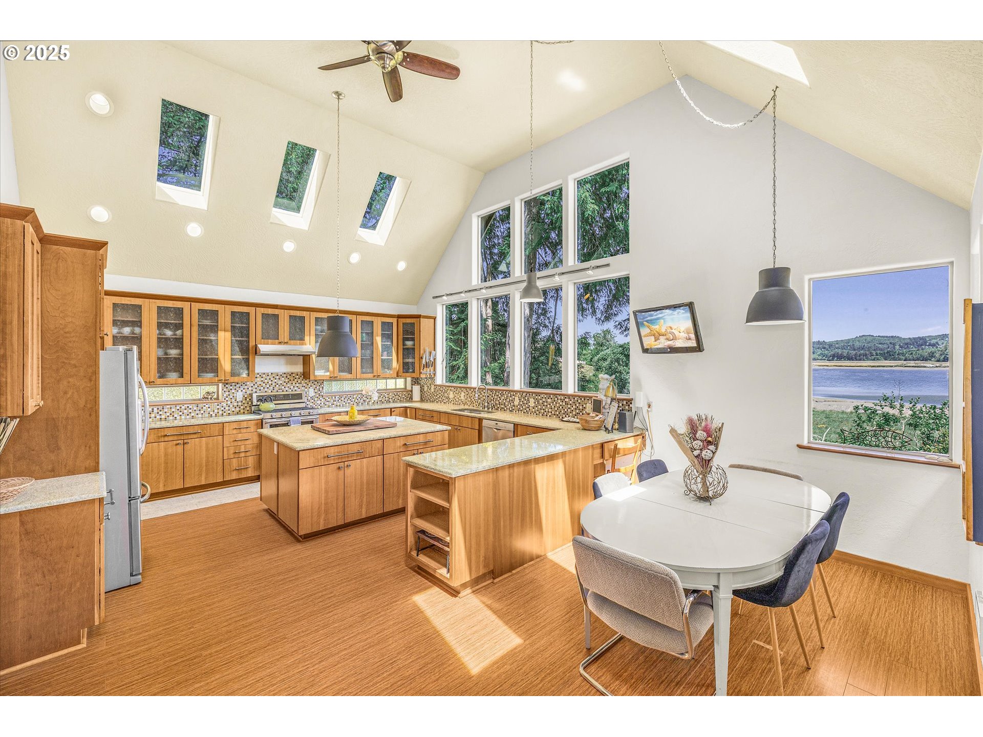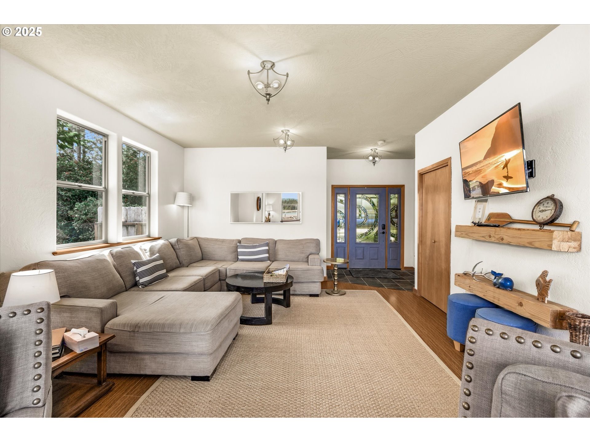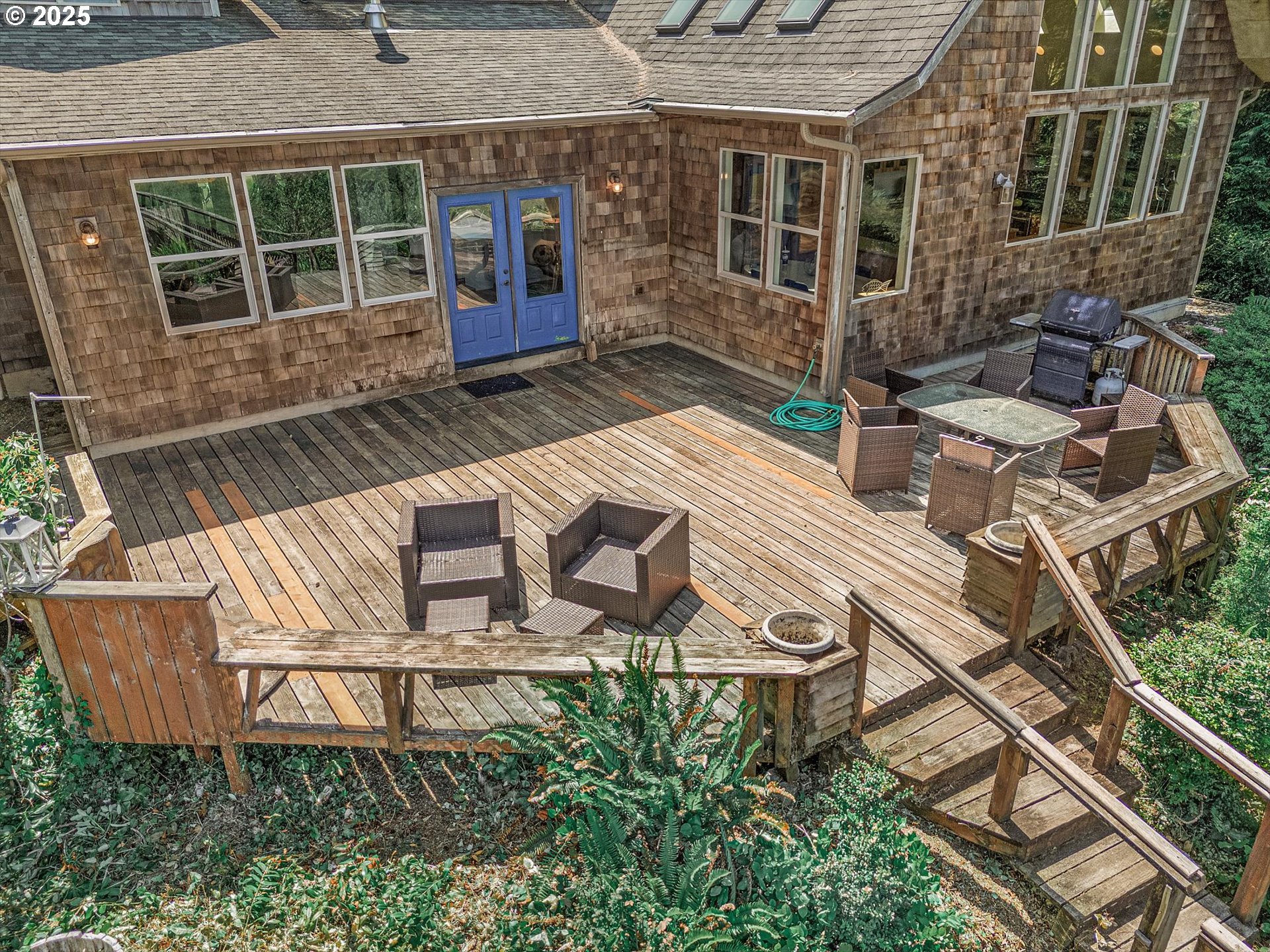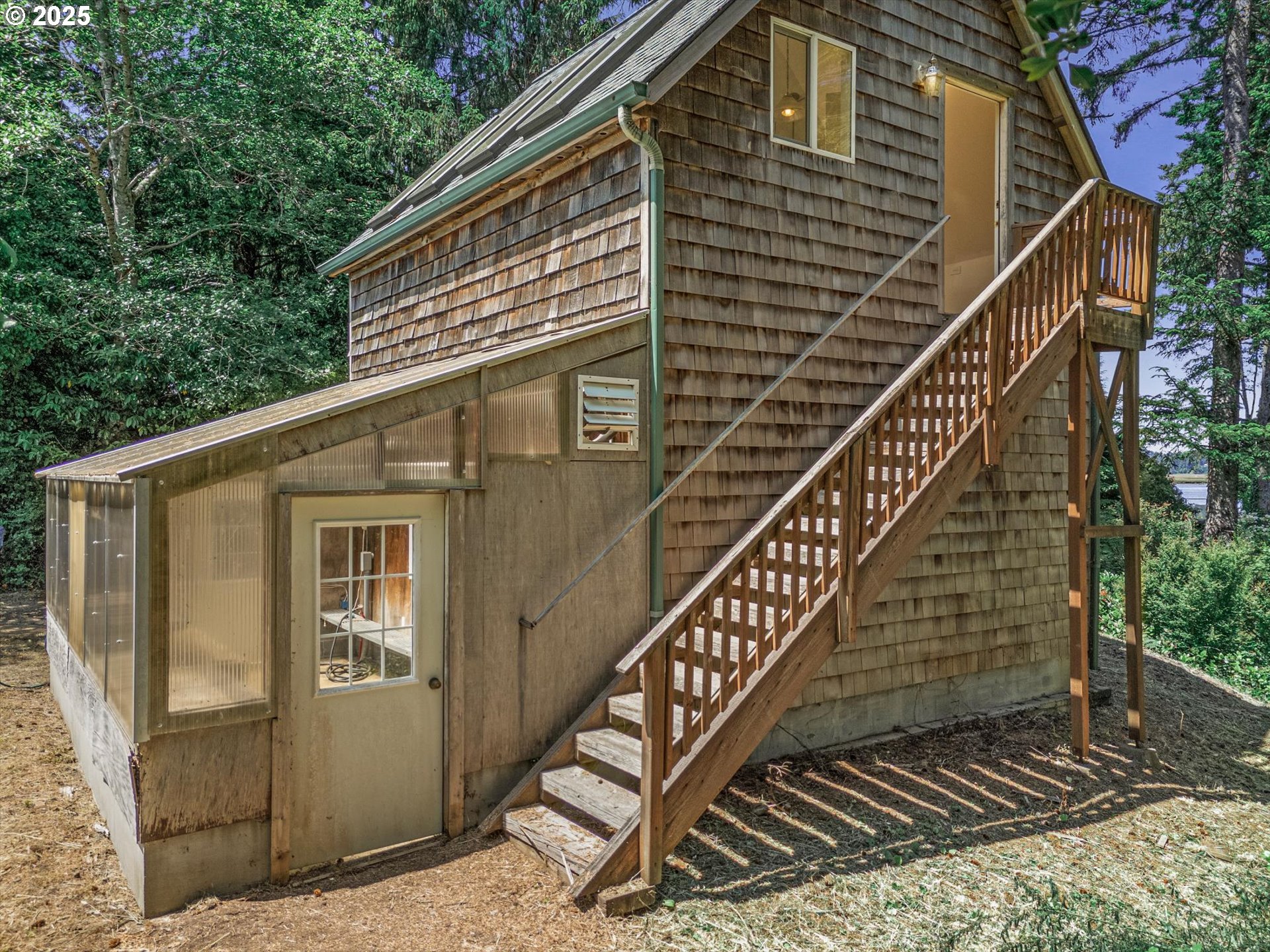 Welcome to your coastal paradise where rustic charm meets serene luxury on 3.73 lush, private acres just minutes from the beach, restaurants, and shops. This extraordinary riverfront property offers a rare blend of space, privacy, and lifestyle with direct access to a private dock via a scenic gangway, meandering natural stream, and stunning river views that provide a breathtaking backdrop year-round. FISH FOR SALMON AND CRAB OFF OF YOUR OWN PRIVATE DOCK!The 2,587 sq ft main house boasts three spacious bedrooms and two and a half beautifully appointed bathrooms. Inside, you’ll find soaring ceilings, large picture windows that flood the home with natural light, and an open-concept layout perfect for both entertaining and everyday living. The updated kitchen offers ample counter space and storage, while the living area flows seamlessly to a large back deck complete with a hot tub where you can soak in panoramic river vistas.Step outside and discover even more! A charming detached cabin with a wraparound porch, full kitchen, and private bath, perfect for guests, multi-generational living, or potential rental income. Adjacent to the main home, a detached garage houses a versatile studio space ideal for an art room, office, or guest suite, plus an attached greenhouse ready for year-round gardening.This one-of-a-kind property offers everything the Pacific Northwest lifestyle embodies: tranquility, convenience, and connection to nature. Whether you’re launching your kayak from your private dock, enjoying morning coffee on the deck, or exploring the nearby beach, every detail is designed to inspire. Don’t miss this rare opportunity to own a private riverside retreat with modern amenities and timeless charm. THIS IS A MUST SEE PROPERTY!