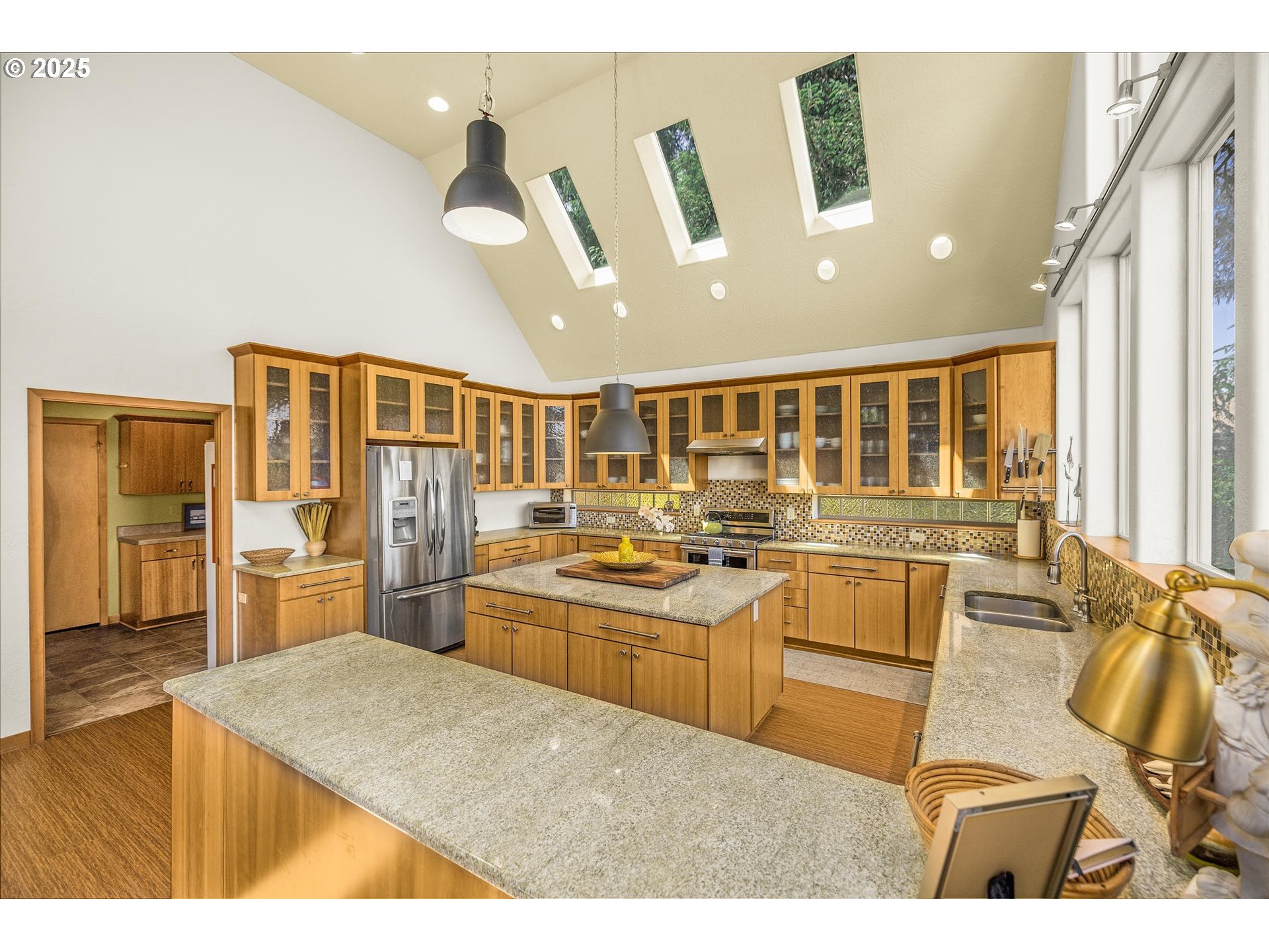 BuiltinOven, BuiltinRange, Cooktop, GasAppliances, Granite, Island, Pantry, RangeHood, SolidSurfaceCounterto