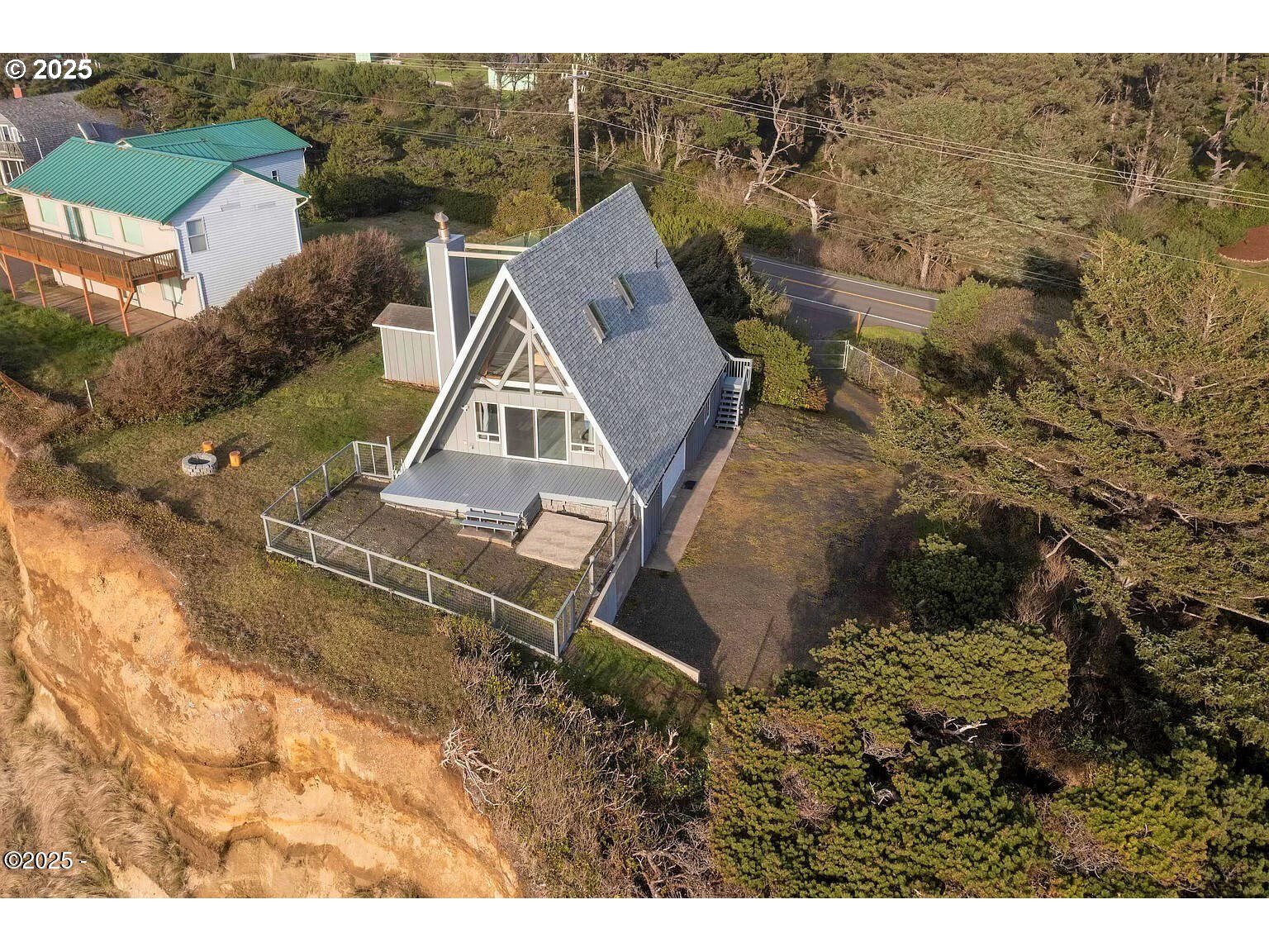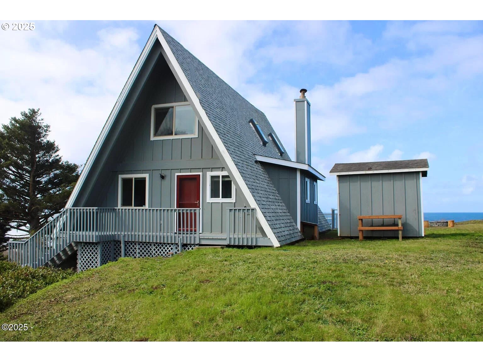 Above The Waves is a one-of-a-kind oceanfront A-frame nestled on 1.23 private acres in the serene coastal community of Seal Rock, Oregon. With a private drive, direct private beach access, and sweeping ocean views from two levels, this beautifully remodeled home offers the perfect blend of modern comfort and classic coastal charm. The light-filled main living area features dramatic west-facing windows, an electric fireplace, and opens to a spacious oceanfront deck ideal for enjoying sunsets or dining under the stars. The updated kitchen includes quality finishes and a functional layout suited for both casual meals and gourmet cooking. This unique home features three true bedrooms, each on its own level to provide privacy and flexibility. The luxurious primary suite occupies the entire top floor and showcases panoramic ocean views, a spa-inspired ensuite with a walk-in shower, and a dedicated workspace. The second bedroom is located on the main floor, offering convenient access to the main living areas. The third bedroom is on the lower level, perfect for guests or additional family members. Also on the lower level is a fourth non-conforming bedroom currently without a window which serves well as a bonus room, media room, or home office. Buyers have the option to add a window and convert it into a legal fourth bedroom, or simply enjoy the space as-is for flexible use. Whether you're seeking a peaceful coastal retreat, a place to host loved ones, or an investment in Oregon’s natural beauty, this rare oceanfront property offers unmatched privacy, style, and direct access to miles of sandy beach.