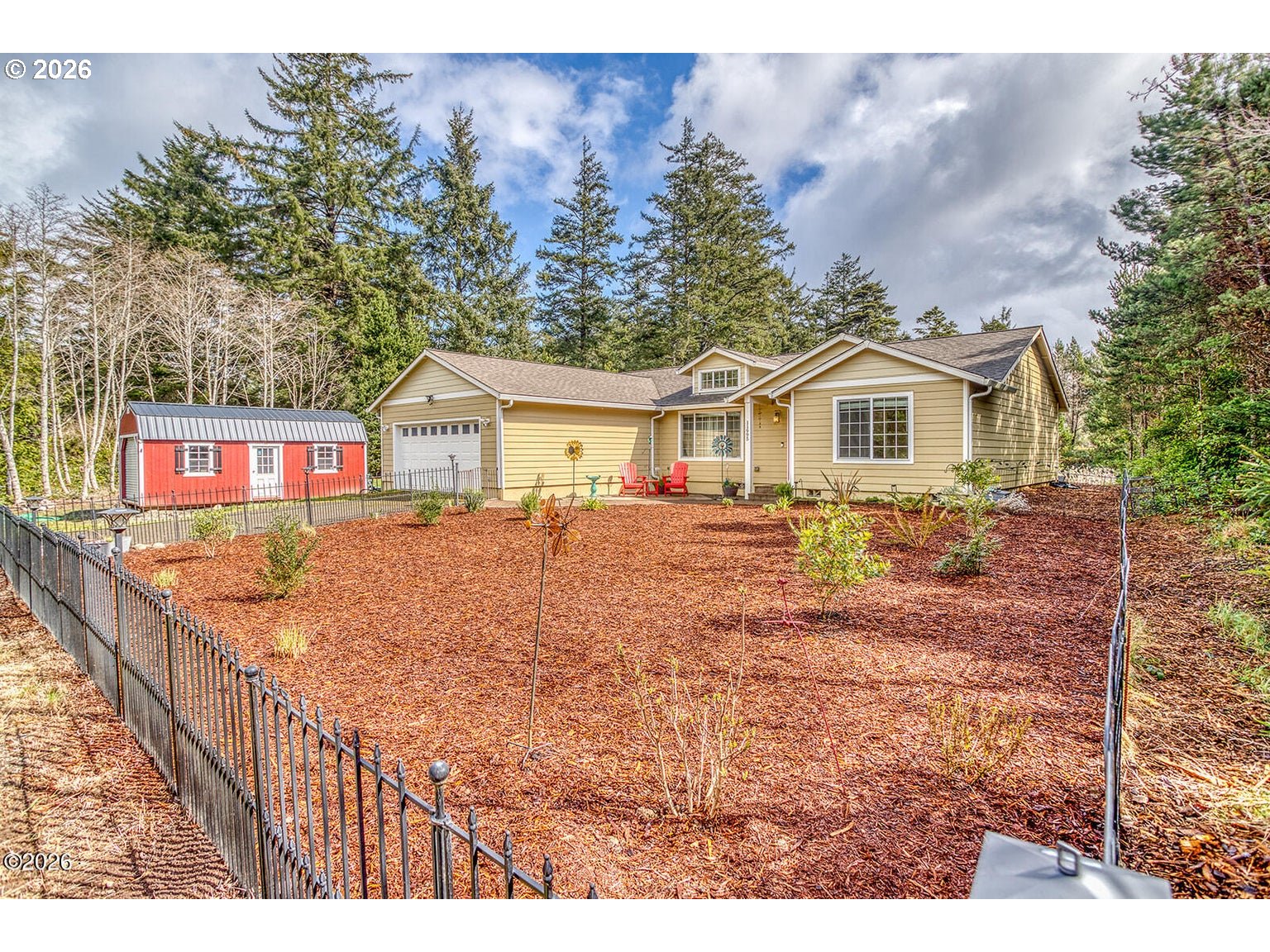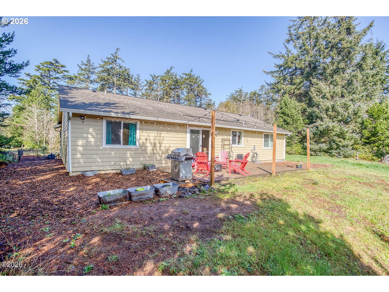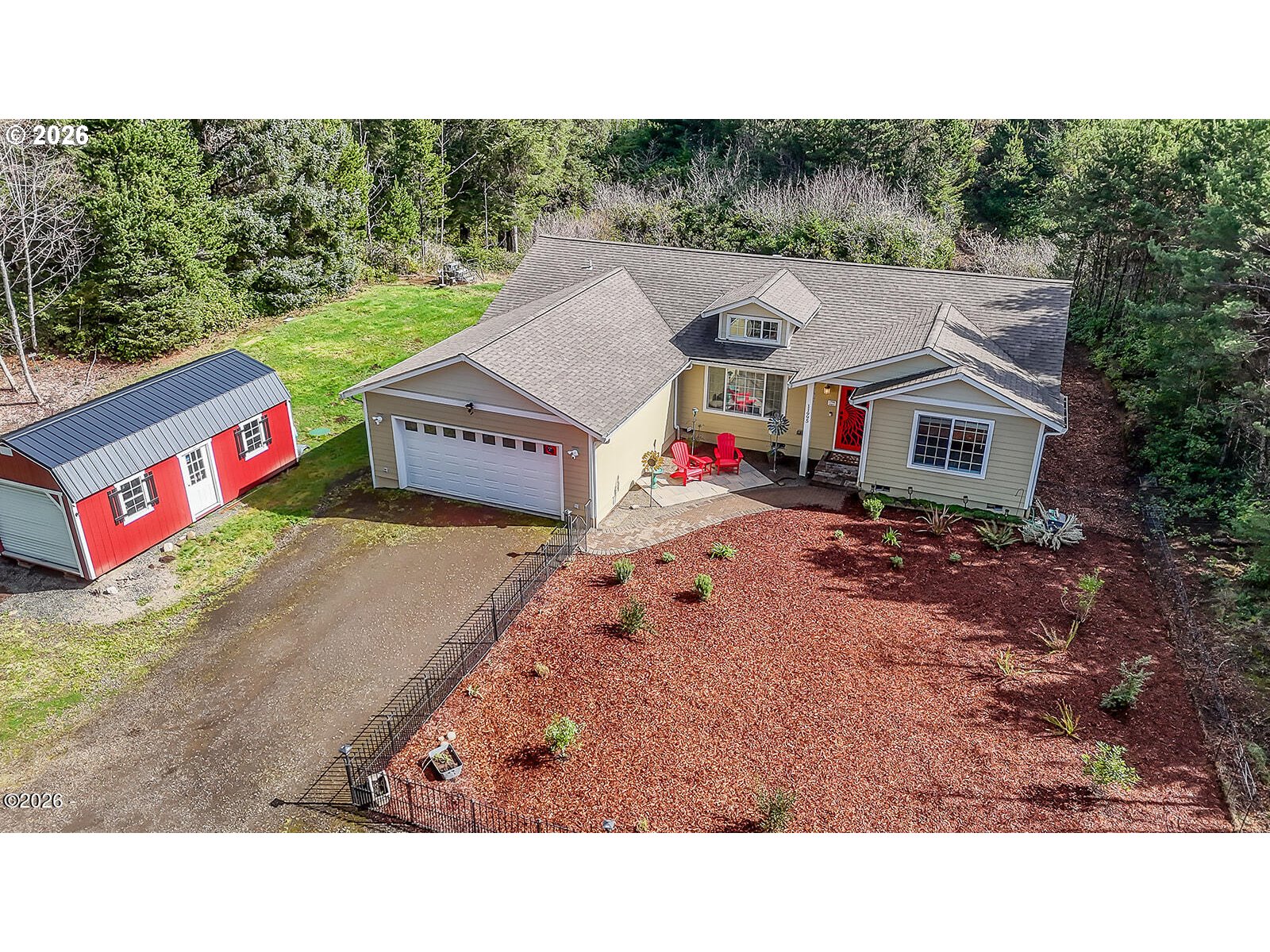 Set on nearly an acre in the coastal community of Seal Rock, this beautifully maintained home offers a peaceful setting surrounded by trees with the soothing sound of the ocean nearby. The property provides privacy and natural beauty while remaining conveniently located just minutes from Newport and Waldport. Built in 2019, this move-in ready home features thoughtful upgrades and a bright, open feel throughout. Large windows and a dormer in the living room bring in abundant natural light and highlight the surrounding forest views. The spacious primary suite offers a relaxing retreat with a large walk-in closet and an ensuite bathroom complete with dual vanities, a soaking tub, and a separate shower. The kitchen is designed for both everyday living and entertaining, featuring a custom backsplash, an oversized breakfast bar, and premium appliances. Just outside, the custom patio is wired for a hot tub, creating the perfect spot to relax and enjoy the peaceful sounds of the forest and ocean. With ample space for recreational vehicles, outdoor gear, or additional storage, this property offers flexibility and room to enjoy the best of coastal living.