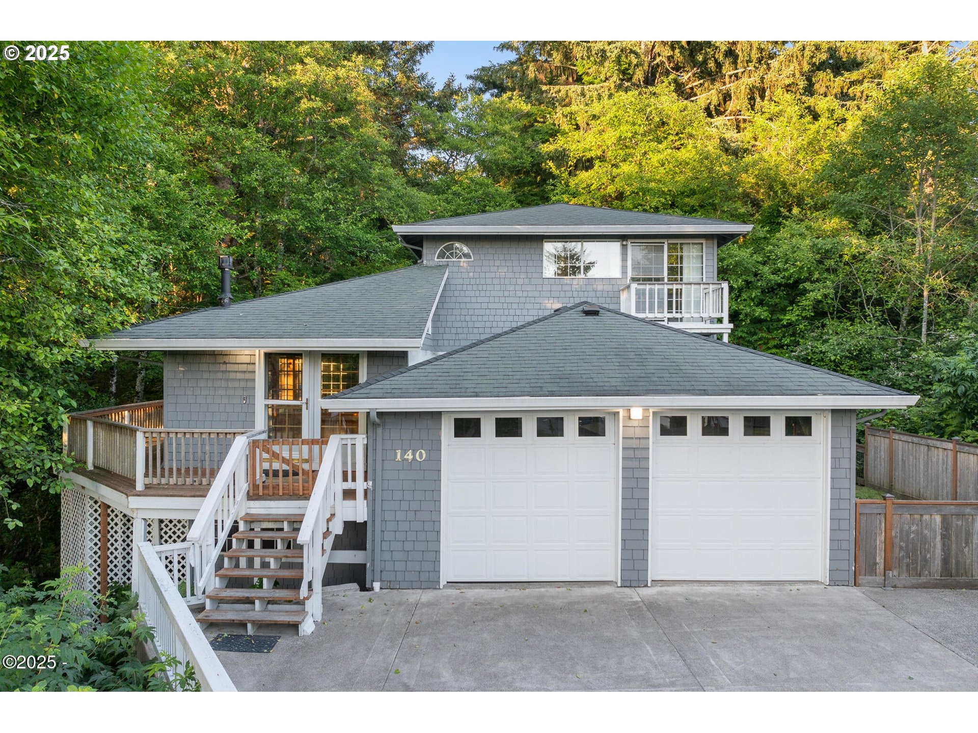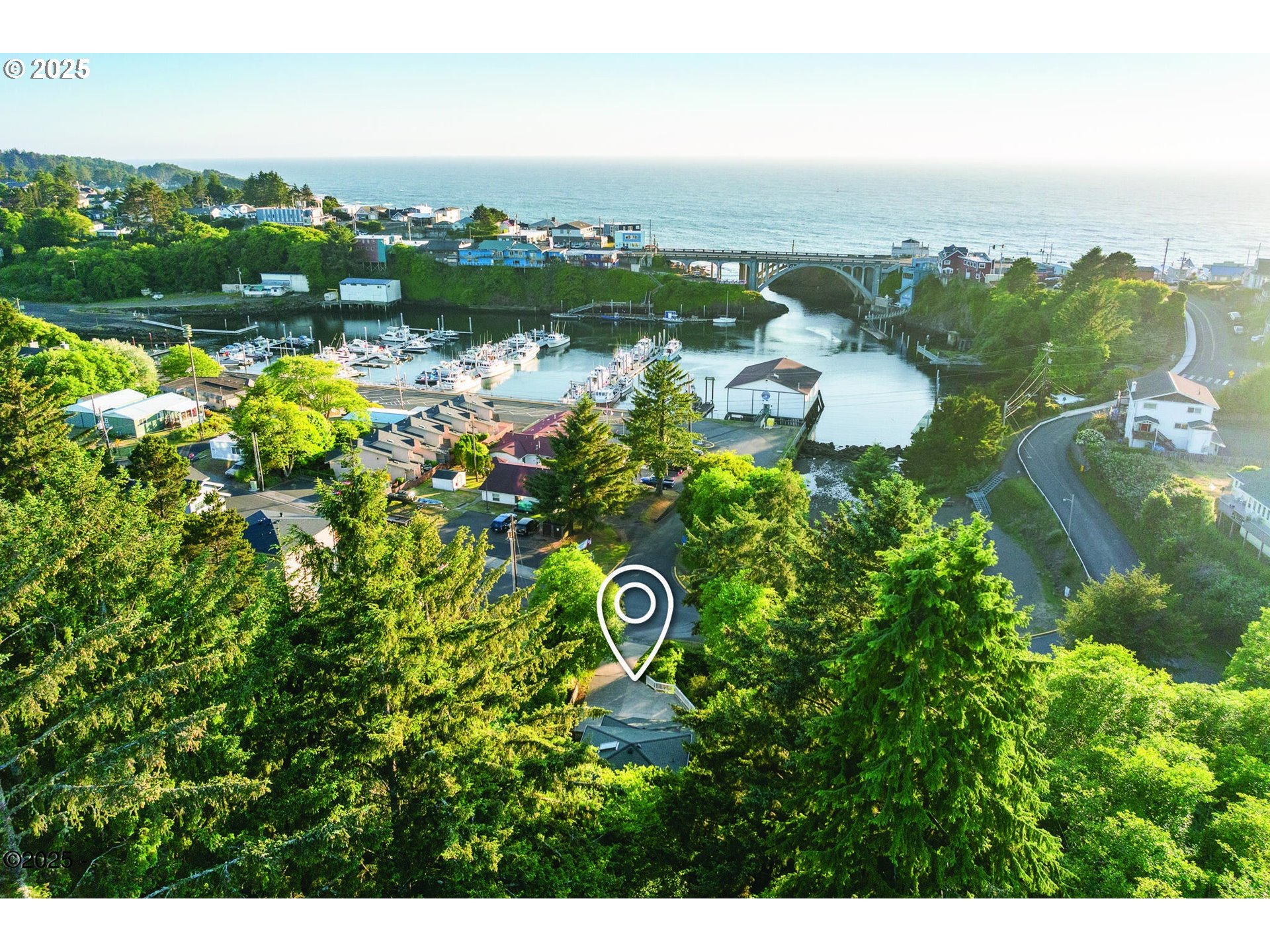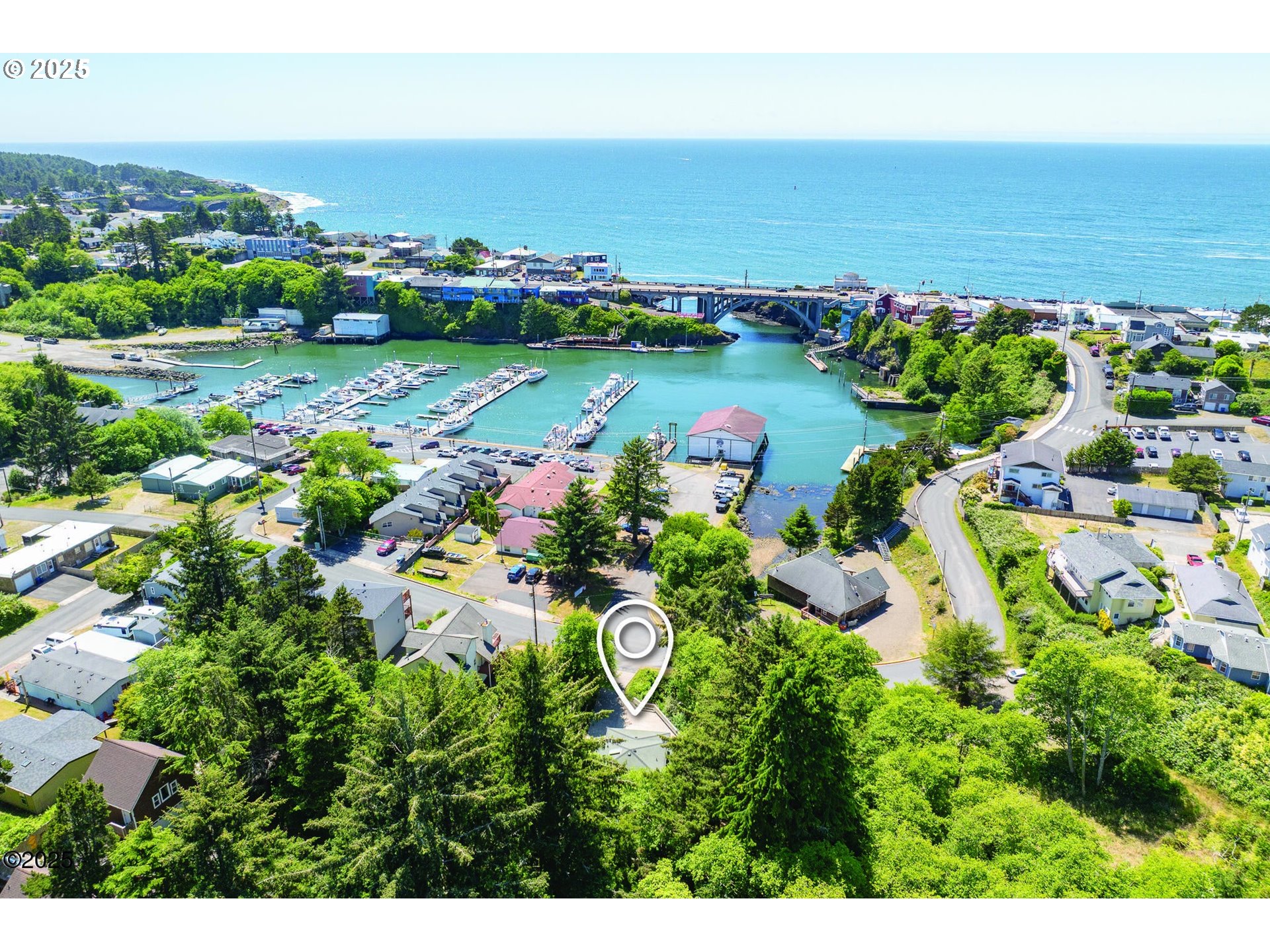 Perched above Depoe Bay Harbor and bordered by the gentle flow of North Depoe Bay Creek, this custom-built coastal home offers a rare blend of privacy, charm, and natural beauty. Set on a spacious lot, the property features a fenced pet area and gated decks, making it ideal for animal lovers. Inside, you'll find a bright, open layout with large windows that frame sweeping views of lush greenspace and the harbor below. A cozy gas fireplace serves as a warm focal point in the living area—perfect for relaxing after a day of coastal adventures. The primary suite includes a walk-in closet and a classic clawfoot tub, while both the bathroom and utility room have been thoughtfully updated.Ample parking is available for guests or recreational vehicles, and a past property survey provides clarity on the boundaries. Out back, a Zen-inspired yard offers a tranquil retreat, with North Depoe Bay Creek providing a soothing natural soundtrack to daily life. Located in the heart of Depoe Bay, you're just minutes from world-famous whale watching, deep sea fishing, oceanfront dining, local shops, art galleries, and scenic coastal trails. Enjoy nearby attractions like Boiler Bay, Whale Cove, and the dramatic Depoe Bay sea wall.