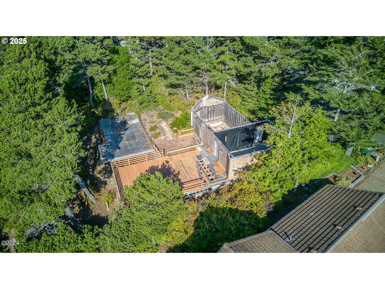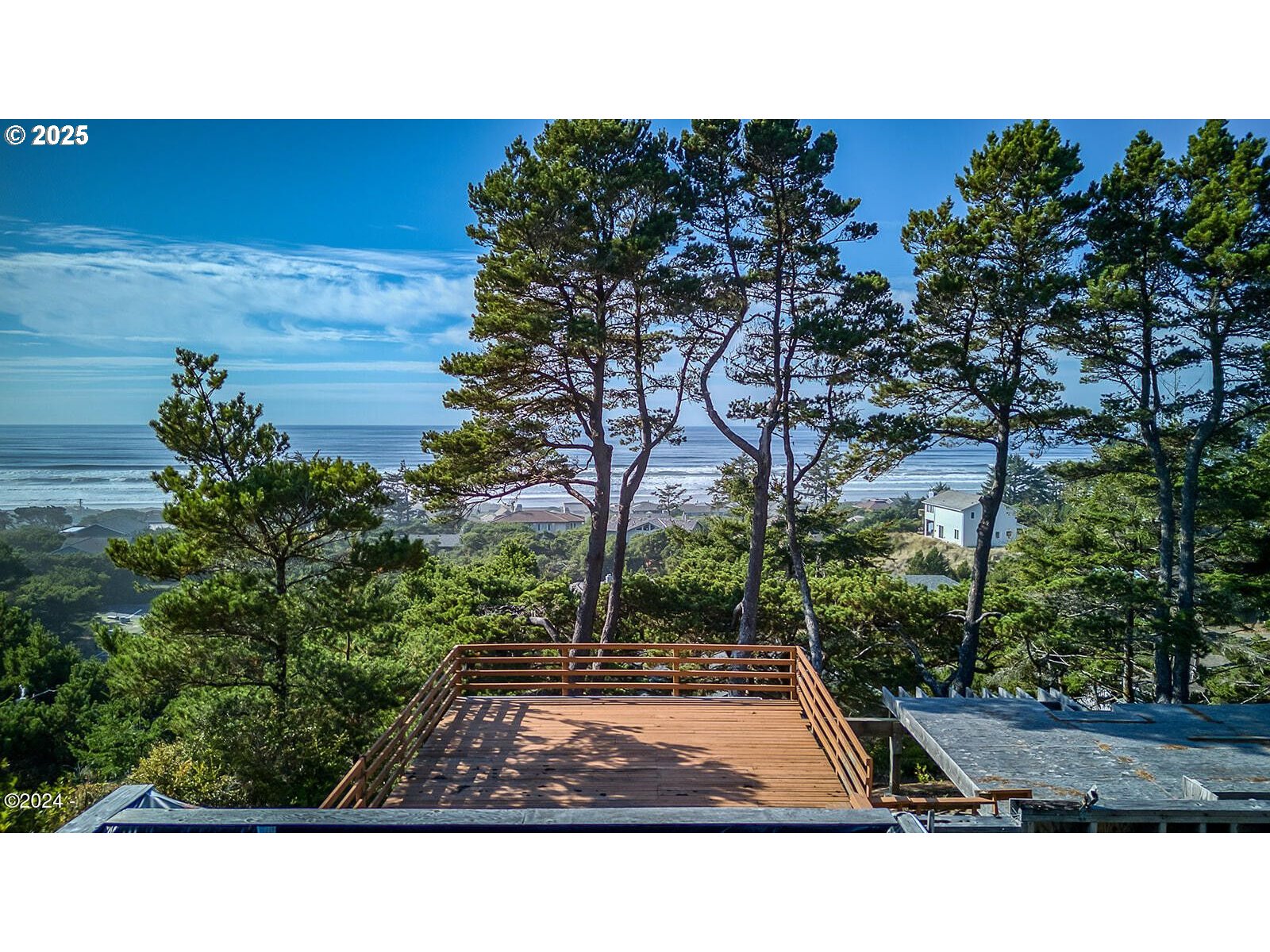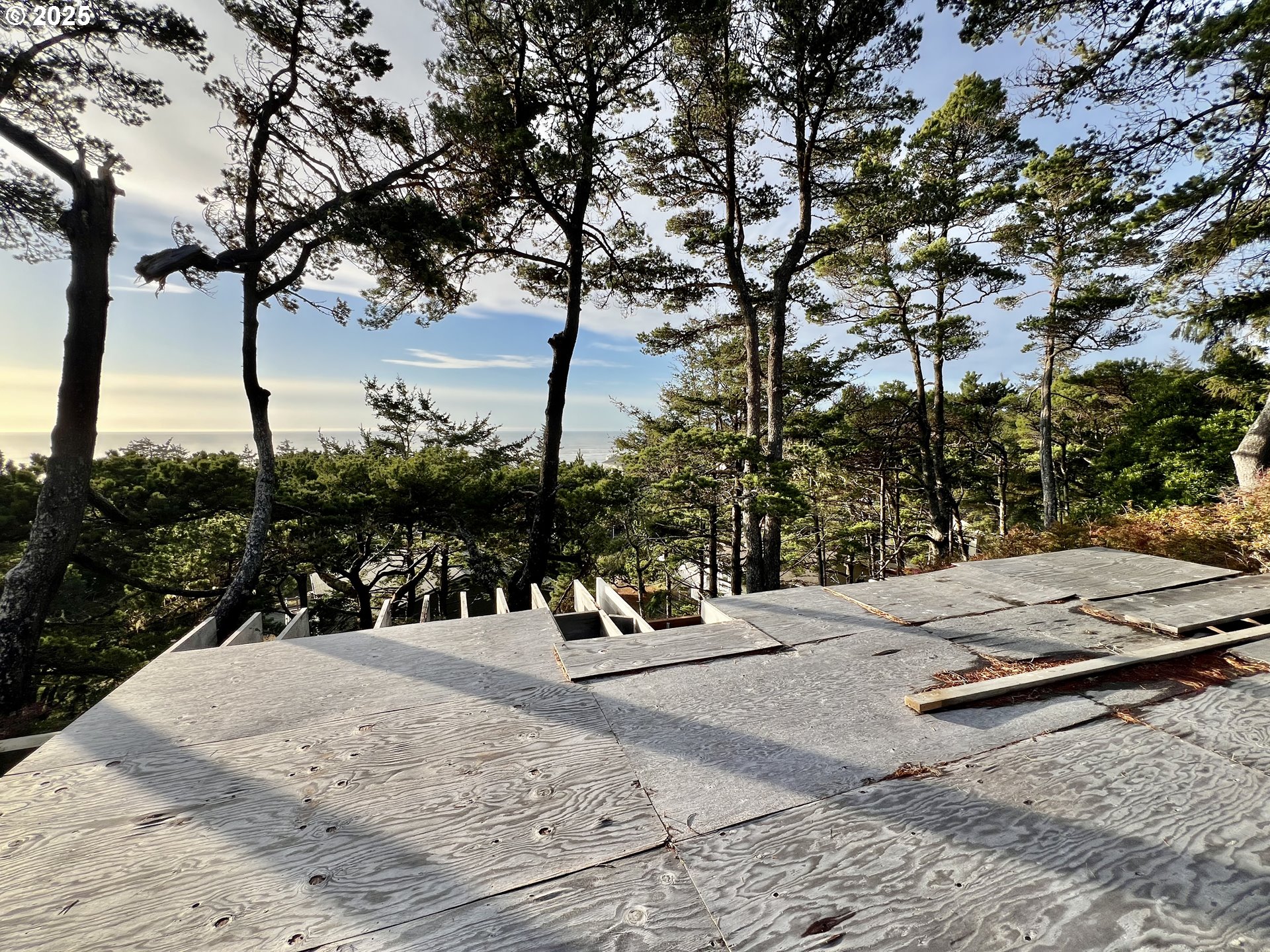 Expansive ocean views await from this prime lot in Sandpiper Village. Nestled among coastal pines, this property offers a stunning Pacific panorama and the perfect setting for your dream home. The lot features an existing foundation, a septic system, and all utilities in place—ready for your vision. Positioned above the flood and tsunami zones, it provides both peace of mind and natural beauty. With a low annual HOA fee and original home drawings available, this is a rare opportunity to create your ideal coastal retreat.