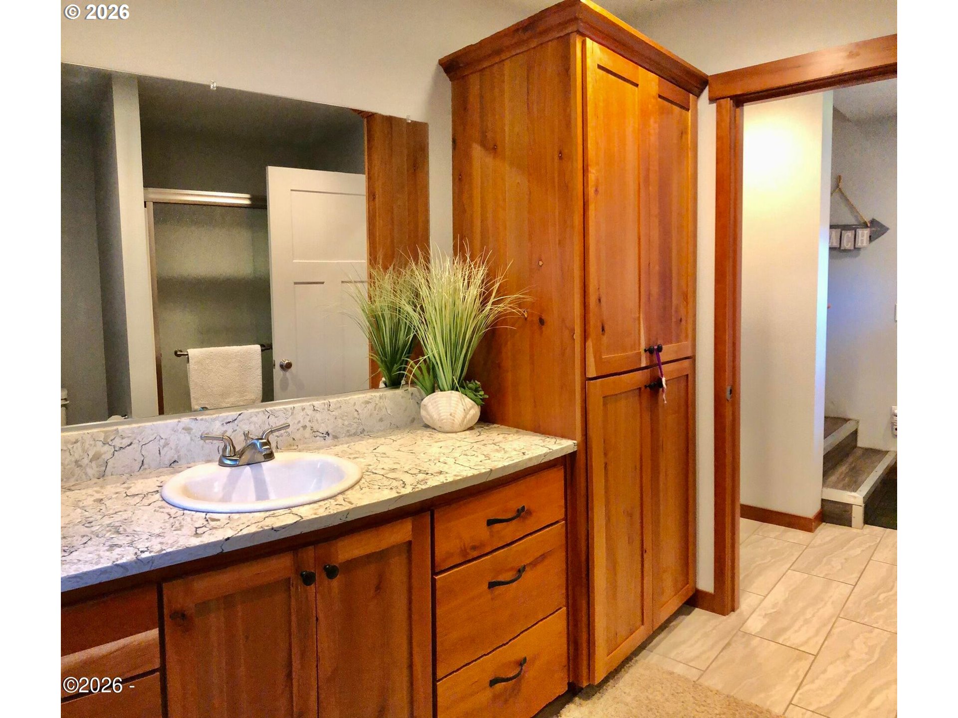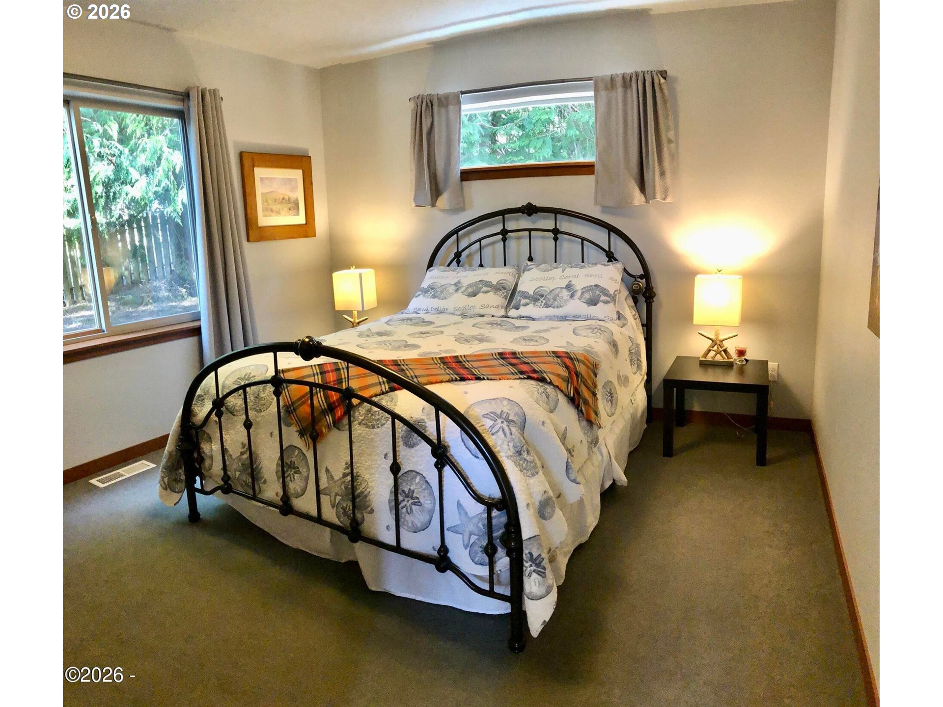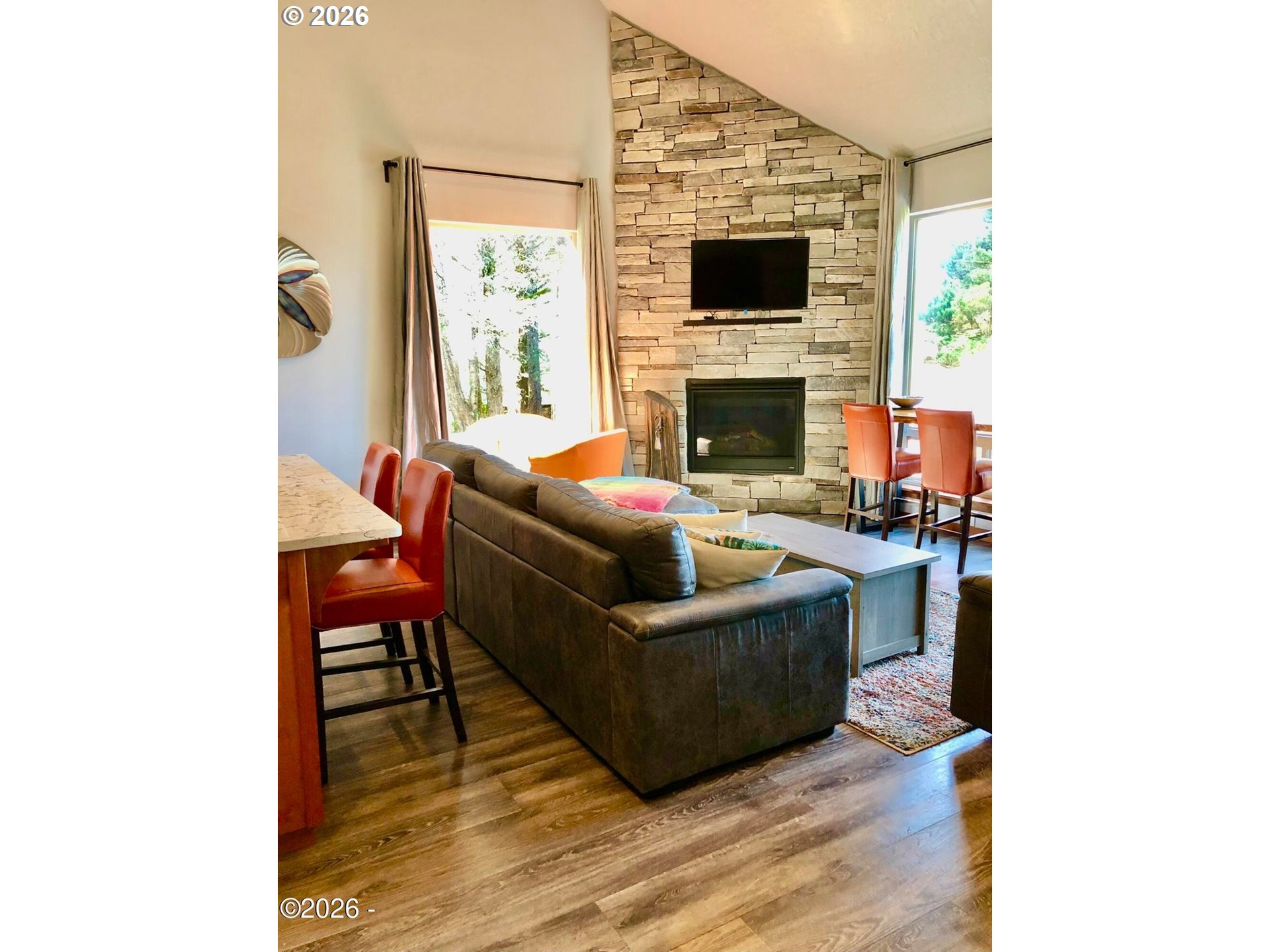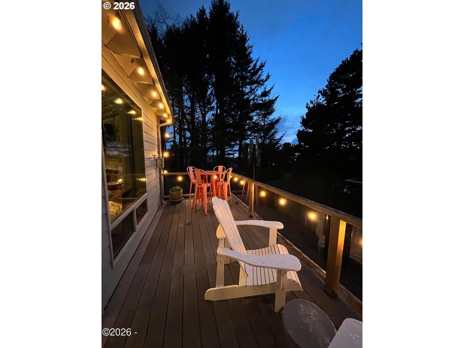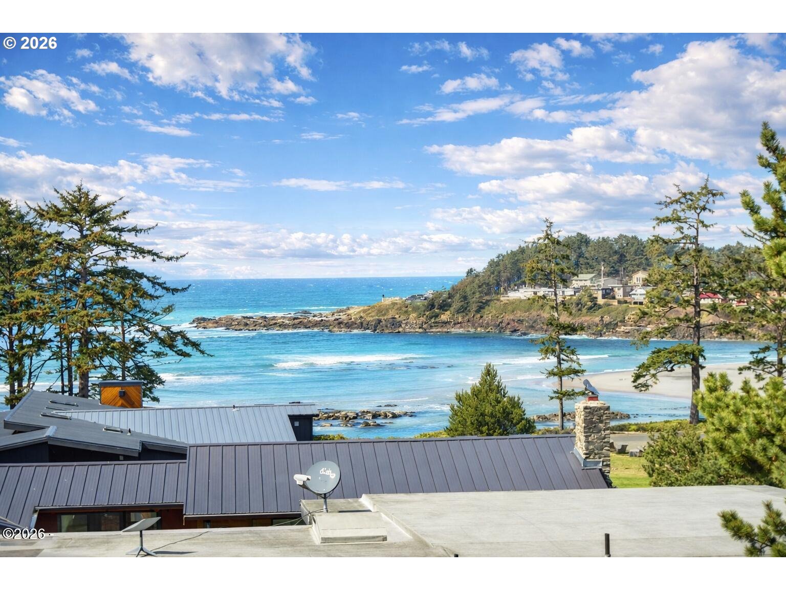 (503) 893-8874Ocean, bay, and rocky shoreline views define this exceptional coastal retreat. From the main living area and deck, enjoy ever-changing scenery—whales migrating, surfers riding the swell, and stunning sunsets that transition into evenings filled with distant boat lights and the soothing sound of the ocean. Built in 2016 and located just west of Hwy 101, this private 3-level home sits approximately one block from the shoreline and includes a deeded walking easement to Ocean Road with access to a sandy beach. A protected view corridor helps preserve the sweeping vistas. The main level features vaulted ceilings, expansive west-facing windows, and a floor-to-ceiling stone gas fireplace that anchors the space. The kitchen offers quartz countertops, cherry cabinetry, a large island, and a gas range—ideal for cooking and gathering. A custom staircase railing with an ocean-inspired design adds a unique architectural touch. The primary suite showcases both ocean and bay views and includes a soaking tub with water views, double shower, quartz vanity, and cherry cabinetry. The entry level provides a spacious guest bedroom, full bath with double shower, and access to the attached two-car garage with laundry and additional shop space. RV/boat parking is also available. The loft above provides flexible sleeping space, a half bath, and a vantage point to enjoy fireworks and the setting moon over Yachats Bay. Additional features include central heat and A/C, on-demand hot water, excellent insulation, and chair lift wiring. An outdoor hot/cold faucet is perfect after beach outings. The loft offers flexible sleeping space, a half bath, and elevated views.The landscaped yard includes hydrangeas, crocosmia, raised beds, and mature cedar trees. A detached studio (built 2023) with electricity and Wi-Fi is ideal for creative use. Located on a quiet dead-end street, this home offers privacy, natural beauty, and coastal living at its finest. Offered furnished if desired.