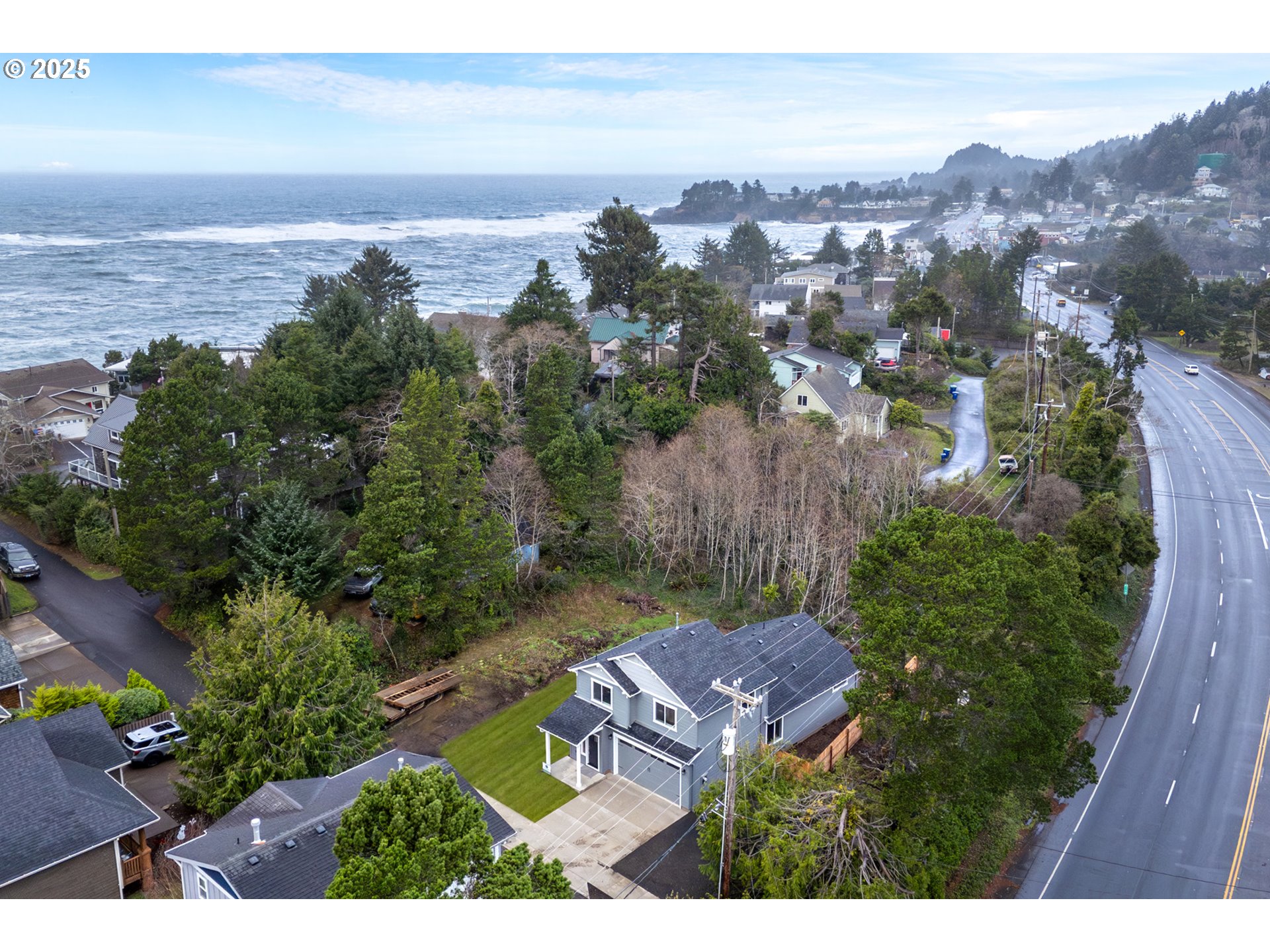 Rare opportunity! This brand-new construction home, sits in C-1 zoning with short-term rental eligibility, no HOA, no CCRS, and RV parking —a fantastic find in sought-after Depoe Bay. Ideally located just minutes from downtown, the historical harbor, scenic trails, beaches, restaurants, and sightseeing. The popular Harrison plan by Simplicity Homes offers convenient main-level living, featuring a primary suite with an en-suite bathroom, a main-floor laundry room, powder room, living room, and a spacious kitchen. Interior highlights include luxury vinyl flooring, plush carpeting in bedrooms, quartz countertops, oak cabinetry, and stainless steel appliances. Upstairs, you’ll find a spacious loft, two additional bedrooms, and a full bathroom.Enjoy thoughtful upgrades throughout: 8-ft garage ceilings, solar-ready, a covered patio, partially fenced yard, and gas BBQ hookup. Whether you’re looking for an investment property, a vacation getaway, or the perfect full-time home, this property checks all the boxes. Don’t miss out! *Some photos are virtually staged*.