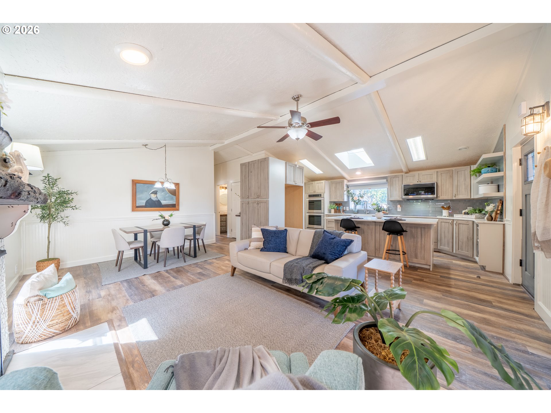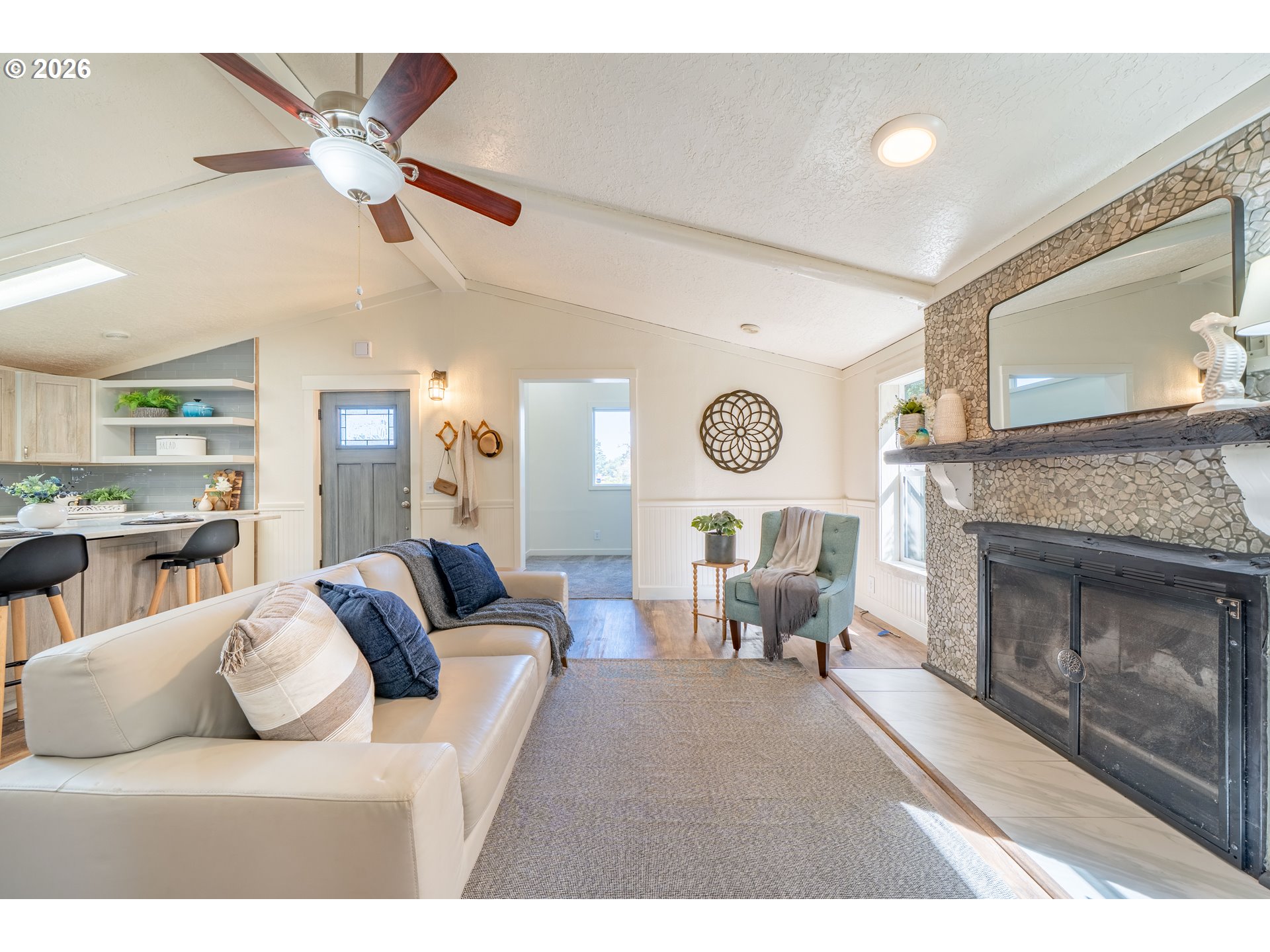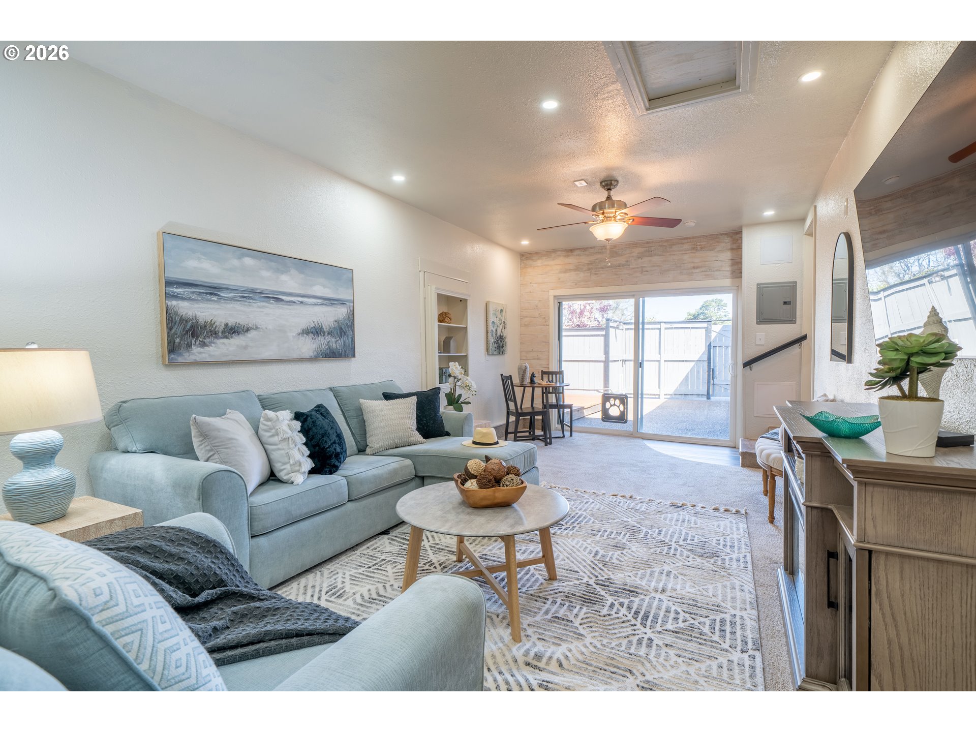 (503) 893-8874Introducing The Deep Blue. Some homes are simply houses, The Deep Blue is a feeling! Tucked along a quiet street just moments from the shoreline, The Deep Blue is a home that has been carefully designed with both comfort & coastal living in mind. With beach access only a two-minute stroll away & a community garden just next door, the setting invites a slower, more intentional pace where mornings begin with ocean air & evenings wind down under open skies. Inside, the home opens to a light-filled living space where vaulted ceilings, beams, & a skylight create an airy, welcoming atmosphere. The kitchen has been completely rebuilt with a refined, modern sensibility—featuring a central island, open shelving, pantry, built-in double ovens, glass cooktop, & a two-drawer dishwasher. Beadboard wainscoting & a charming garden window add warmth & texture, blending craftsmanship with clean and subtle beachy design. A Dutch door offers a charming transition to the secondary living space, where a large sliding glass door leads to the expansive patio. An elevated deck & generous entertaining area are complemented by a hot and cold exterior spigot—perfect for rinsing away sand after a day at the beach. The fenced front patio includes a separate dog run, while the back yard patio offers exceptional privacy. Back inside, a built-in bookshelf reveals a hidden door to a substantial storage area, thoughtfully outfitted with shelving. The hall bath is finished with a vessel sink, butcher block counter, whitewashed tongue-and-groove walls, & a skylight above. The primary suite is spacious & serene, featuring a tall walk-in closet with multi-level hanging & a well-appointed ensuite with additional storage. Whether as a full-time residence, a coastal retreat, or an investment opportunity, this home offers a rare combination of meticulous updates, functional design, & immediate access to the best of the Oregon coast. The Deep Blue isn't just move-in ready, it's life-ready.