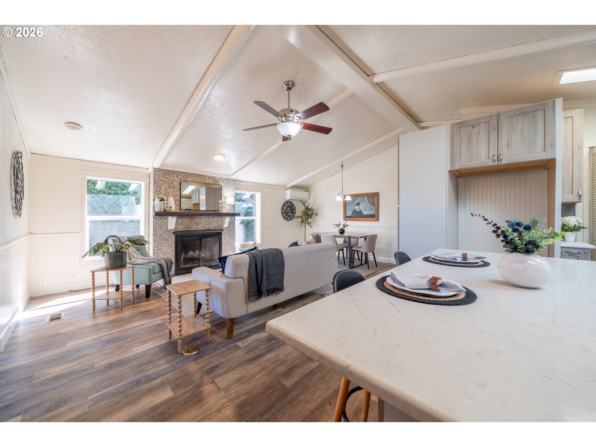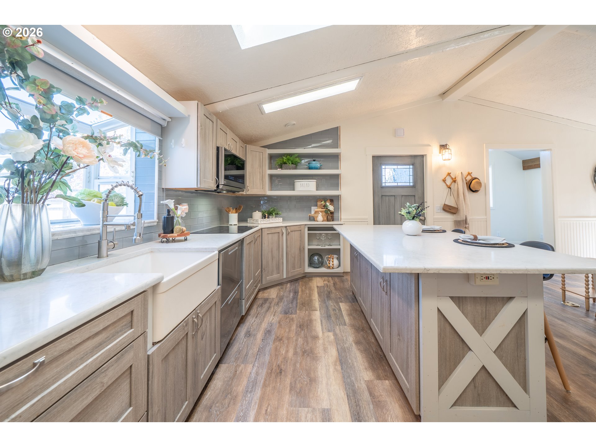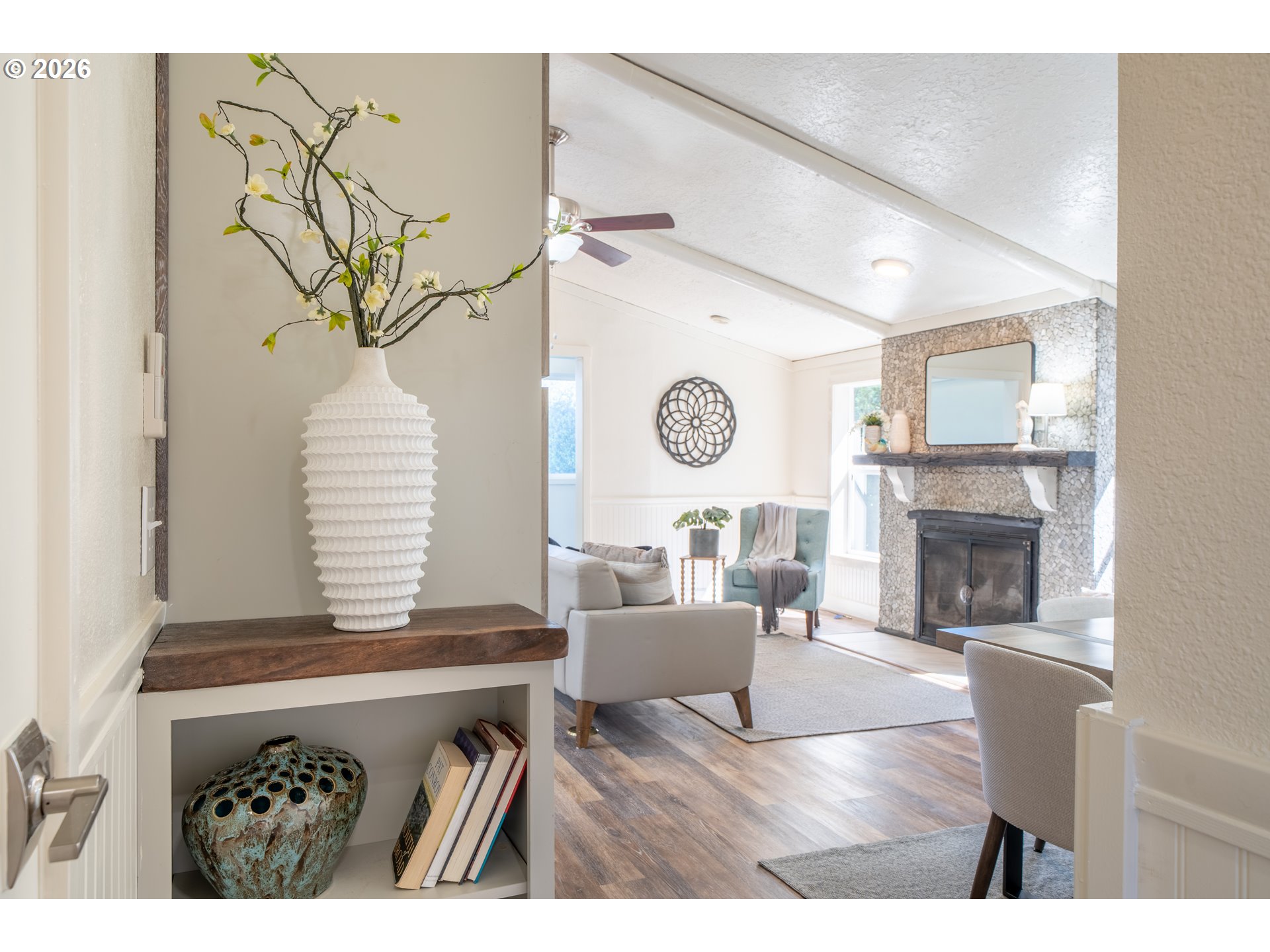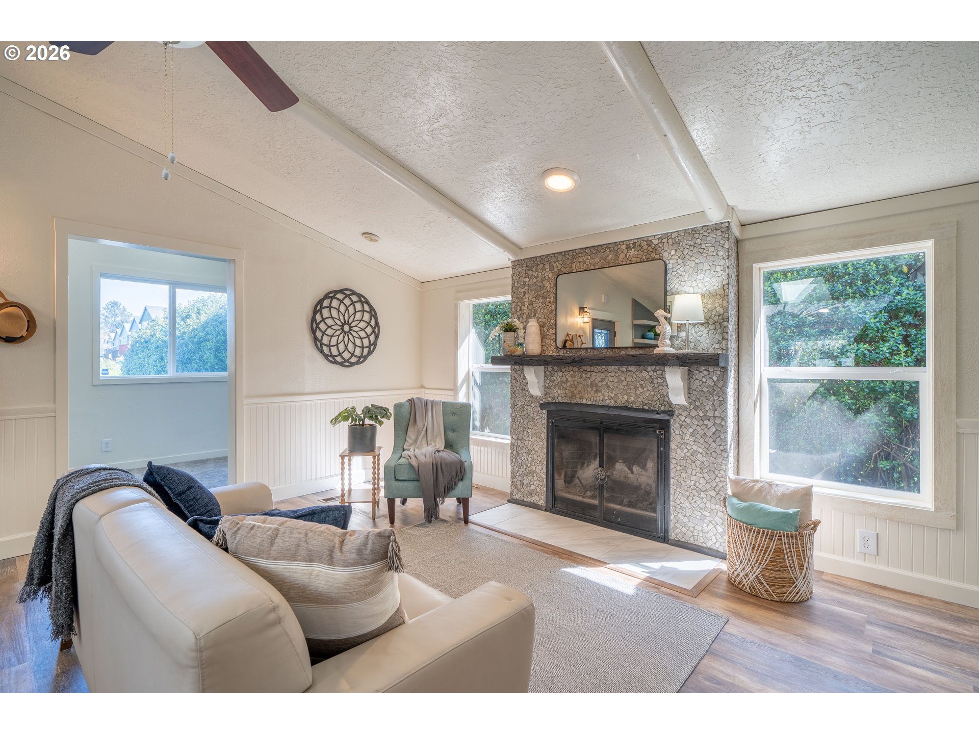 (503) 893-8874Introducing The Deep Blue. Some homes are simply houses, The Deep Blue is a feeling! Tucked along a quiet street just moments from the shoreline, The Deep Blue is a home that has been carefully designed with both comfort & coastal living in mind. With beach access only a two-minute stroll away & a community garden just next door, the setting invites a slower, more intentional pace where mornings begin with ocean air & evenings wind down under open skies. Inside, the home opens to a light-filled living space where vaulted ceilings, beams, & a skylight create an airy, welcoming atmosphere. The kitchen has been completely rebuilt with a refined, modern sensibility—featuring a central island, open shelving, pantry, built-in double ovens, glass cooktop, & a two-drawer dishwasher. Beadboard wainscoting & a charming garden window add warmth & texture, blending craftsmanship with clean and subtle beachy design. A Dutch door offers a charming transition to the secondary living space, where a large sliding glass door leads to the expansive patio. An elevated deck & generous entertaining area are complemented by a hot and cold exterior spigot—perfect for rinsing away sand after a day at the beach. The fenced front patio includes a separate dog run, while the back yard patio offers exceptional privacy. Back inside, a built-in bookshelf reveals a hidden door to a substantial storage area, thoughtfully outfitted with shelving. The hall bath is finished with a vessel sink, butcher block counter, whitewashed tongue-and-groove walls, & a skylight above. The primary suite is spacious & serene, featuring a tall walk-in closet with multi-level hanging & a well-appointed ensuite with additional storage. Whether as a full-time residence, a coastal retreat, or an investment opportunity, this home offers a rare combination of meticulous updates, functional design, & immediate access to the best of the Oregon coast. The Deep Blue isn't just move-in ready, it's life-ready.