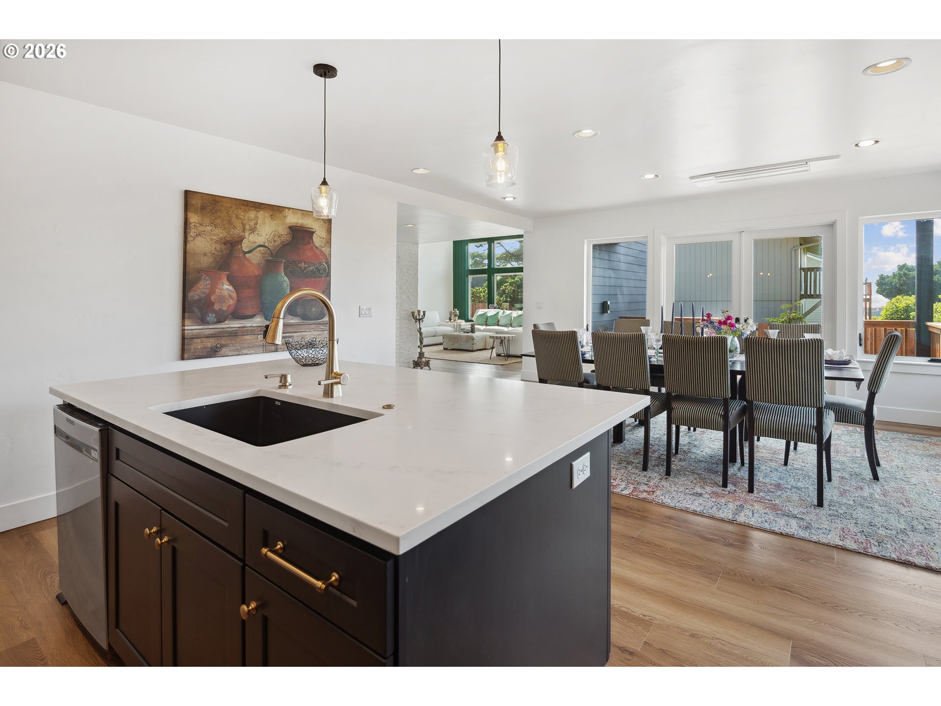 This 2024 meticulously redesigned coastal estate in Downtown Lincoln City offers a rare, turn-key investment opportunity on a highly coveted STR-zoned double lot. Spanning five bedrooms and 3.5 bathrooms, the contemporary floor plan is purpose-built for high-occupancy luxury, featuring vaulted ceilings and 56 windows that flood the home with natural light and Pacific Ocean views. The property balances high-end aesthetics—like Santa Fe wall finishes and heated bathroom floors—with practical durability, utilizing commercial-grade luxury vinyl flooring and a comprehensive live-streaming surveillance system. Sold fully furnished with ample guest and RV parking, this property is perfectly positioned within walking distance of the beach, casino, and dining, making it a premier short-term rental powerhouse. LA related to seller.