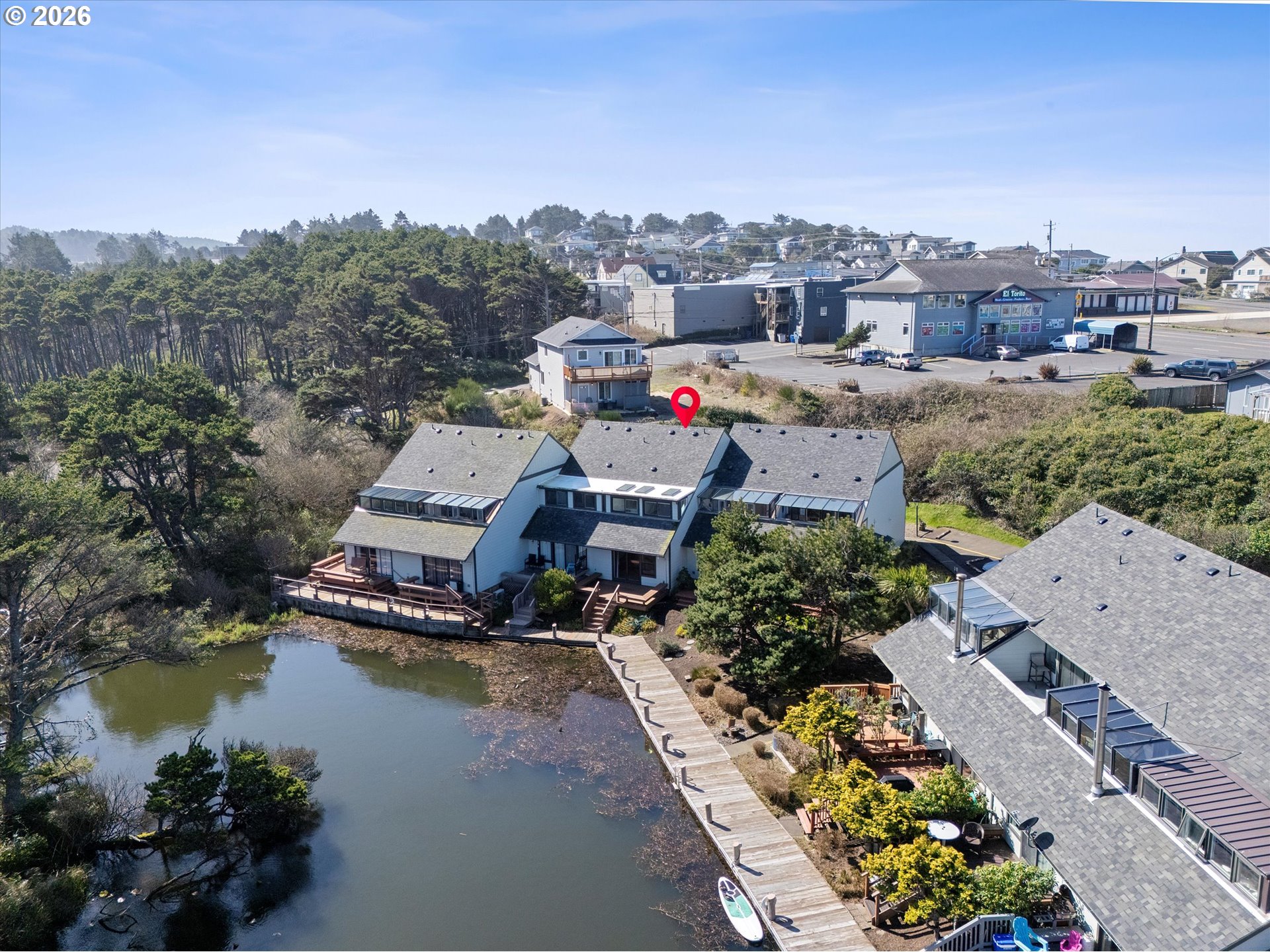 WATERFRONT Lincoln City townhome style condo on the canal leading to Devils Lake. Pack your bags, this home is Move in ready! This home has had a recent total remodel to include: High end luxury bamboo top of the line flooring, custom built glass front kitchen cabinetry with quiet closing drawers, eat in breakfast bar, beautiful lighting fixtures, stainless steel kitchen appliances, built in 24 bottle Wine Captain fridge with 2 separate cooling zones, granite counter tops, new plumbing fixtures, custom crafted tile work throughout, interior paint, trim, and upgraded windows during the recent few years. This home is a must-see, featuring 3 bedrooms and 2 baths, plus an upper-level bonus room with many skylights to let the sunlight shine in. Main level living with one bedroom and one bath on the 1st floor. Scenic views are abundant throughout as the Living room, dining room area, and kitchen overlook the waterfront. Step out the back door to Low Maintenance New Trex decking with built in seating benches with stairs leading down to the private dock where you can canoe or kayak in the water or sit out and watch the osprey, herons, ducks, geese, and even bald eagles have been spotted in the area on occasion. The Lake Village Condo HOA covers landscaping, water, sewer, garbage service, and exterior maintenance of the common areas as well as added new roof to building in 2022. Enjoy all that Lincoln City has to offer as The property is just across the highway from the D-River State public beach access with 7 miles of sandy beaches and close to fine dining, shopping, art galleries, theater, and more. Call today and schedule your showing!