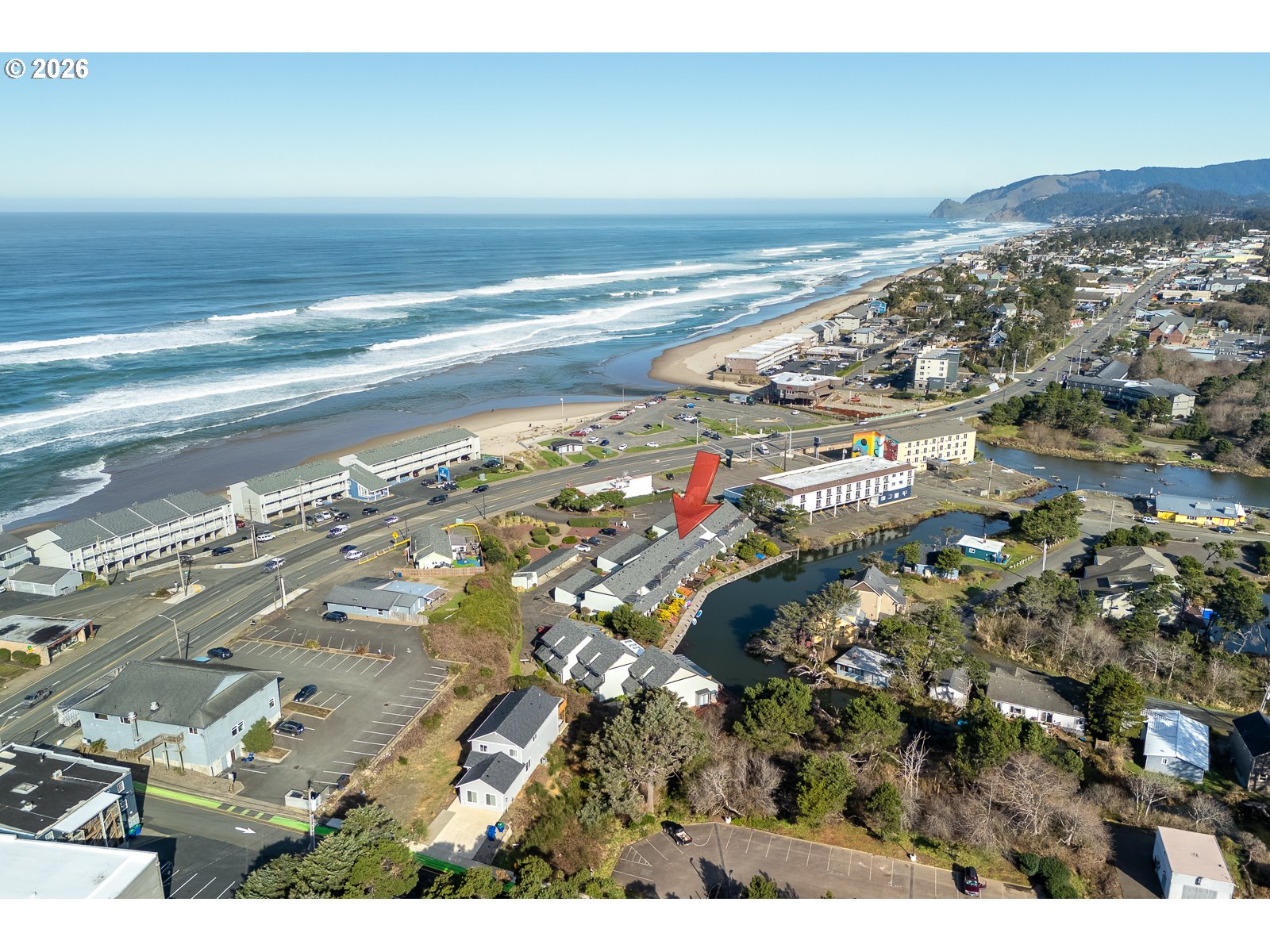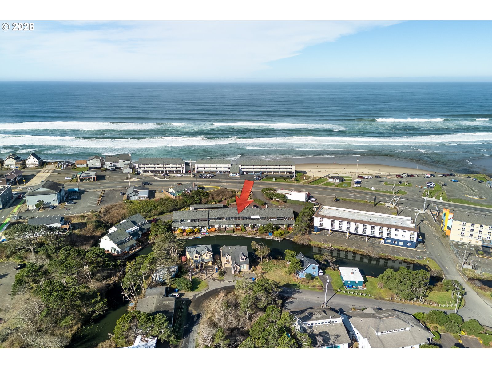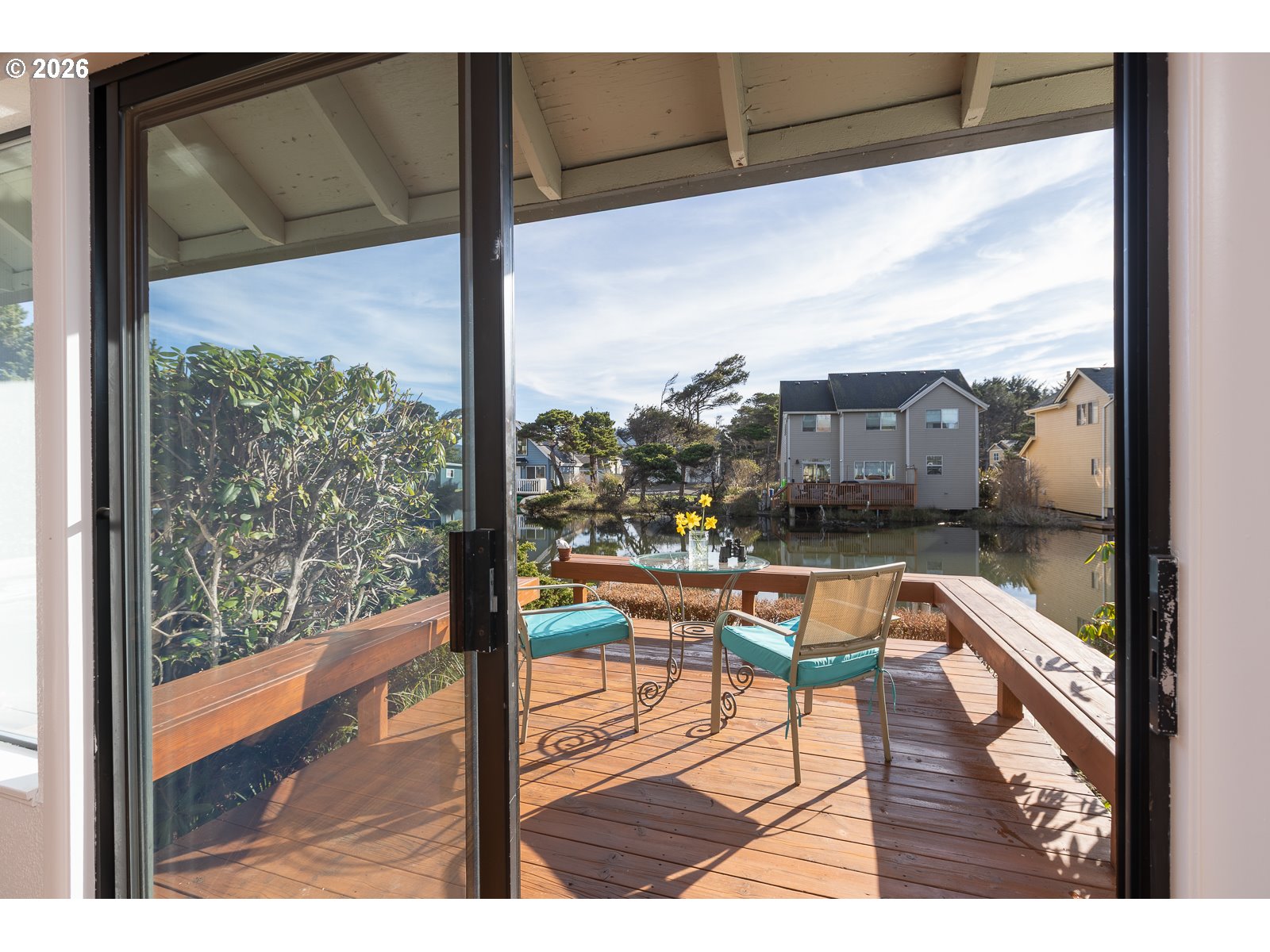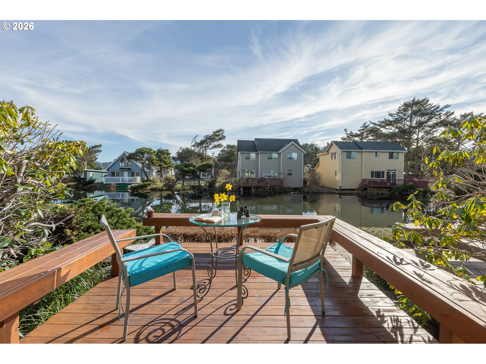 Wake up to water, calm and the simple ease of coastal living in this 3 bed, 2 bath townhome style condo, directly on the peaceful canal of Devil's Lake. Step out your sliding glass door and launch a kayak or SUP from the common dock, or settle onto your recently refinished private deck with built in benches and enjoy a front row view of the water's gentle flow and wildlife sightings. The main level offers convenience with a bedroom, full bath, in closet stackable washer/dryer and a kitchen featuring upgrades such as newer cabinets, granite countertops, and under counter appliances that free up counter space. Newer LVP flooring and an upgraded tile shower add modern comfort throughout. The living and dining area open to the water, inviting the outdoors in. Upstairs, you'll find two additional bedrooms and a guest bath, including a spacious third bedroom with a light filled solarium; perfect as a sitting room, office, exercise space, or simply a tranquil retreat to enjoy water views. In addition to the designated covered parking spot right out your front door, there is additional parking for your guests. HOA covers Water/Sewer, garbage, landscaping, insurance, exterior and maintenance of common areas. Across from D Lake State Park, you're only steps from miles of sandy beach; perfect for morning walks, sunset views, and everyday ocean living. Restaurants and shops are just a short distance away. Whether you're seeking full time living or a vacation getaway, this home provides the perfect base for enjoying all the best of the Oregon Coast.