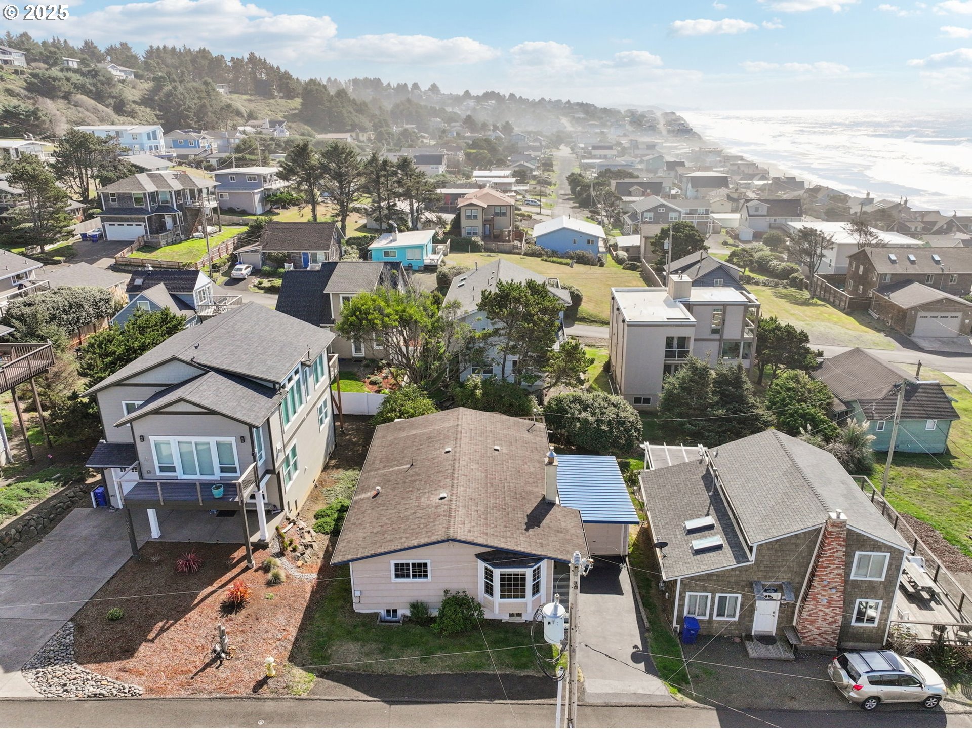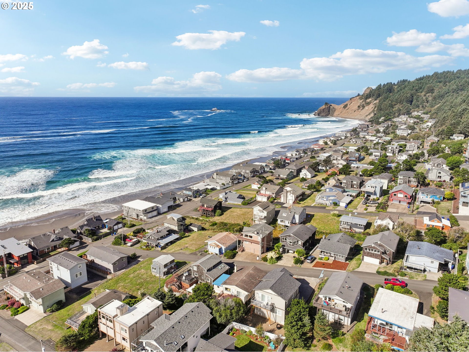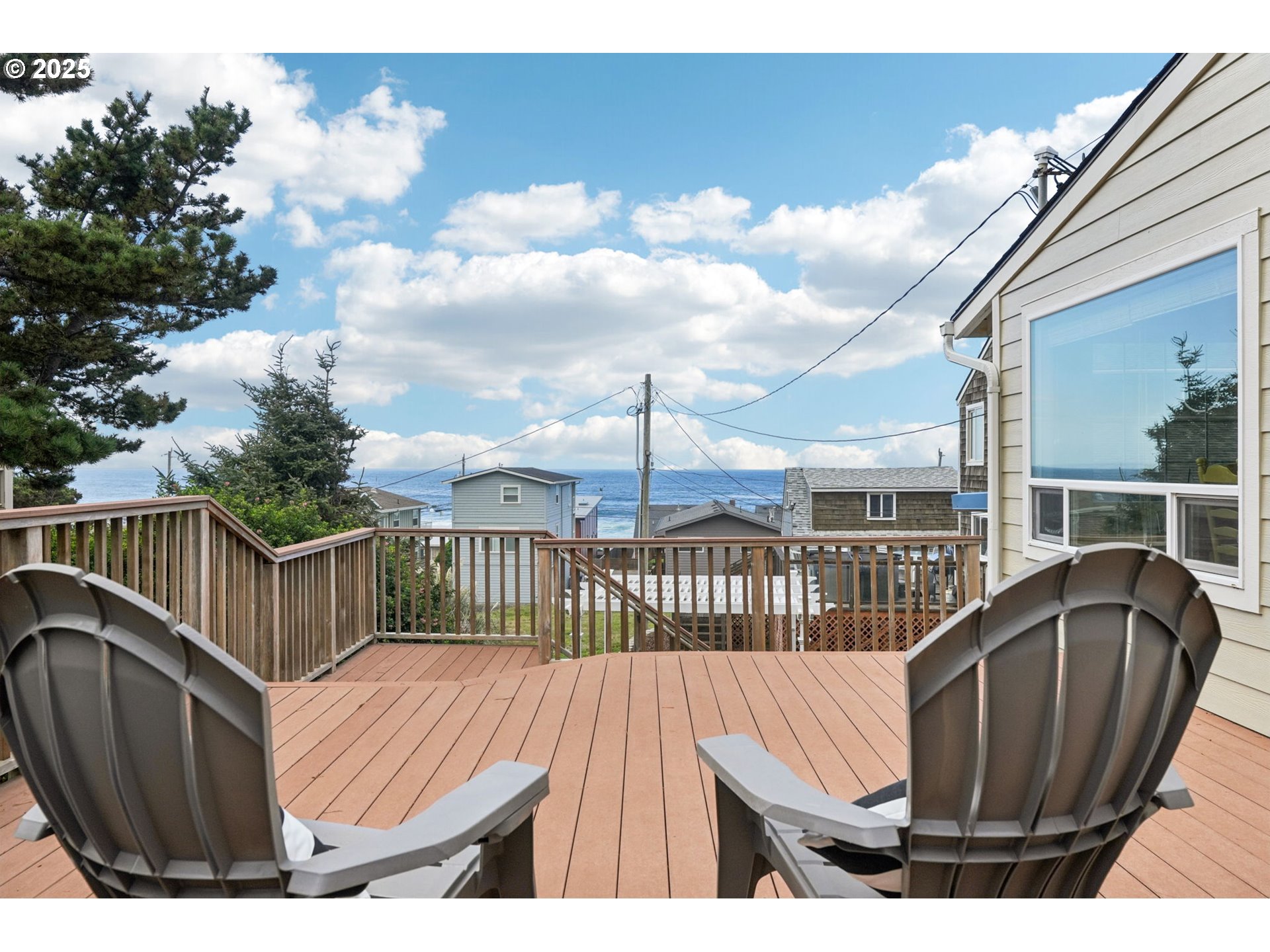 Just steps from the beach in the coveted Roads End neighborhood, this charming 3 bedroom, 2.5 bath coastal home offers the perfect Oregon Coast escape. Bright, open living spaces are highlighted by ocean view windows, custom concrete countertops, bamboo flooring and natural wood and stone accents. Watch kite surfers in the summer or waves crashing over Rock Island in the winter, relax by the stone gas fireplace, or unwind on the large composite deck with the sights and sounds of the ocean.The main level features stylish updates throughout, including refreshed bathrooms and low maintenance finishes. With the majority of the living space upstairs, the downstairs offers a versatile game room, laundry area, and ample storage. This space is great for guests or vacation gear. With easy access to Lincoln City’s shopping, dining, and local attractions, the location is as convenient as it is beautiful. (Third bedroom in basement is non-conforming).Sellers are offering the home fully furnished (excluding tools and kite surfing equipment in basement), making this a turnkey beach retreat ready for your coastal memories. Home is being sold as-is.