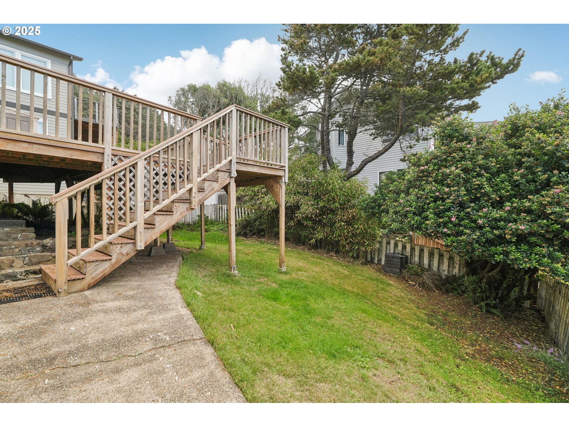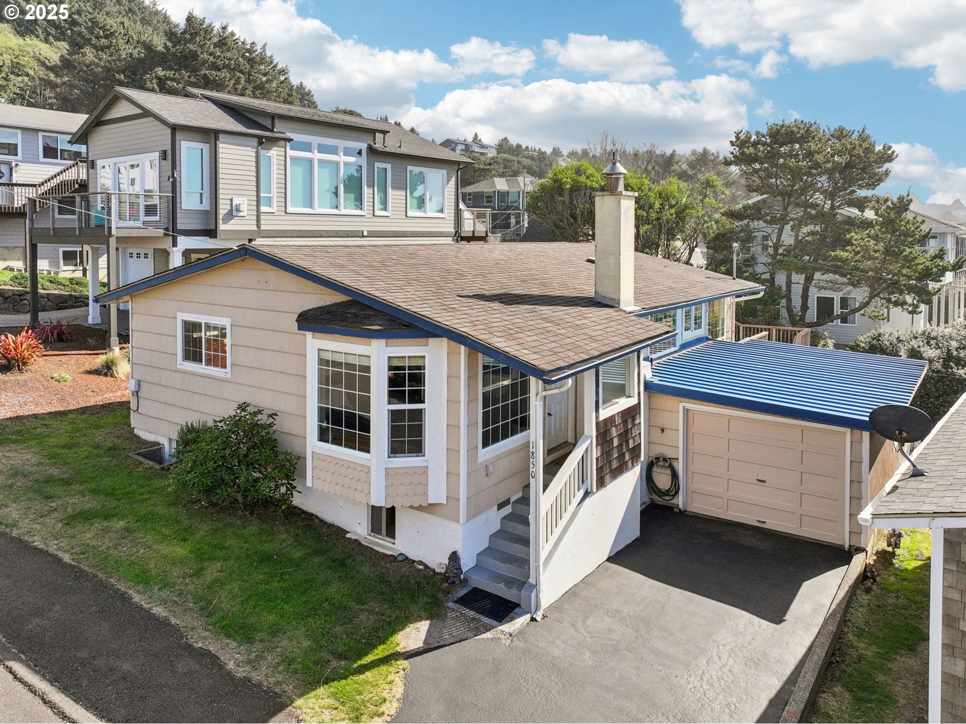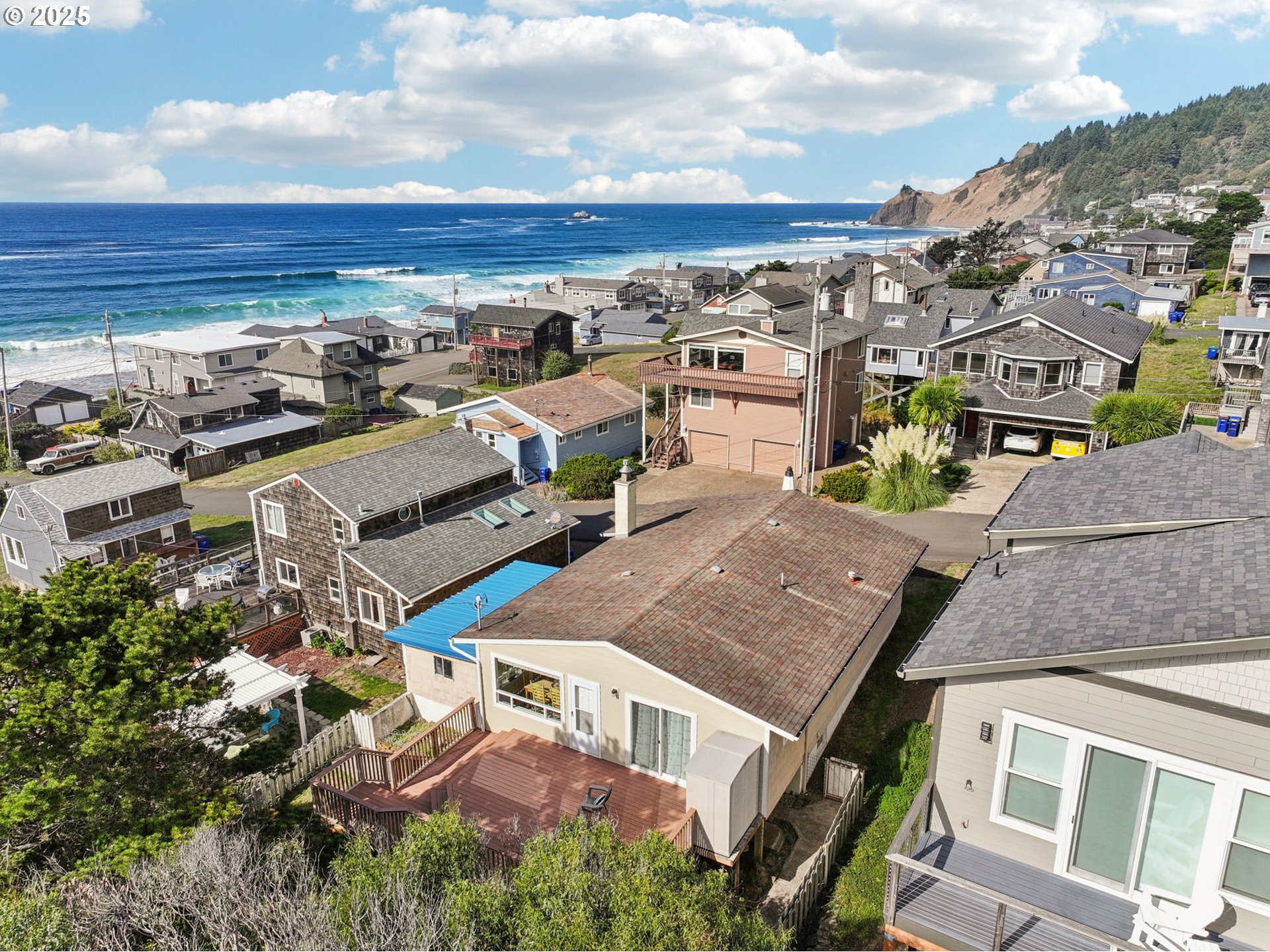 Just steps from the beach in the coveted Roads End neighborhood, this charming 3 bedroom, 2.5 bath coastal home offers the perfect Oregon Coast escape. Bright, open living spaces are highlighted by ocean view windows, custom concrete countertops, bamboo flooring and natural wood and stone accents. Watch kite surfers in the summer or waves crashing over Rock Island in the winter, relax by the stone gas fireplace, or unwind on the large composite deck with the sights and sounds of the ocean.The main level features stylish updates throughout, including refreshed bathrooms and low maintenance finishes. With the majority of the living space upstairs, the downstairs offers a versatile game room, laundry area, and ample storage. This space is great for guests or vacation gear. With easy access to Lincoln City’s shopping, dining, and local attractions, the location is as convenient as it is beautiful. (Third bedroom in basement is non-conforming).Sellers are offering the home fully furnished (excluding tools and kite surfing equipment in basement), making this a turnkey beach retreat ready for your coastal memories. Home is being sold as-is.