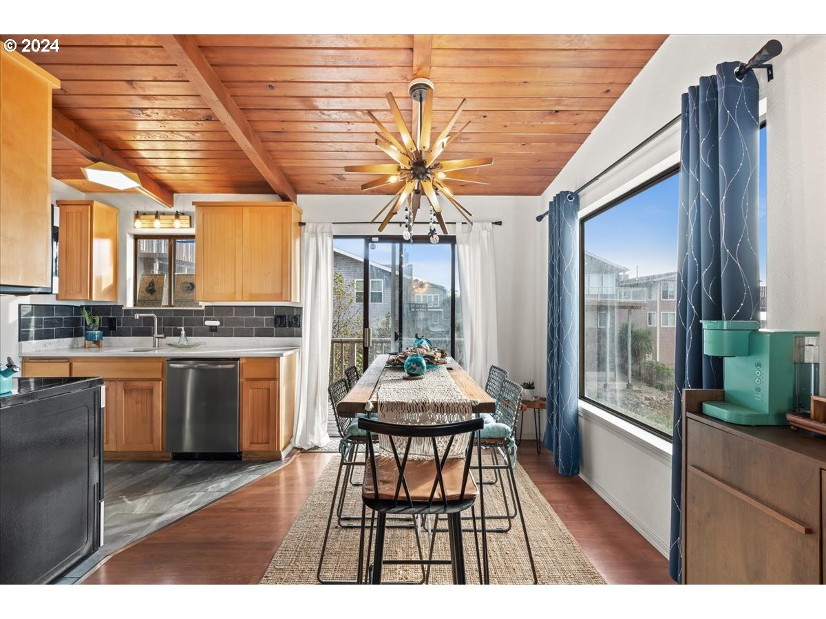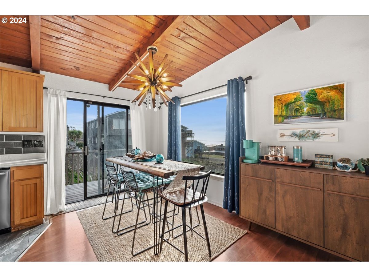 Escape to desirable Roads End with this inviting ocean-view beach cottage, just a short stroll from miles of sandy shores and surf. This charming single-level home features an open layout with vaulted, beamed ceilings, ideal for coastal living. Step outside to enjoy an entertainment deck and a fenced backyard for added privacy. Fully furnished and move-in ready, this is a perfect retreat or full-time residence on the beautiful Oregon Coast, with dining, shops, golf, a casino, and a lake all just minutes away.