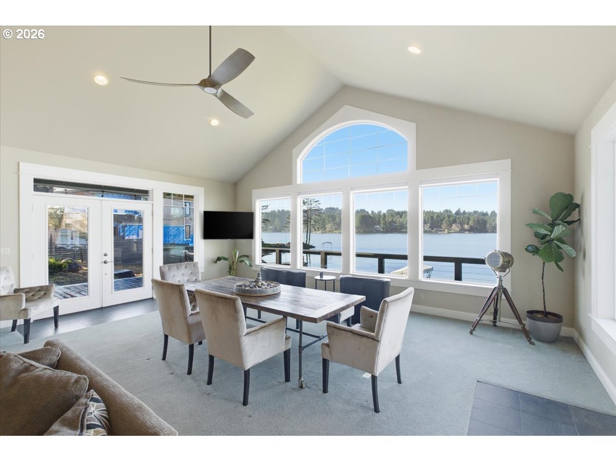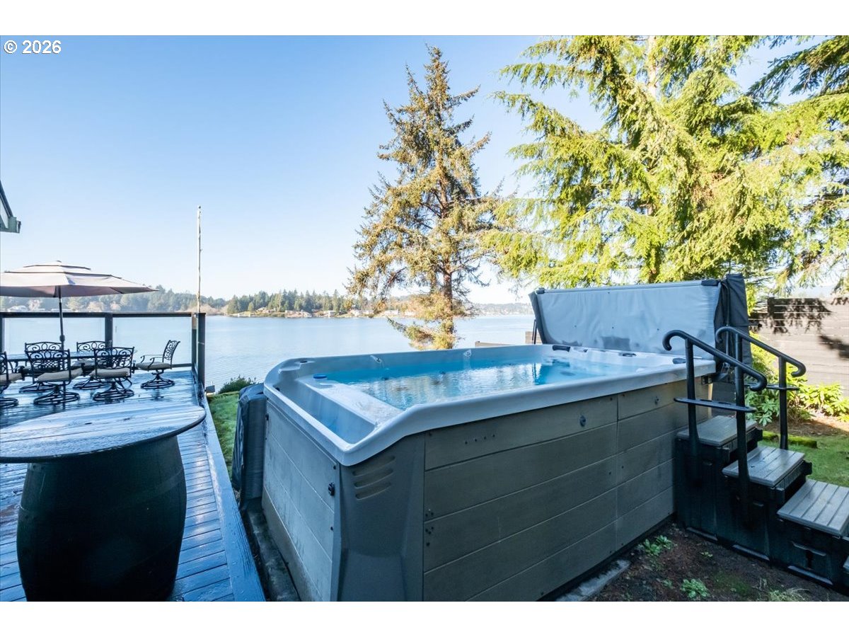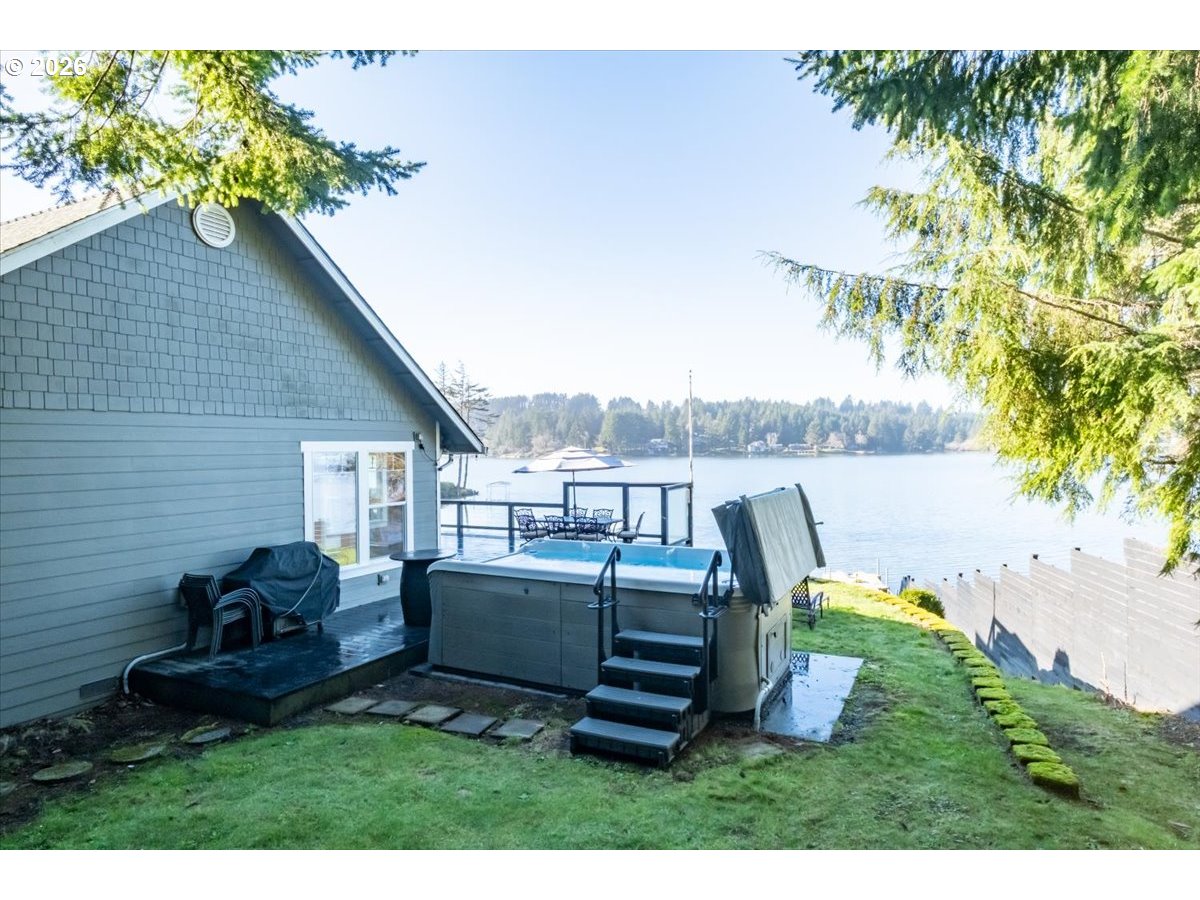 (503) 893-8874Lakefront living on Devils Lake with approximately 100’ of shoreline. Just minutes from Lincoln City & the beach. Enjoy this gorgeous home designed for entertaining w/views of the lake from almost every room. Access the water from your own boat dock with a lift. Above the 3-car garage is a studio apartment w/full bath & kitchenette. Rent it out or let your guests enjoy the privacy. Other extras: automatic shades in the GR, generator & built in sound. With 2 acres of property, the possibilities are endless!