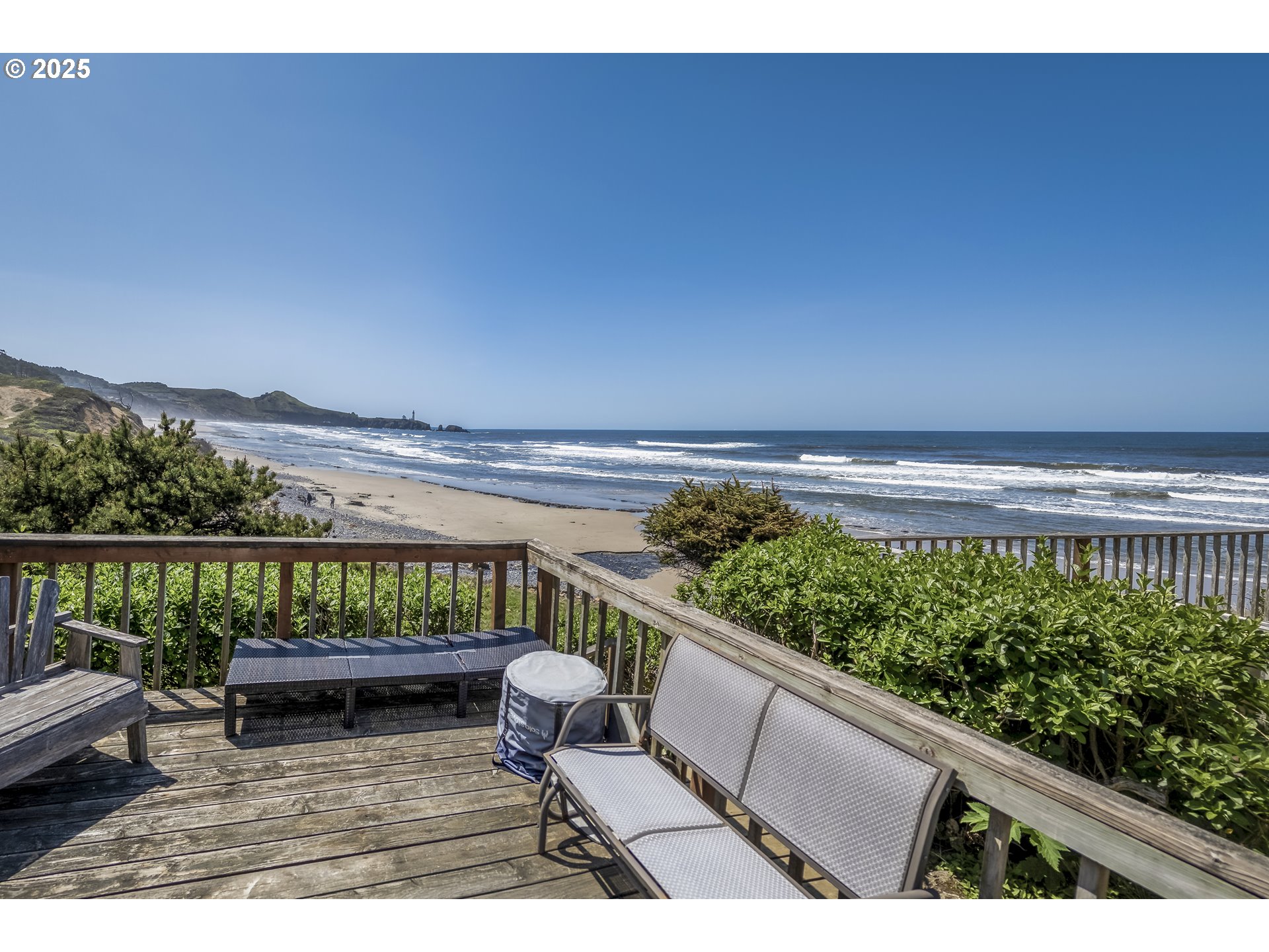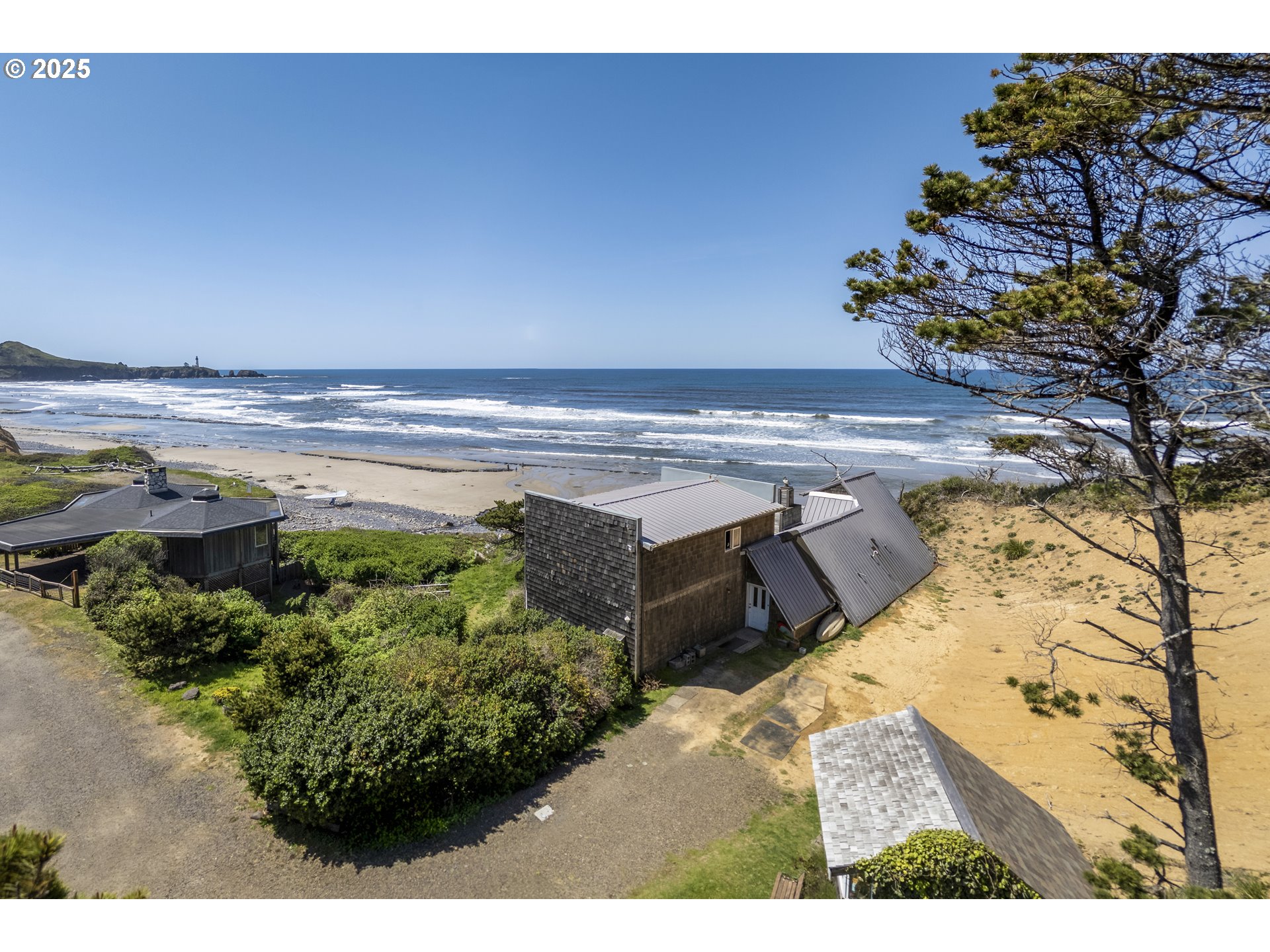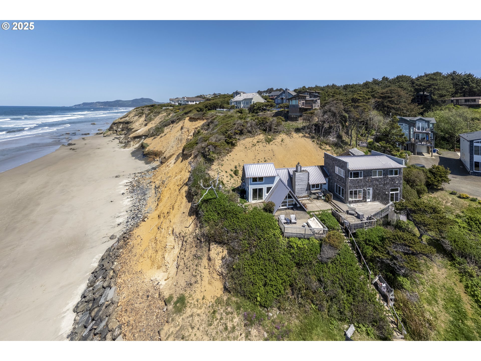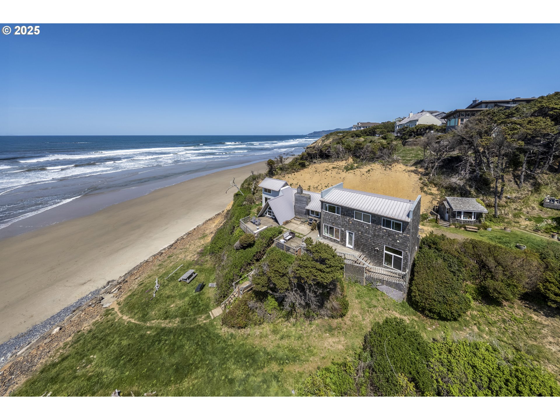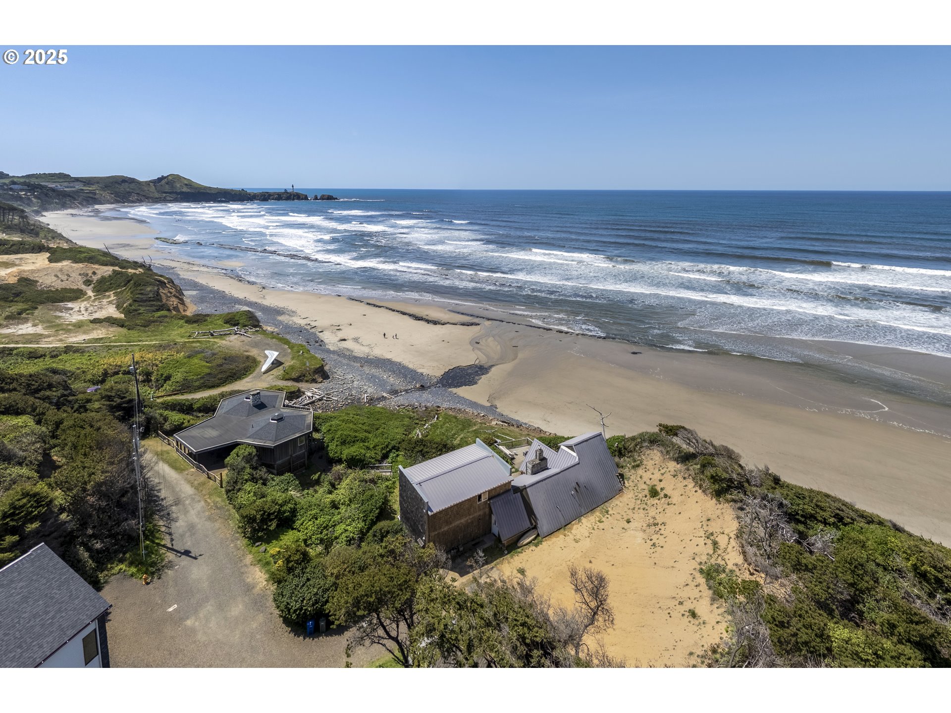 This property has a spectacular setting for your dream beach house or higher-density housing project. The existing home is perched on a low bluff with terrific views of the Yaquina Head Lighthouse. There is a private access path leading to the beach and the property is protected from the ocean surf by a recently improved seawall. The original home was constructed in 1967 and expanded in 1985. Slide activity on adjacent land and undeveloped portions of the property damaged a few outbuildings in recent years. In May 2022, the owners engaged a geologist to study surface soil conditions and monitor land movement. The geologist report published in September 2024 indicates no discernible land movement was detected during the study period. The report also includes recommendations for future site development work.An A-frame adjacent to the main