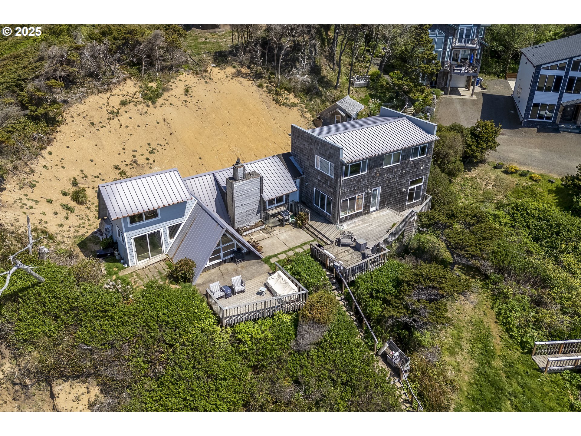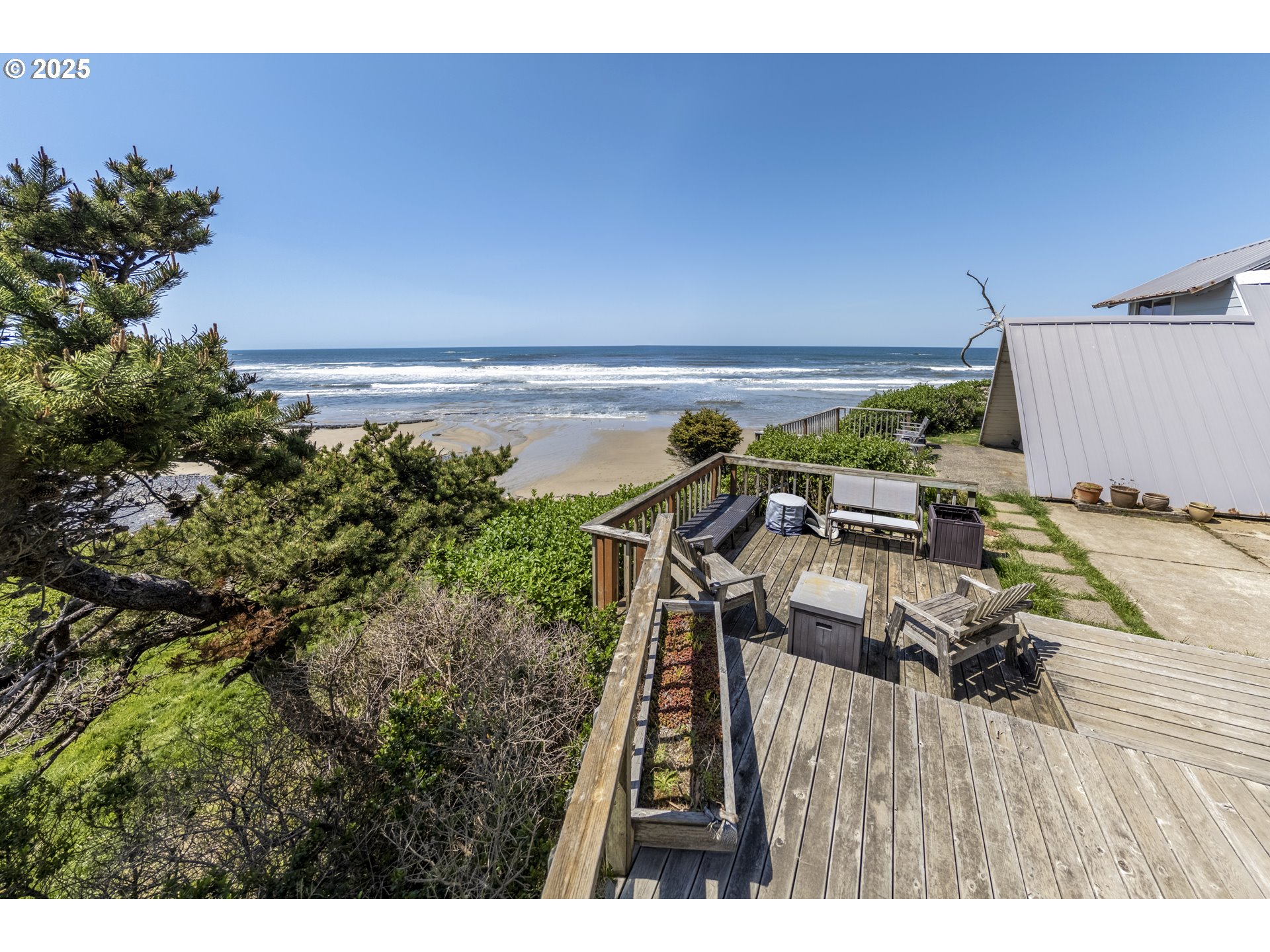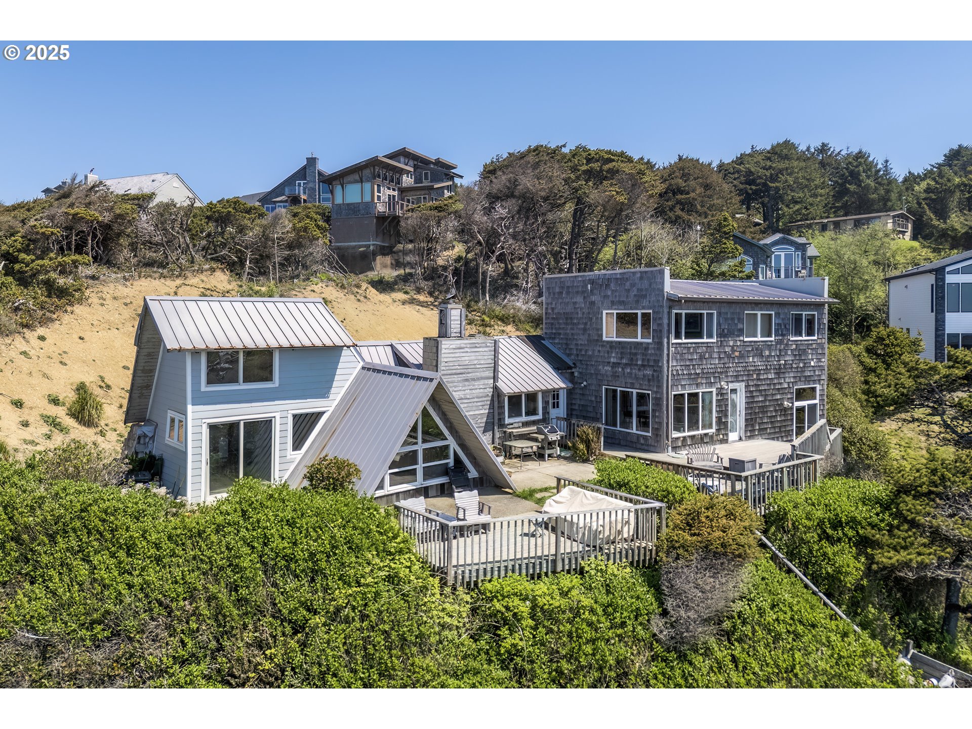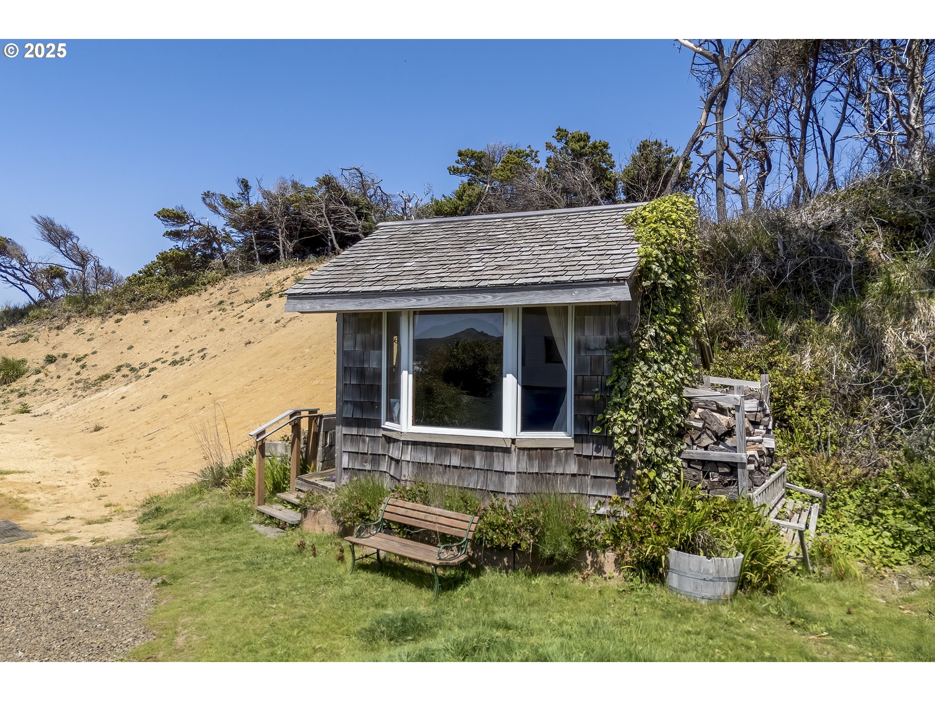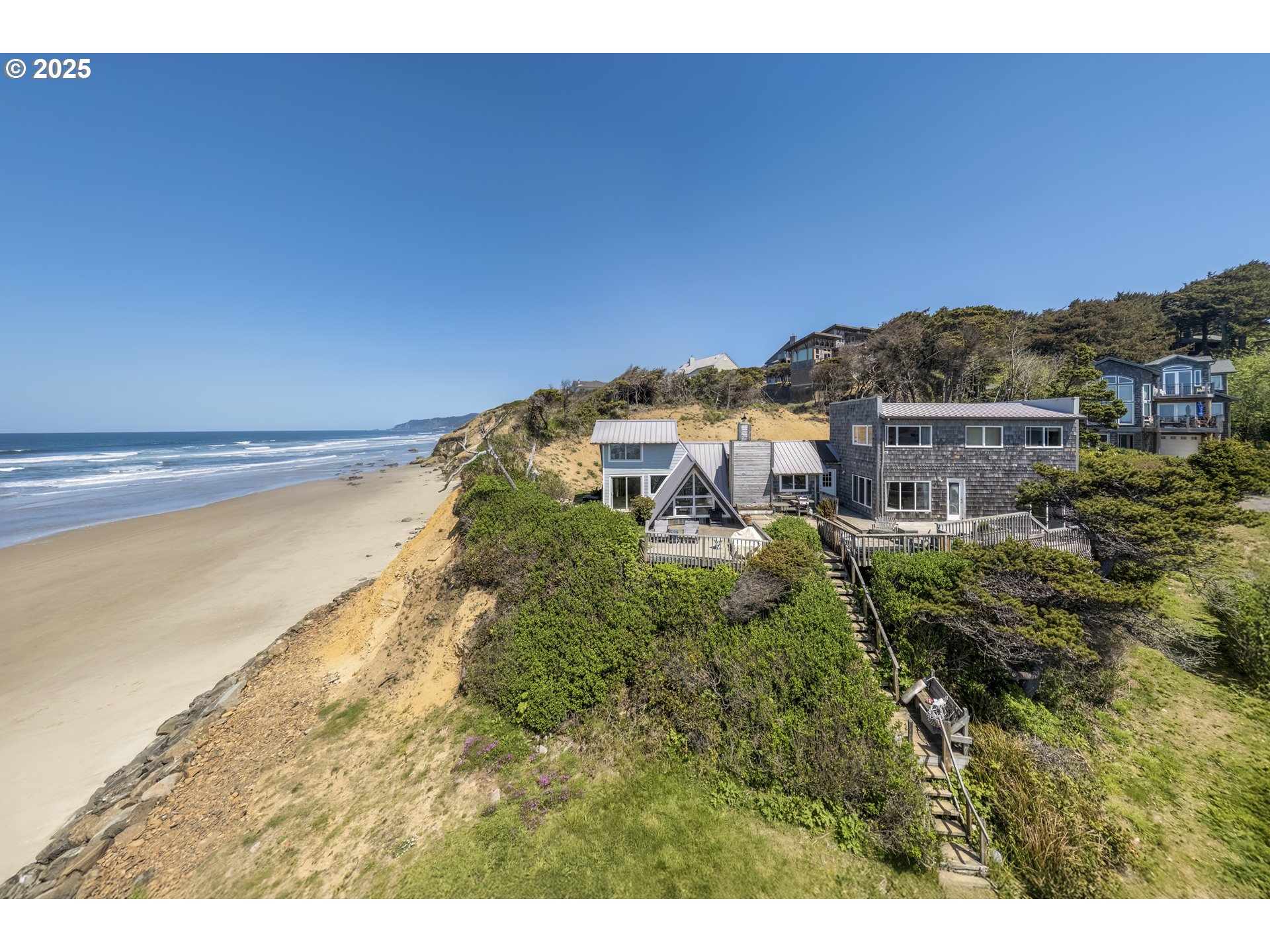 This property has a spectacular setting for your dream beach house or higher-density housing project. The existing home is perched on a low bluff with terrific views of the Yaquina Head Lighthouse. There is a private access path leading to the beach and the property is protected from the ocean surf by a recently improved seawall. The original home was constructed in 1967 and expanded in 1985. Slide activity on adjacent land and undeveloped portions of the property damaged a few outbuildings in recent years. In May 2022, the owners engaged a geologist to study surface soil conditions and monitor land movement. The geologist report published in September 2024 indicates no discernible land movement was detected during the study period. The report also includes recommendations for future site development work.An A-frame adjacent to the main