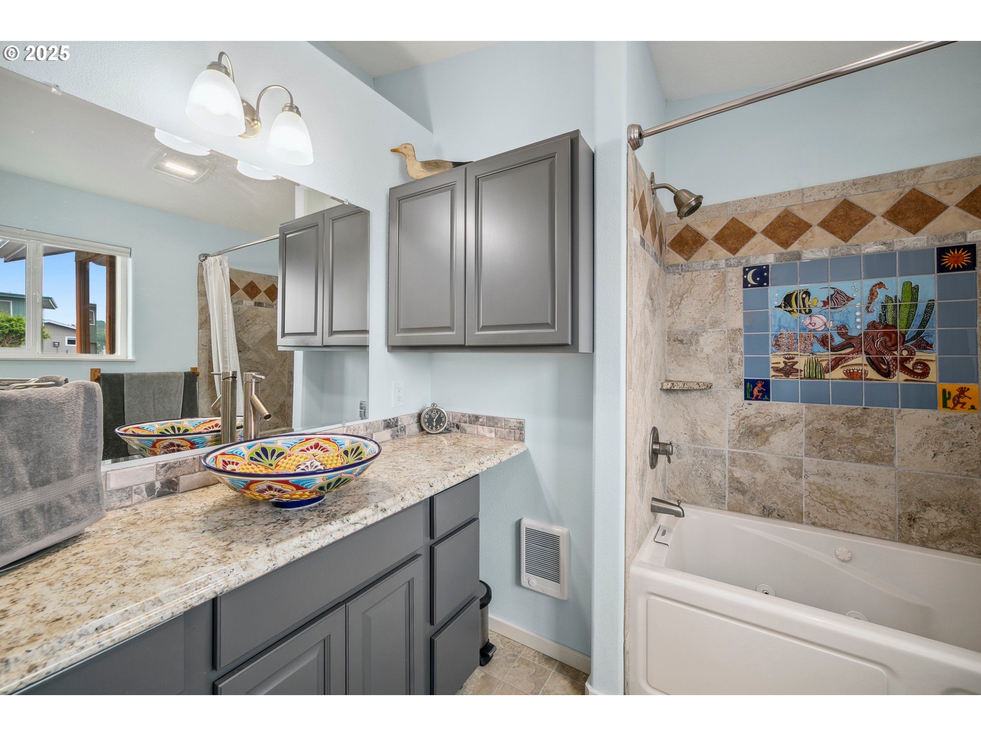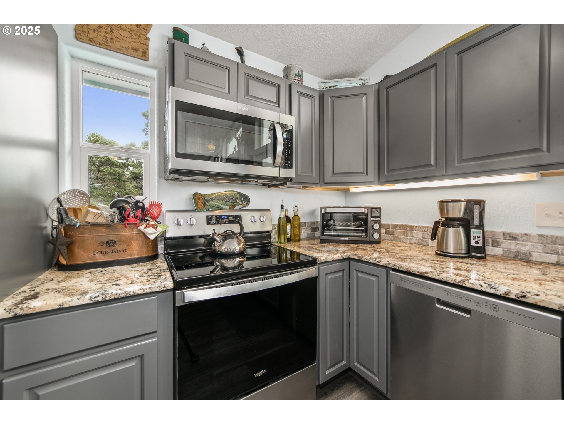 (503) 893-8874DUAL LIVING DESIGN, Flexible Floor Plan. Lower living quarters perfect for guests, multi-generational living, everyday use, private entrance, no-step access with LR, BR, Kit, Bath, W/D hookup). Potential income source as long-term rental (check local zoning). Discover this exquisite home nestled in a wonderful neighborhood. Experience luxurious living, open-concept design that invites natural light to flow through. The spacious kitchen dazzles with granite countertops, while the gorgeous tile work throughout the home adds a touch of elegance and coastal flair, perfect for soaking up the beach living vibe. Distant ocean views from upper deck and kitchen window, forest and mountain views from the deck. This home also features an extra deep 2-car garage with a shop area.