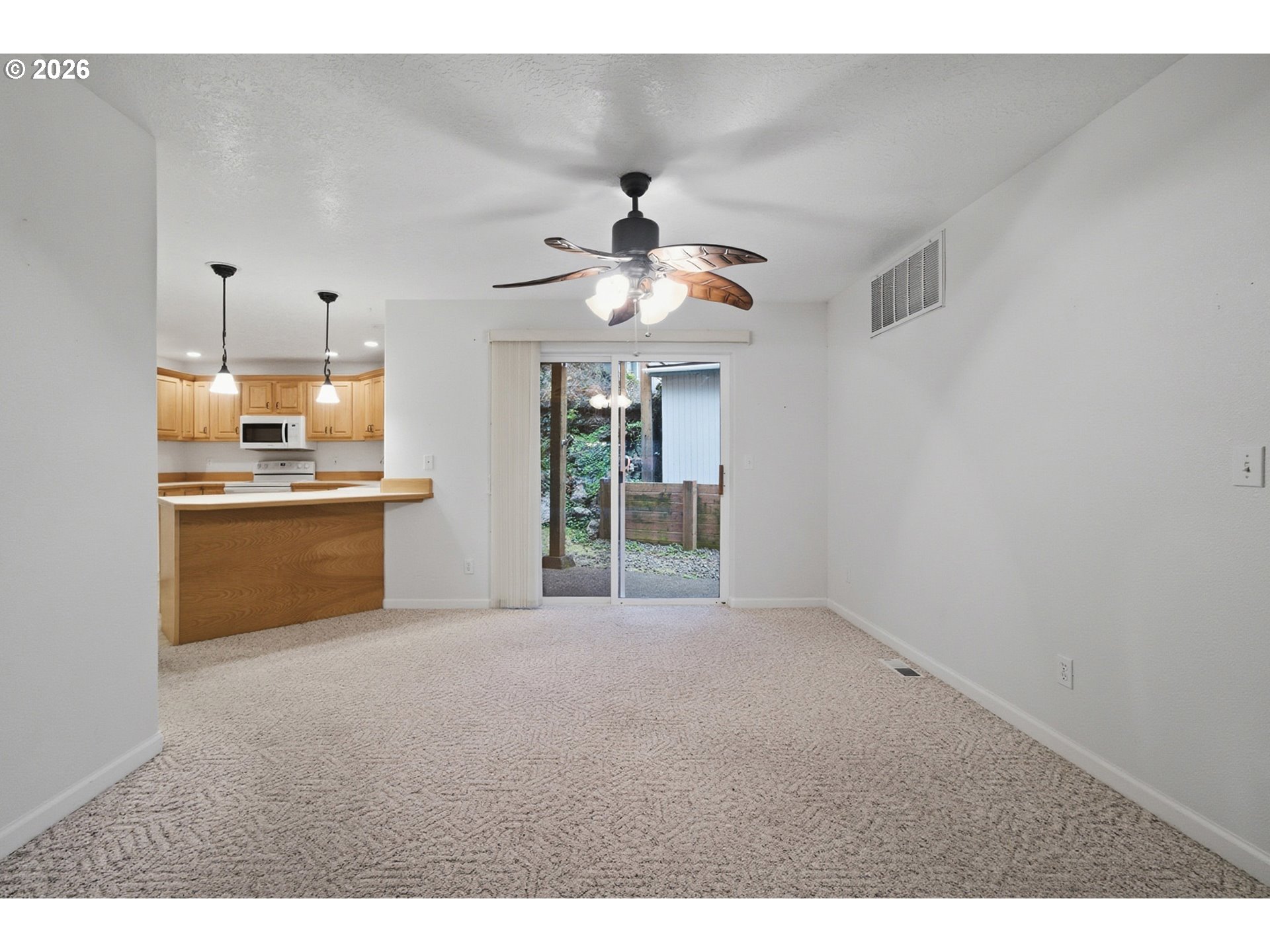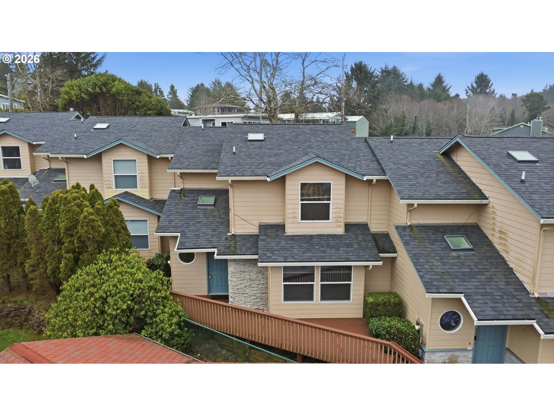 Excellent value coastal property with income potential, this well-maintained residence offers the ideal balance of personal retreat and low-maintenance ownership, complete with bay views. Enjoy sunset views from your private balcony overlooking the bay, while inside, a spacious living room with a stone-surround fireplace provides a comfortable place to relax after a day on the coast. The kitchen features ample storage, oak cabinetry, and a breakfast bar, well-suited for both everyday living and short-term rental guests. The oversized primary suite is designed for comfort and flexibility, featuring its own private balcony with bay views, a walk-in closet, double sinks, a step-in shower, and a skylight that fills the space with natural light. A second bedroom with double closets and two large storage areas offers space for guests, extended stays, or secure owner storage while renting. The HOA has approved short-term rentals, making this an excellent opportunity for a second home that can also generate income when not in use. Exterior maintenance, common areas, grounds, and trash are included, helping keep ownership simple and operating costs predictable. Conveniently located within walking distance of downtown and Depoe Bay Creek Park, this property offers easy access to dining, shopping, and coastal recreation. Don’t miss this opportunity to enjoy and invest in coastal living in Depoe Bay.