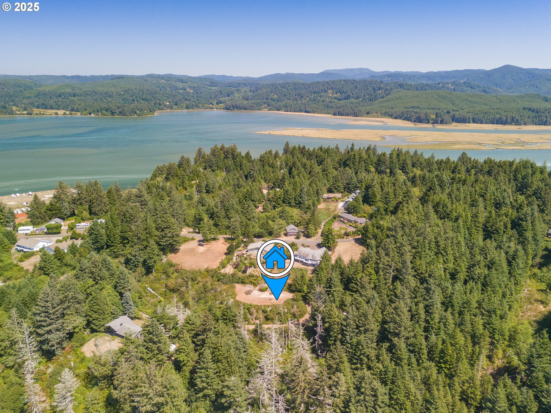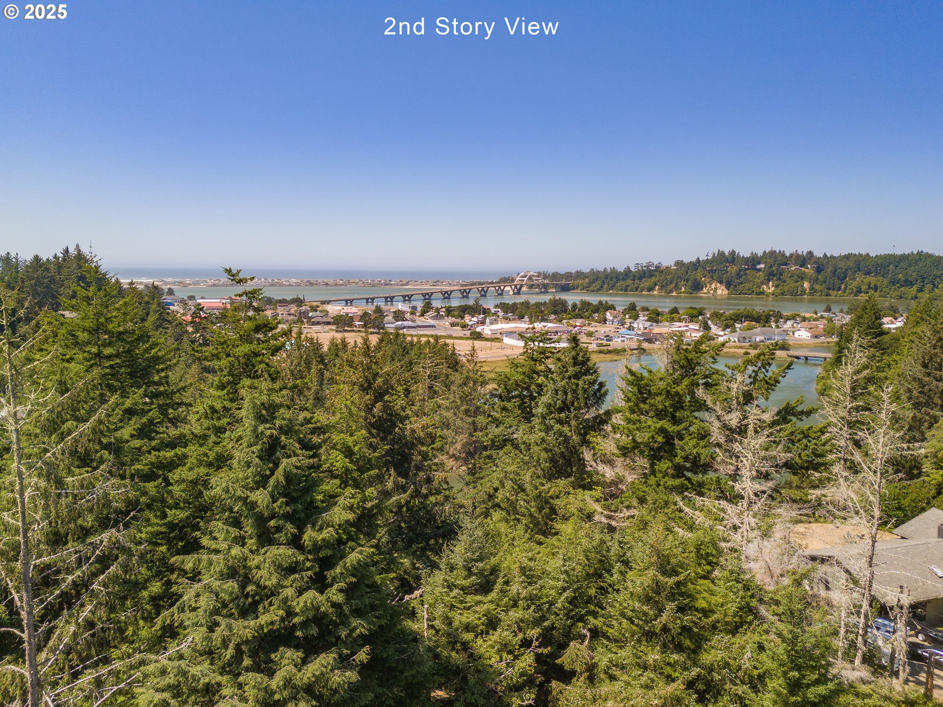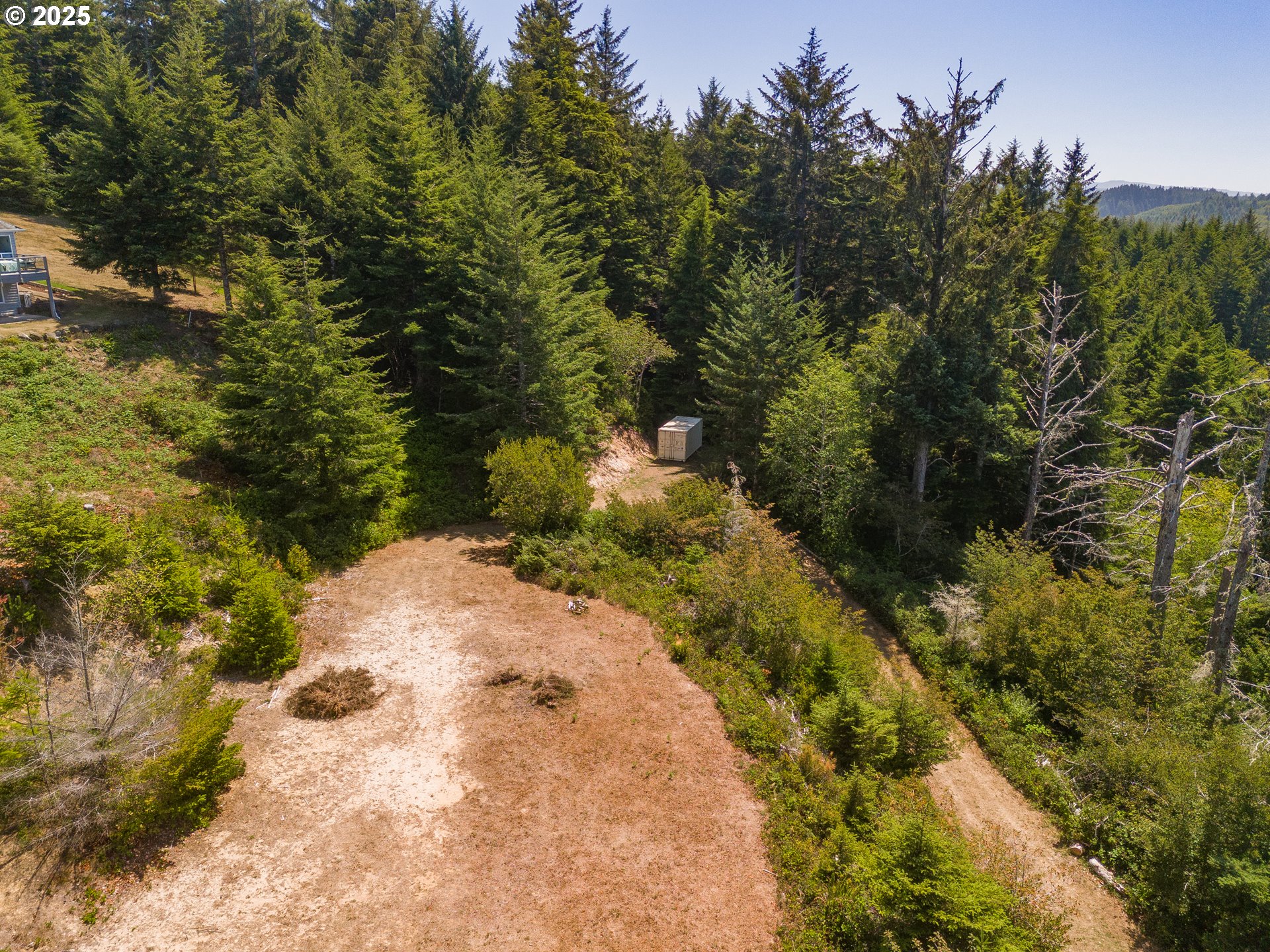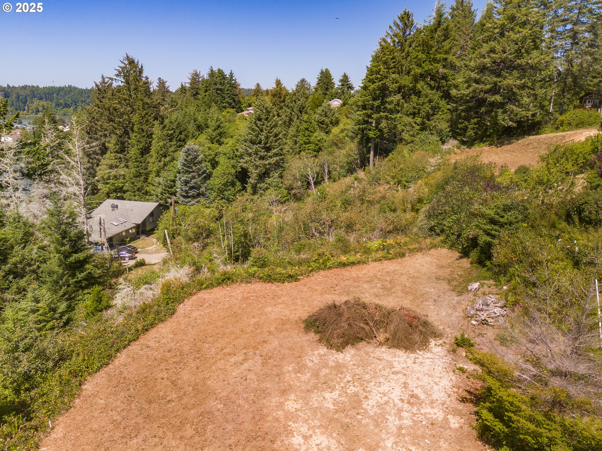 Bay, Ocean and Bridge views from this private lot in Waldport. A quiet road ends in a recently improved, candy-cane shaped driveway, bringing you to the top of the ridge where your future home site awaits. This is six-tenths of an acre on two combined lots amid sloped, hilled woodlands on two sides and right of way, so it feels much bigger. The property has septic site approval and utilities close by, along with a single-use container at the tip of the property, half-way up the driveway and hidden from the building site. Zoning allows a multitude of options to build your dream home with a 30 foot height limit to capture panoramic views. The container is the perfect place to store your things while you develop your vision. Easy access to downtown, the river, and miles of beach. Yachats and Newport are mere minutes away. Bring your ideas and come spend your summer at the Coast.