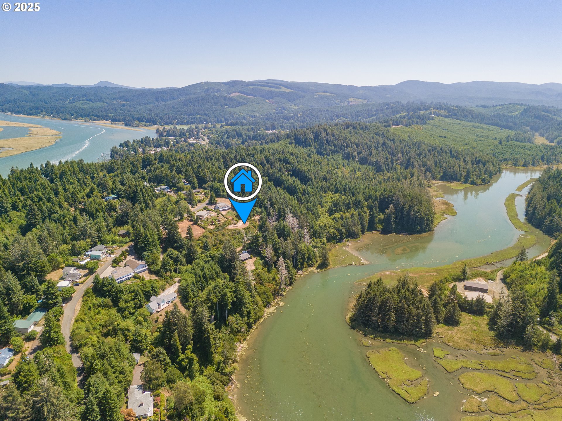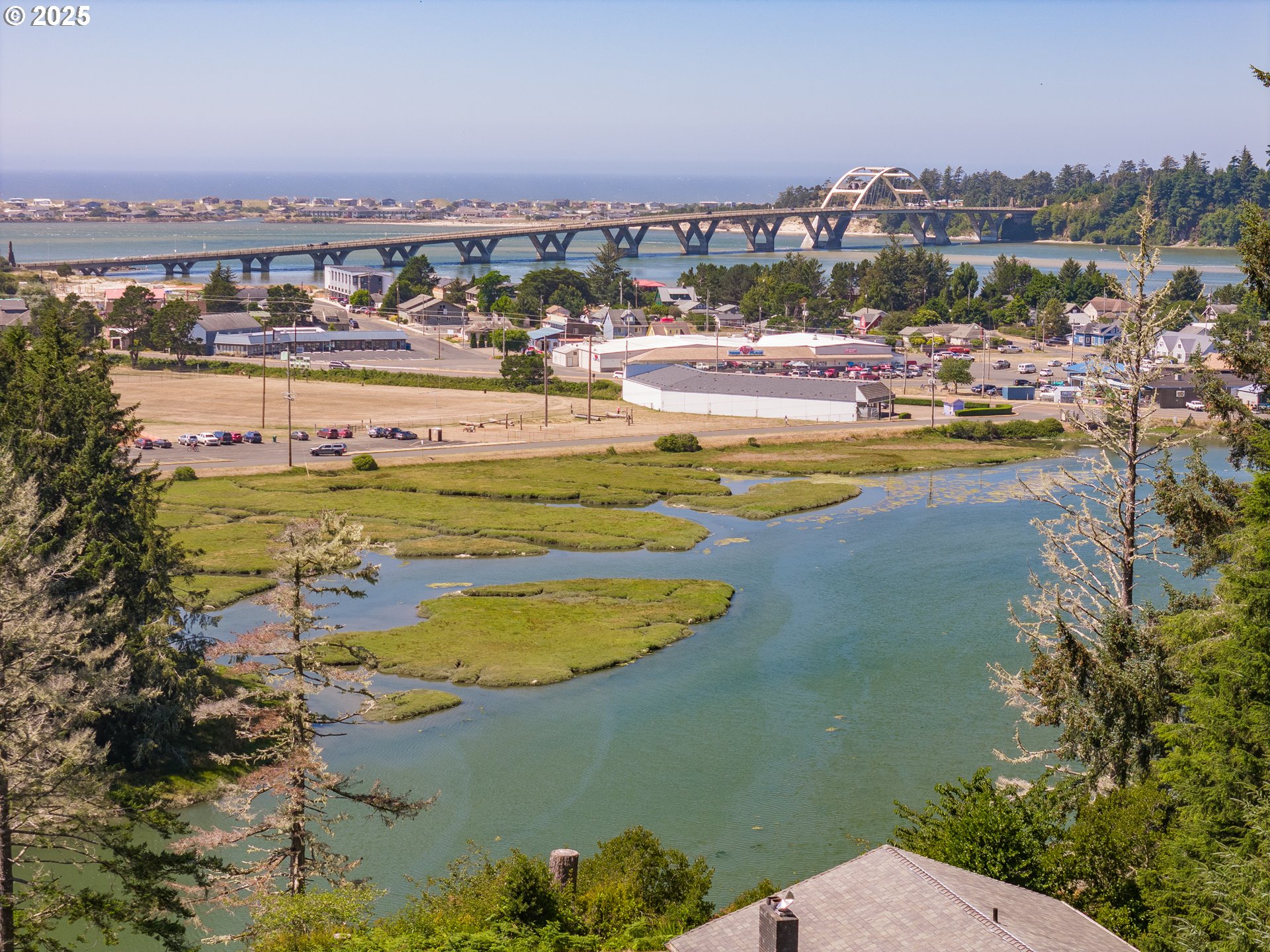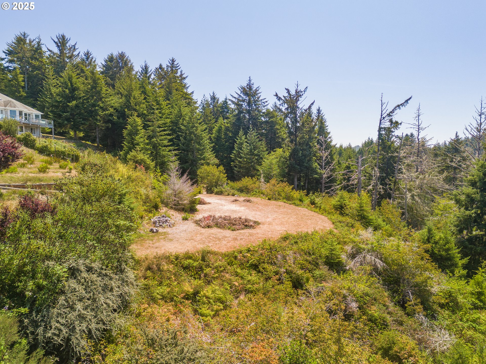 Bay, Ocean and Bridge views from this private lot in Waldport. A quiet road ends in a recently improved, candy-cane shaped driveway, bringing you to the top of the ridge where your future home site awaits. This is six-tenths of an acre on two combined lots amid sloped, hilled woodlands on two sides and right of way, so it feels much bigger. The property has septic site approval and utilities close by, along with a single-use container at the tip of the property, half-way up the driveway and hidden from the building site. Zoning allows a multitude of options to build your dream home with a 30 foot height limit to capture panoramic views. The container is the perfect place to store your things while you develop your vision. Easy access to downtown, the river, and miles of beach. Yachats and Newport are mere minutes away. Bring your ideas and come spend your summer at the Coast.