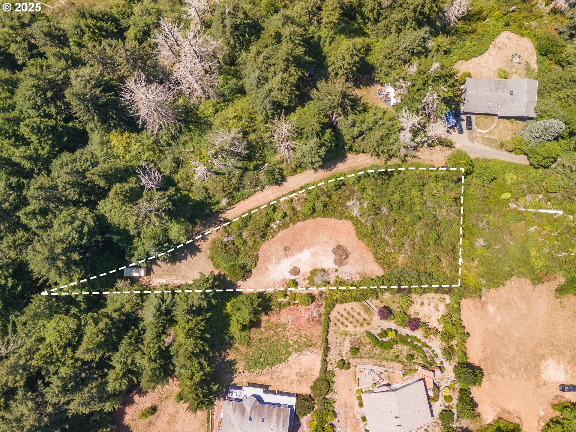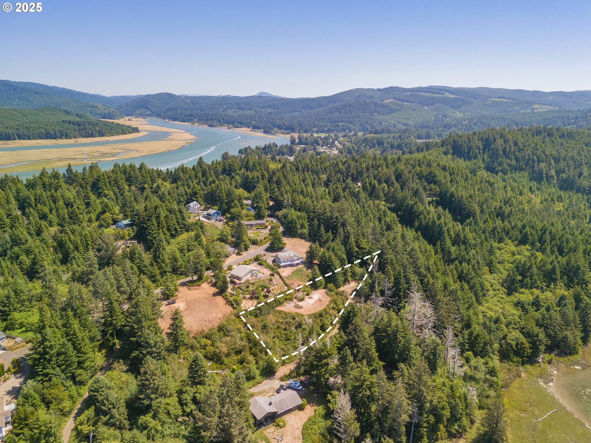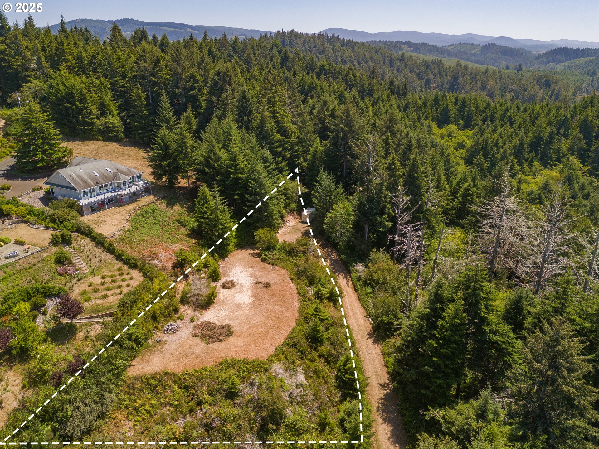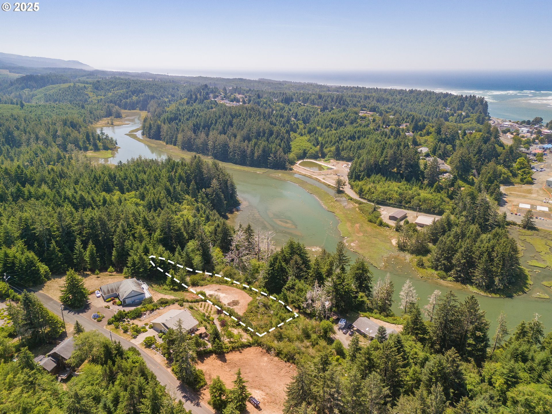 Bay, Ocean and Bridge views from this private lot in Waldport. A quiet road ends in a recently improved, candy-cane shaped driveway, bringing you to the top of the ridge where your future home site awaits. This is six-tenths of an acre on two combined lots amid sloped, hilled woodlands on two sides and right of way, so it feels much bigger. The property has septic site approval and utilities close by, along with a single-use container at the tip of the property, half-way up the driveway and hidden from the building site. Zoning allows a multitude of options to build your dream home with a 30 foot height limit to capture panoramic views. The container is the perfect place to store your things while you develop your vision. Easy access to downtown, the river, and miles of beach. Yachats and Newport are mere minutes away. Bring your ideas and come spend your summer at the Coast.