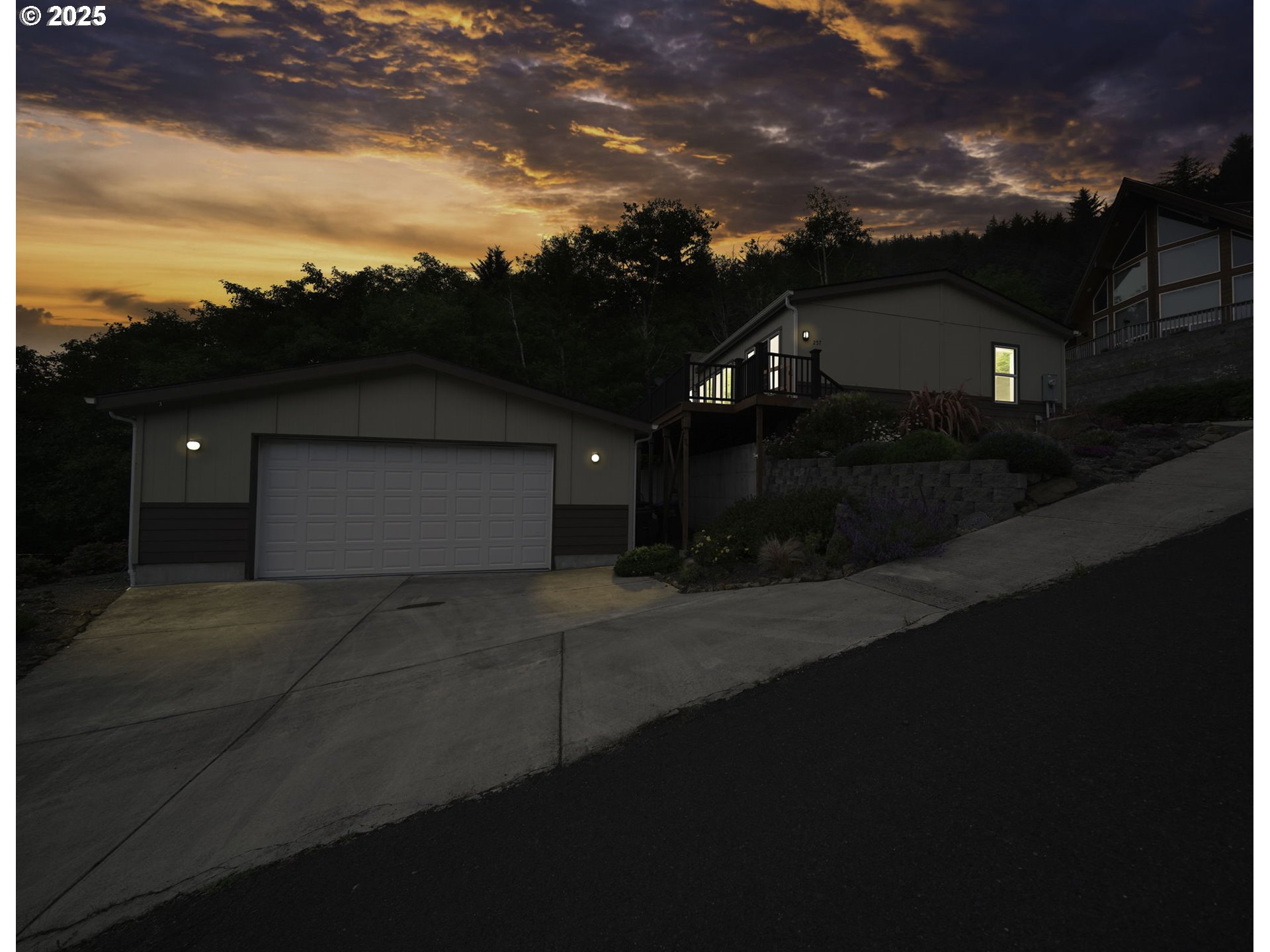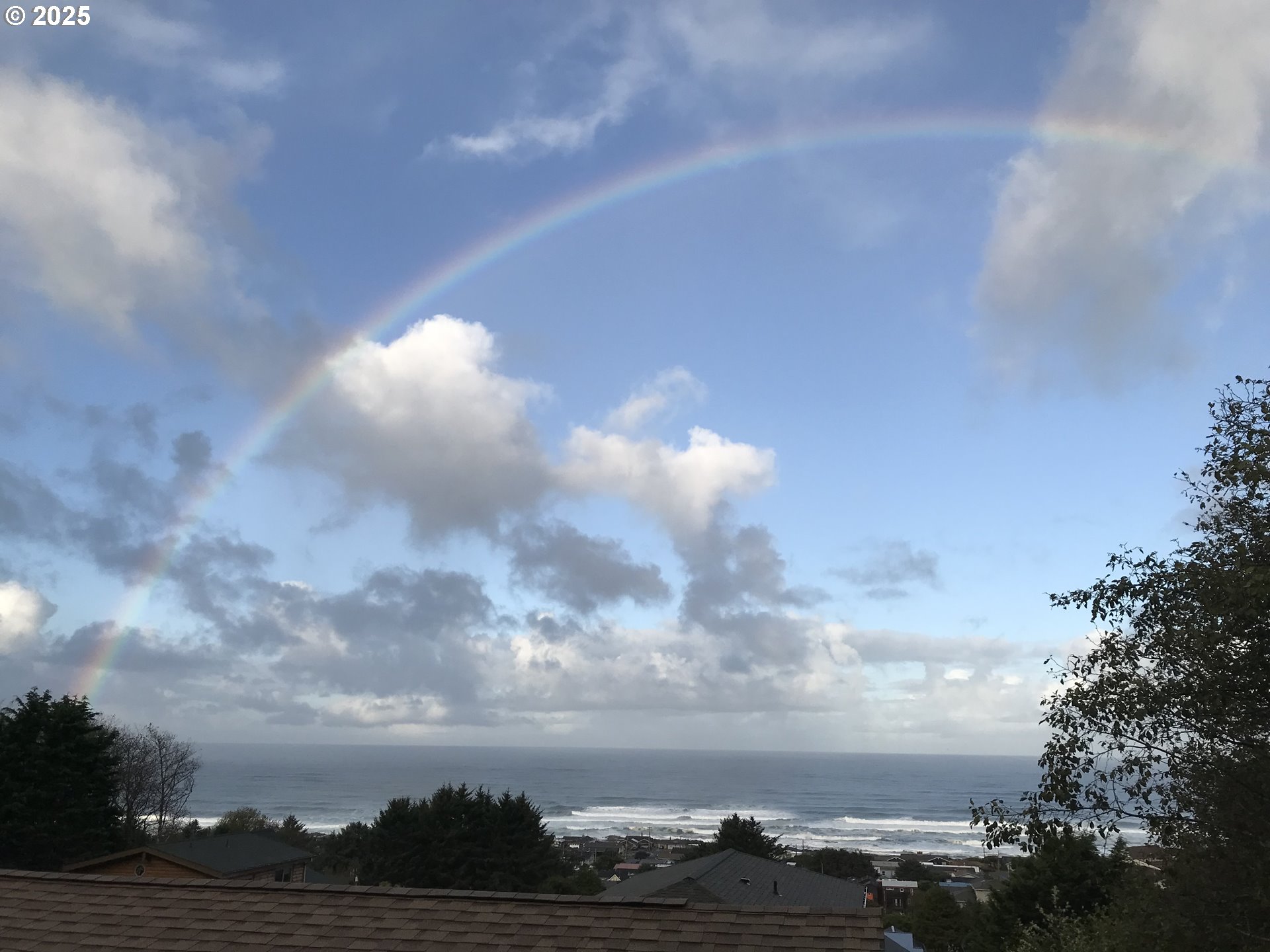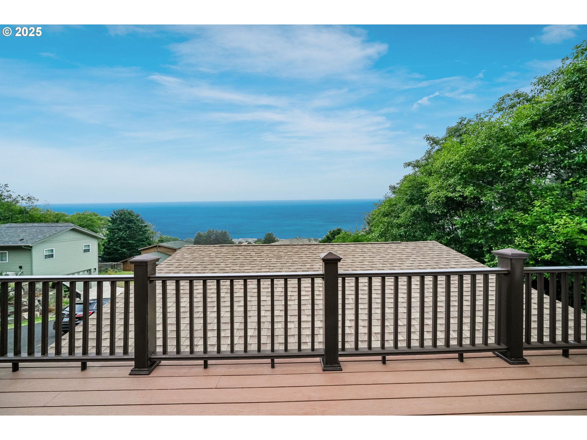 Newer single level home perched high on a spacious hillside lot with sweeping views of the Pacific Ocean & backing to forested land. Enjoy breathtaking sunsets, watch the waves & whales from the expansive west facing deck. Low-maintenance beach living, with durable synthetic decking, cement board siding & easy-care landscaping.Inside, the open-concept living and dining area is filled with natural light & shows off spectacular Ocean Views, and features a well-appointed kitchen, great for entertaining. Primary suite is a peaceful retreat with ocean views, walk-in closet, a large en-suite bathroom with a tub/shower combo and ample storage. Complete with a second bedroom and full bath, and a versatile den/office space with ocean-views. Laundry room w/ storage and access to the rear yard.The property also features a finished & heated 676 sq ft garage, ideal for storage, hobbies, or extra vehicles.Conveniently located near town, just minutes from dining, coffee shops, shopping, and the renowned 804 Trail. You’ll love embracing the coastal lifestyle in this charming Yachats home!