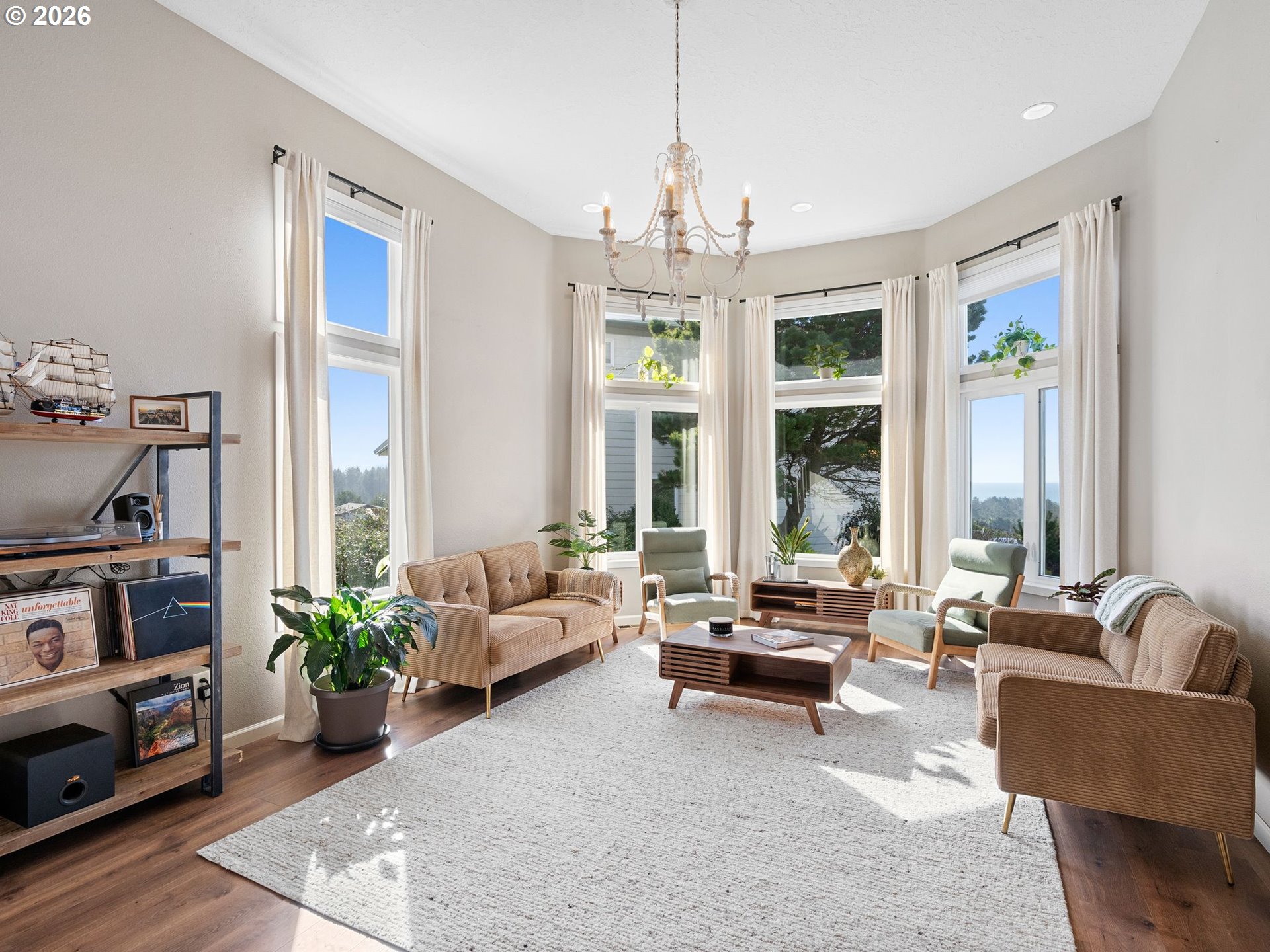 (503) 893-8874OCEAN VIEWS, your DREAM SHOP oversized 3-car garage, a flexible 2,667 sq ft floorplan, and a quiet cul-de-sac setting above the coastline. This stunning Newport home delivers the space and setting that people move to the Oregon Coast for. Perched at the top of the hill, you’ll enjoy Pacific views from the main living areas, upstairs family room, driveway, and even the garage. Inside, tall ceilings and oversized windows flood the home with natural light, while fresh interior paint and flooring create a clean, move-in-ready feel. The living room flows into a formal dining area and spacious kitchen with quartz countertops, a gas range, a generous island, and extensive cabinetry. A breakfast nook just off the kitchen and a sliding glass door to the Trex deck, ideal for indoor-outdoor living and entertaining. The main-level primary suite offers a large walk-in closet with built-ins, and an en suite bath with jetted tub, walk-in shower, and dual vanities. Also on the main floor: laundry room, half bath, and a bonus room suited for a 4th bedroom or office. Upstairs provides excellent separation with two oversized bedrooms, a full bath, an additional bonus room (5th bedroom or office), and a second family room behind French doors with even more ocean views. Perfect for media room, guests, or multi-generational living. The 3-car garage truly stands out as functional flex space. Currently set up as a home gym, ceramic studio, wood shop, and toy storage, it offers the square footage and ceiling height to support your hobbies and interests. Outside features a wide driveway with ample parking, paver pathway, low-maintenance landscaping, and a large Trex deck with pergola built for sunset dinners and coastal breezes. Maintained hiking trails are a short walk away, with BLM land behind the neighborhood and ocean access at the bottom of the hill. Unbeatable location and a truly special property. Schedule your private tour today!