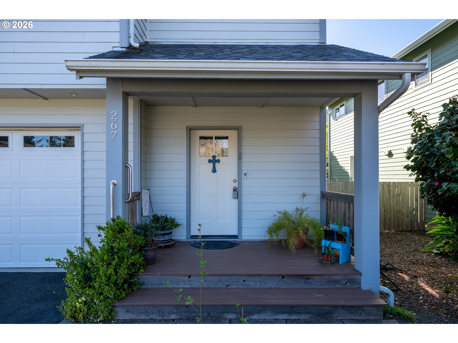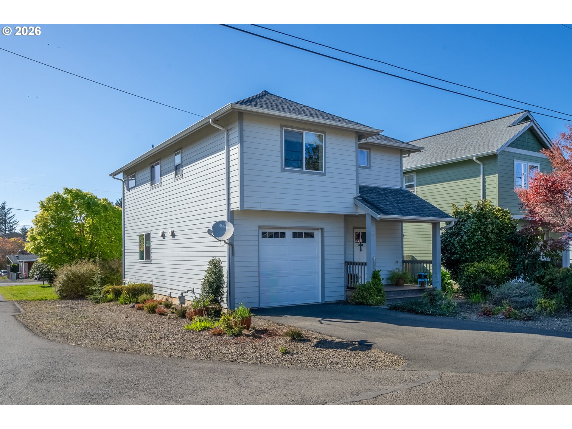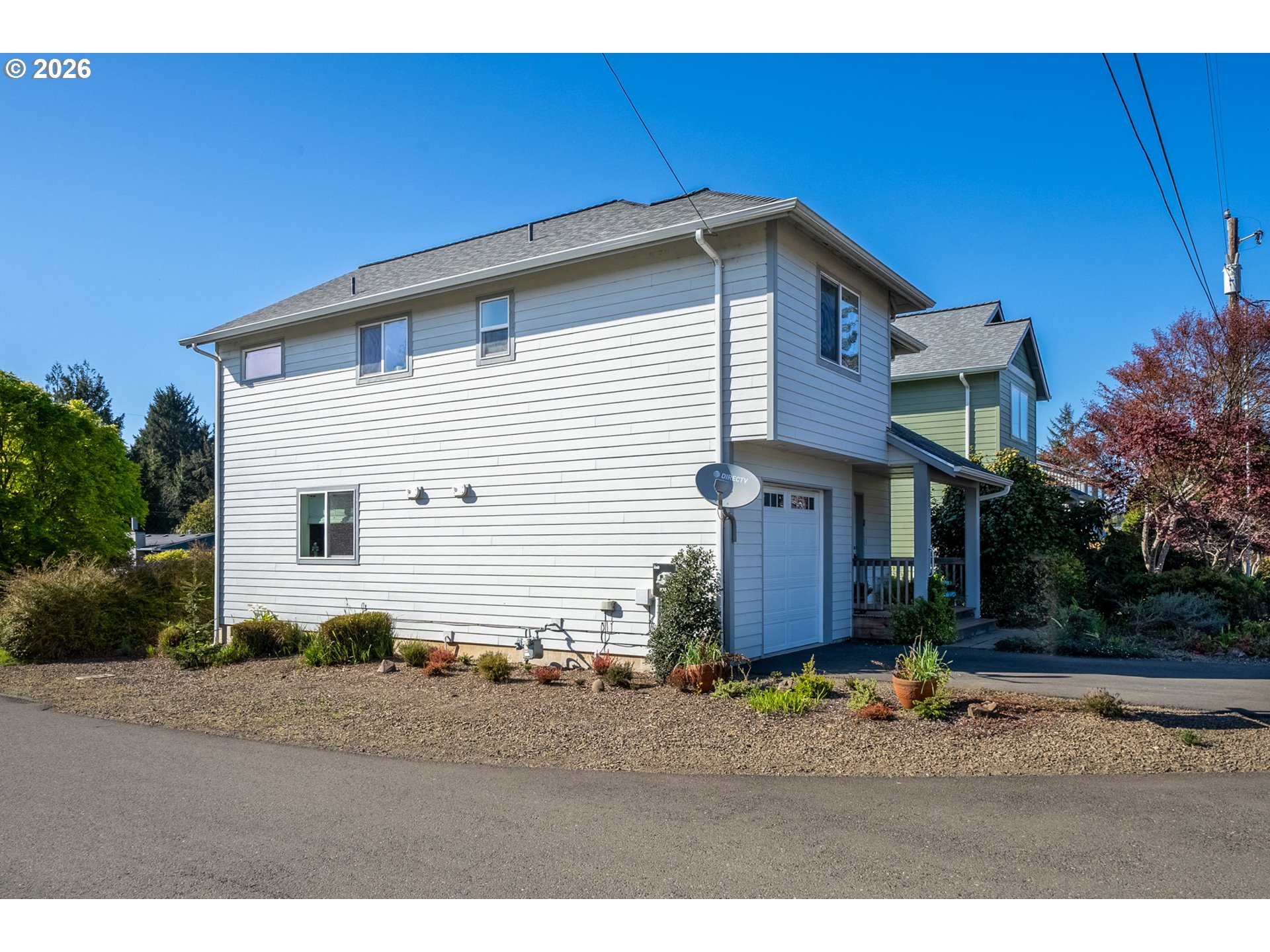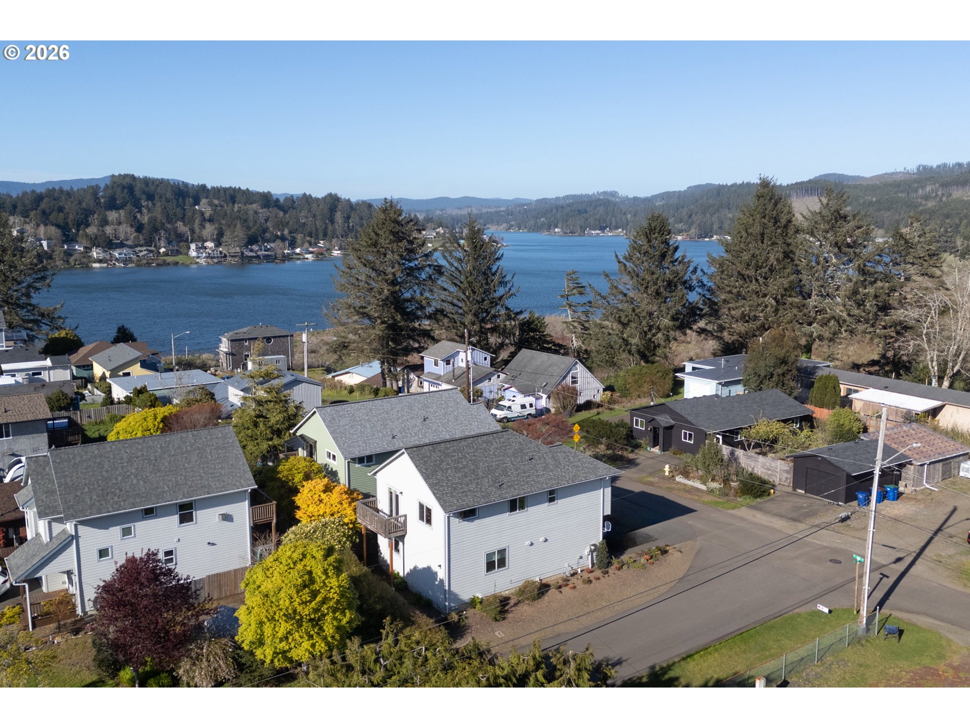 Welcome to this beautifully built 2021 two-story home offering 1,574 SF of light-filled living space in Lincoln City’s sought-after “Eaglet Neighborhood.” Designed for outdoor enthusiasts and nature lovers, this 3-bedroom, 2.5-bath home showcases serene views of a nearby Bald Eagle’s nest right from your window. Enjoy an unbeatable location just a 2-minute walk to the Lincoln City Public Dock, a 4-minute drive to the Devil’s Lake Boardwalk hiking trail—where Devil’s Lake is stocked with fish for a fisherman’s enjoyment—and only 5 minutes to beach and ocean access.Inside, you’ll find durable LVP flooring throughout and a bright, open feel, highlighted by vaulted ceilings in the living room and a cozy gas fireplace—perfect for relaxing on chilly coastal days. Step outside to the deck for gorgeous morning views w/ coffee or sunset relaxation. The kitchen is well-appointed with quartz countertops, an eat-bar, pantry, and stainless steel gas appliances, ideal for both everyday living and entertaining. The spacious owner’s bed features a walk-in closet, and a bath with double sinks.Additional highlights include generously sized bedrooms, a dedicated laundry area with built-ins, a stair chairlift with remote, and a garage equipped with a hot and cold water spigot—perfect for coastal living and cleanup after a day of adventure.
