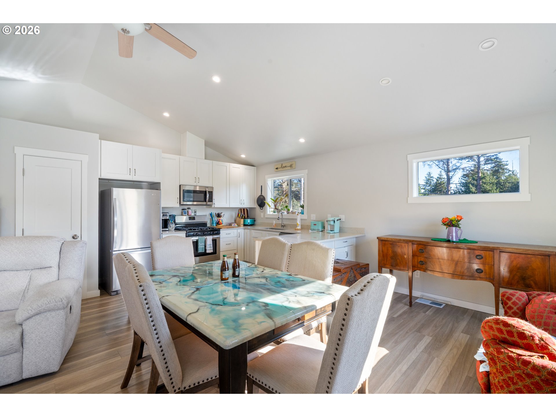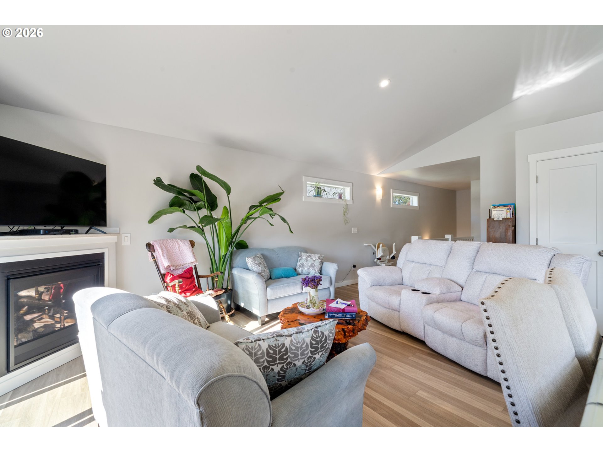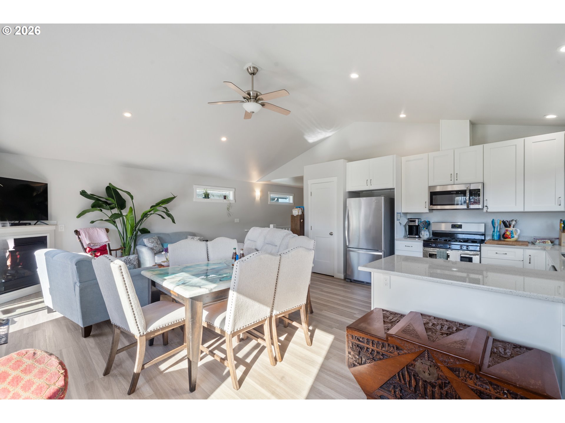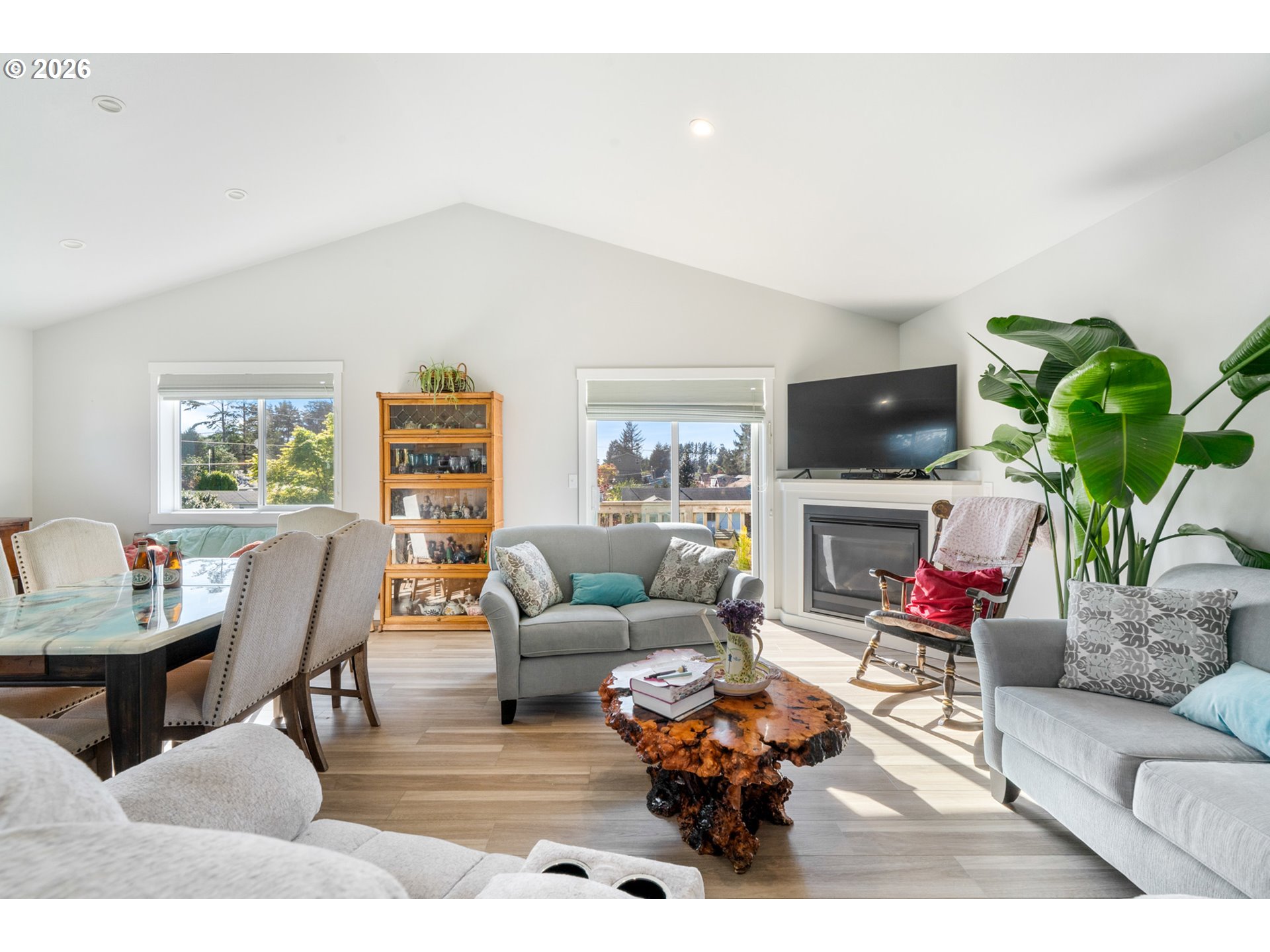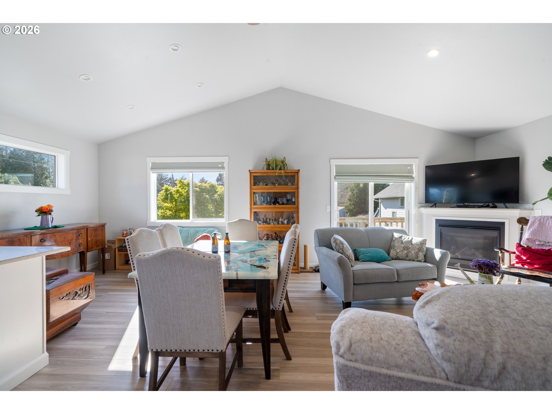 Welcome to this beautifully built 2021 two-story home offering 1,574 SF of light-filled living space in Lincoln City’s sought-after “Eaglet Neighborhood.” Designed for outdoor enthusiasts and nature lovers, this 3-bedroom, 2.5-bath home showcases serene views of a nearby Bald Eagle’s nest right from your window. Enjoy an unbeatable location just a 2-minute walk to the Lincoln City Public Dock, a 4-minute drive to the Devil’s Lake Boardwalk hiking trail—where Devil’s Lake is stocked with fish for a fisherman’s enjoyment—and only 5 minutes to beach and ocean access.Inside, you’ll find durable LVP flooring throughout and a bright, open feel, highlighted by vaulted ceilings in the living room and a cozy gas fireplace—perfect for relaxing on chilly coastal days. Step outside to the deck for gorgeous morning views w/ coffee or sunset relaxation. The kitchen is well-appointed with quartz countertops, an eat-bar, pantry, and stainless steel gas appliances, ideal for both everyday living and entertaining. The spacious owner’s bed features a walk-in closet, and a bath with double sinks.Additional highlights include generously sized bedrooms, a dedicated laundry area with built-ins, a stair chairlift with remote, and a garage equipped with a hot and cold water spigot—perfect for coastal living and cleanup after a day of adventure.
