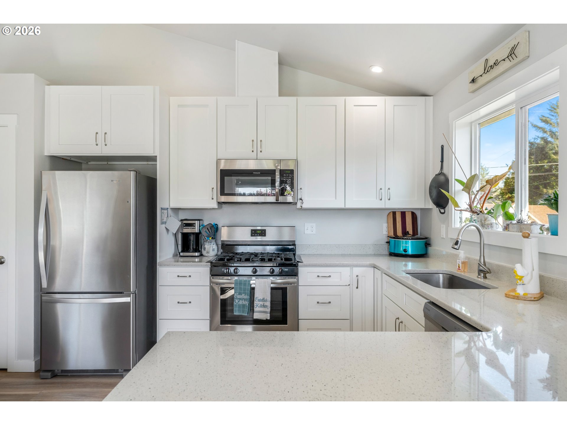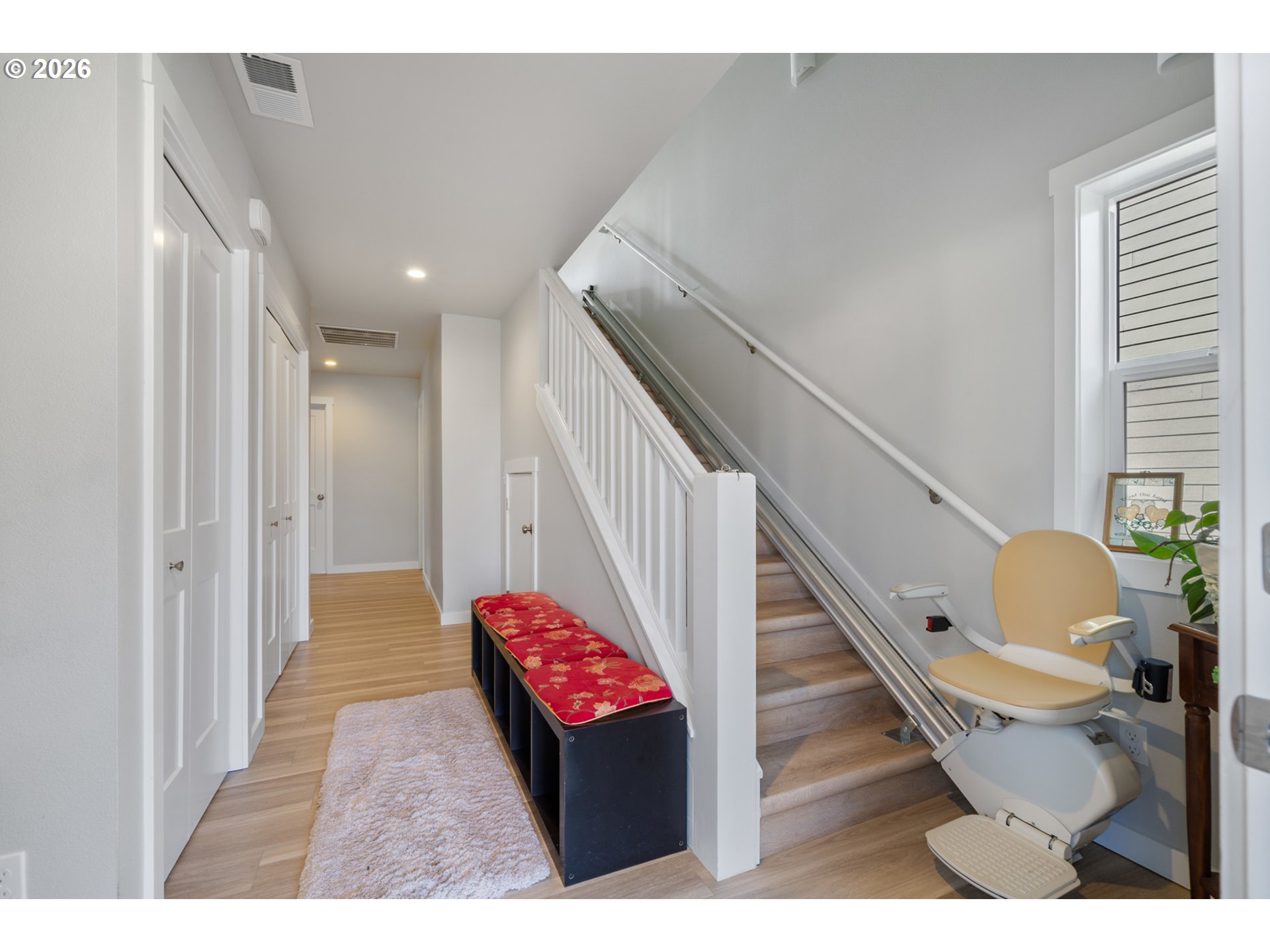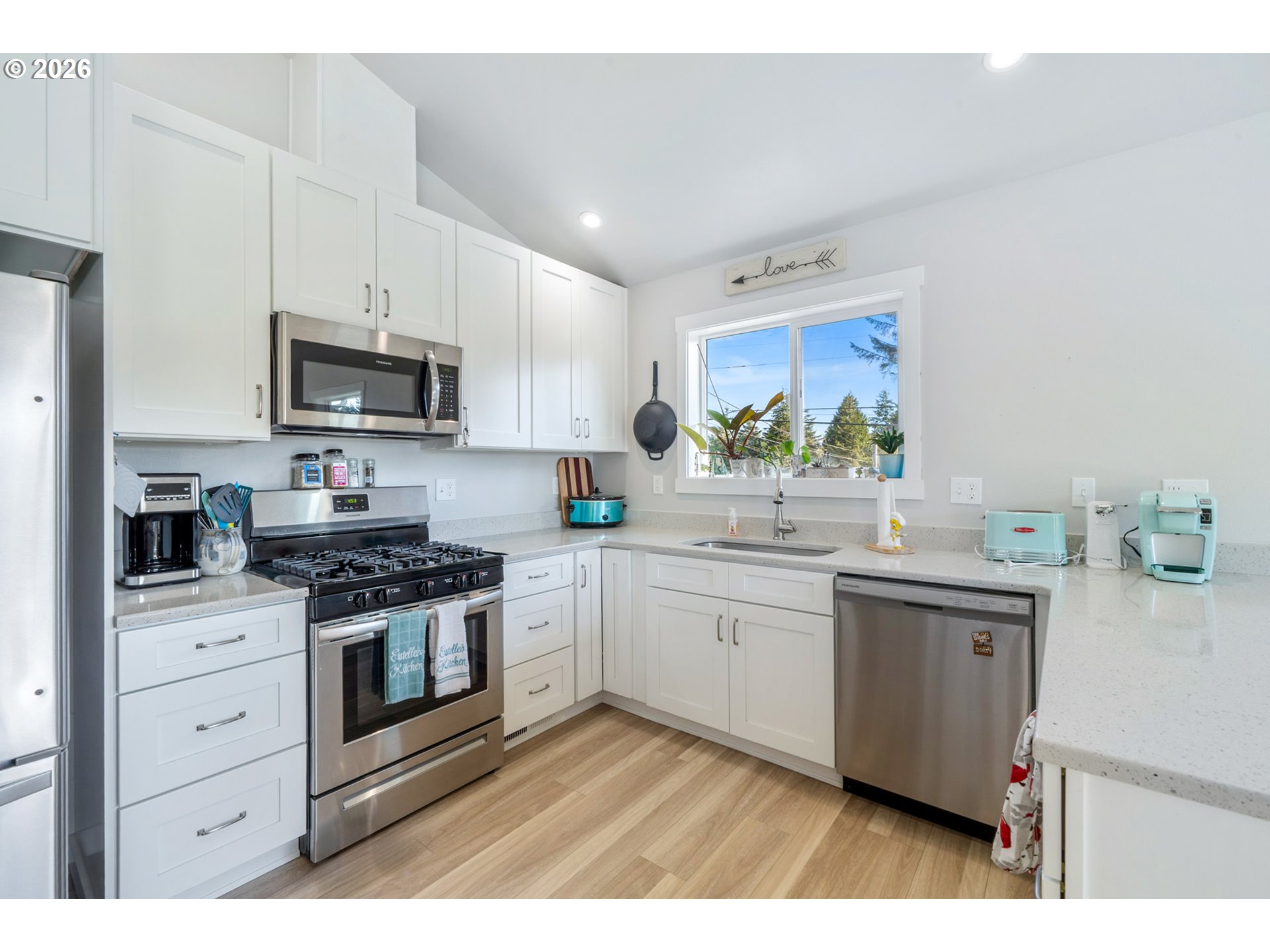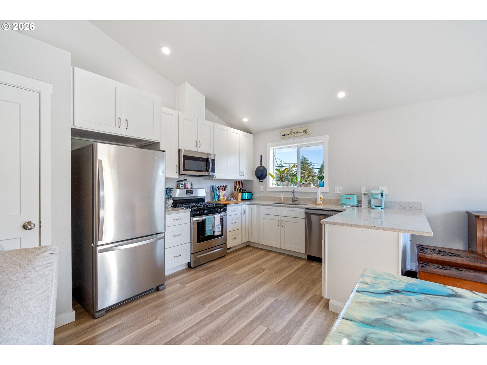 Welcome to this beautifully built 2021 two-story home offering 1,574 SF of light-filled living space in Lincoln City’s sought-after “Eaglet Neighborhood.” Designed for outdoor enthusiasts and nature lovers, this 3-bedroom, 2.5-bath home showcases serene views of a nearby Bald Eagle’s nest right from your window. Enjoy an unbeatable location just a 2-minute walk to the Lincoln City Public Dock, a 4-minute drive to the Devil’s Lake Boardwalk hiking trail—where Devil’s Lake is stocked with fish for a fisherman’s enjoyment—and only 5 minutes to beach and ocean access.Inside, you’ll find durable LVP flooring throughout and a bright, open feel, highlighted by vaulted ceilings in the living room and a cozy gas fireplace—perfect for relaxing on chilly coastal days. Step outside to the deck for gorgeous morning views w/ coffee or sunset relaxation. The kitchen is well-appointed with quartz countertops, an eat-bar, pantry, and stainless steel gas appliances, ideal for both everyday living and entertaining. The spacious owner’s bed features a walk-in closet, and a bath with double sinks.Additional highlights include generously sized bedrooms, a dedicated laundry area with built-ins, a stair chairlift with remote, and a garage equipped with a hot and cold water spigot—perfect for coastal living and cleanup after a day of adventure.