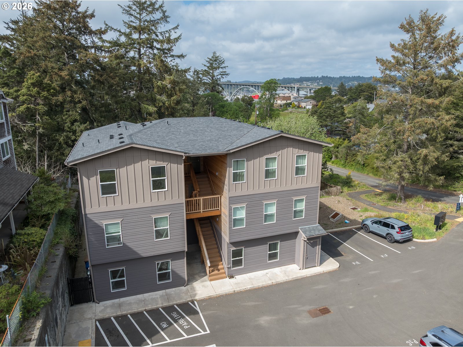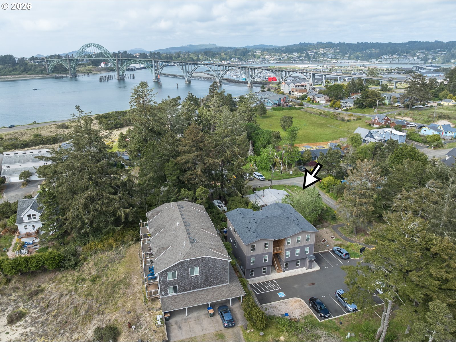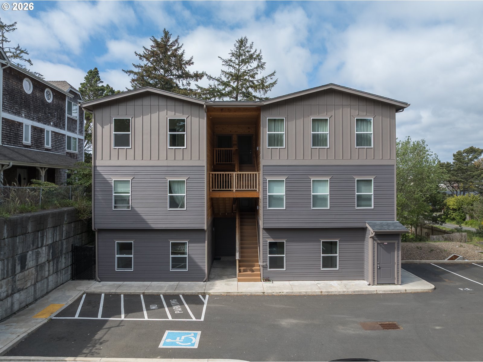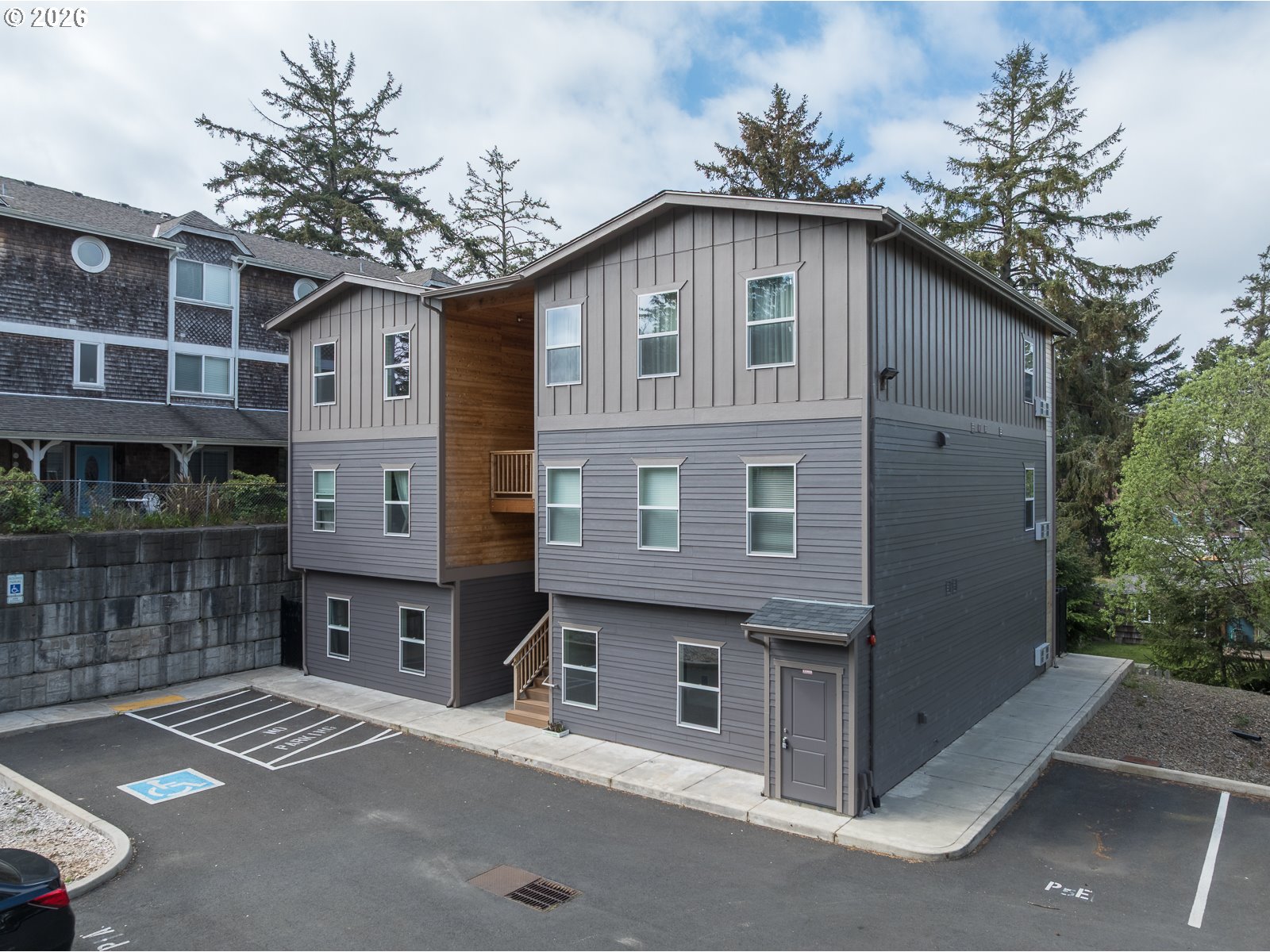 Welcome to easy coastal living in this beautifully designed, ground-floor 1-bedroom, 1-bath condo, built in 2024 with comfort, accessibility, and modern style in mind. Thoughtfully crafted for step-free living, this home offers accessible features with a spacious layout, and seamless transitions throughout. The open-concept floor plan creates a bright and inviting living space. Large windows fill the home with natural light, while clean lines and contemporary finishes give it a fresh, modern feel. The living area flows effortlessly into the kitchen, which features sleek cabinetry, stainless steel appliances, and ample quartz counter space for cooking and gathering. The spacious bathroom is designed with accessibility in mind with grab bars, an easy-to-navigate layout, and modern fixtures. Outside is a private rear patio, a perfect spot to take in the clean, coastal air. No stairs, ground-level access, and a handicapped parking spot located right outside the door. Located just south of the Newport Bridge, this condo is just minutes from some of the Oregon Coast's most popular attractions. Spend your days exploring the Oregon Coast Aquarium, strolling along the nearby beaches, or enjoying the vibrant atmosphere of the South Beach Marina. A variety of local shops, dining options, and everyday conveniences are all within easy reach, making this an ideal location for both full-time living and a relaxing coastal getaway. Built in 2024, this home offers the peace of mind that comes with newer construction. Whether you're looking for a primary residence, a second home, or a smart investment, this condo delivers accessibility, location, and contemporary comfort.