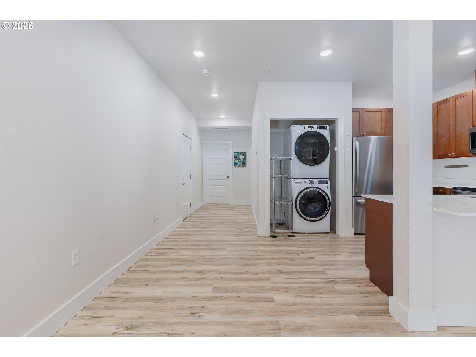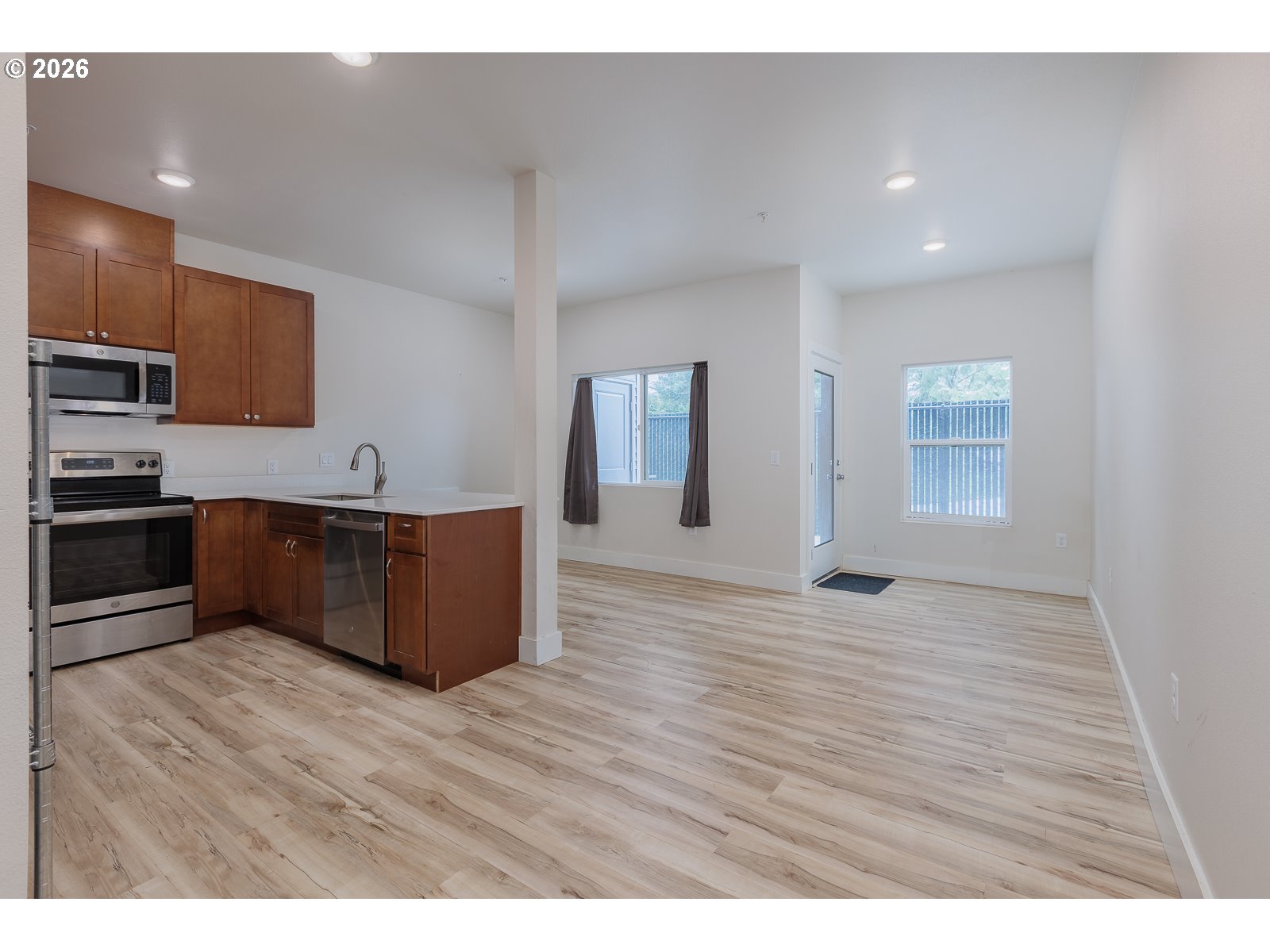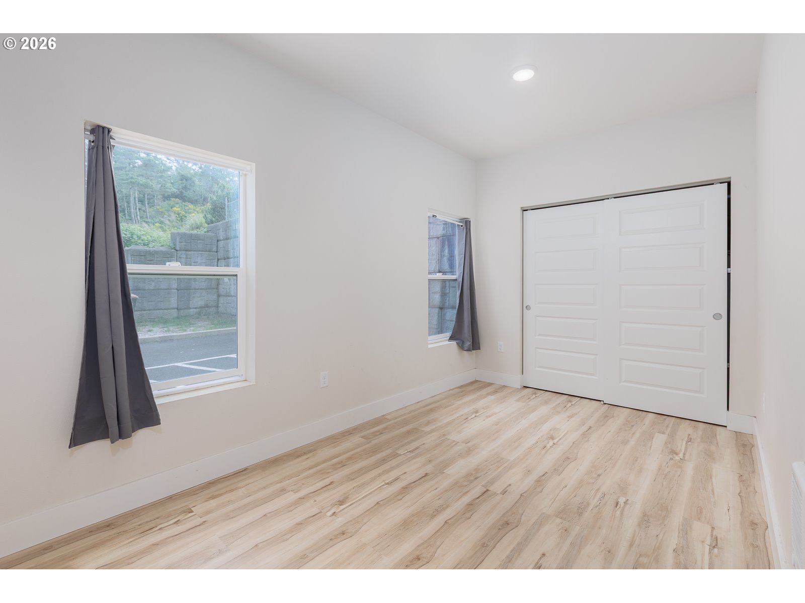 Welcome to easy coastal living in this beautifully designed, ground-floor 1-bedroom, 1-bath condo, built in 2024 with comfort, accessibility, and modern style in mind. Thoughtfully crafted for step-free living, this home offers accessible features with a spacious layout, and seamless transitions throughout. The open-concept floor plan creates a bright and inviting living space. Large windows fill the home with natural light, while clean lines and contemporary finishes give it a fresh, modern feel. The living area flows effortlessly into the kitchen, which features sleek cabinetry, stainless steel appliances, and ample quartz counter space for cooking and gathering. The spacious bathroom is designed with accessibility in mind with grab bars, an easy-to-navigate layout, and modern fixtures. Outside is a private rear patio, a perfect spot to take in the clean, coastal air. No stairs, ground-level access, and a handicapped parking spot located right outside the door. Located just south of the Newport Bridge, this condo is just minutes from some of the Oregon Coast's most popular attractions. Spend your days exploring the Oregon Coast Aquarium, strolling along the nearby beaches, or enjoying the vibrant atmosphere of the South Beach Marina. A variety of local shops, dining options, and everyday conveniences are all within easy reach, making this an ideal location for both full-time living and a relaxing coastal getaway. Built in 2024, this home offers the peace of mind that comes with newer construction. Whether you're looking for a primary residence, a second home, or a smart investment, this condo delivers accessibility, location, and contemporary comfort.
