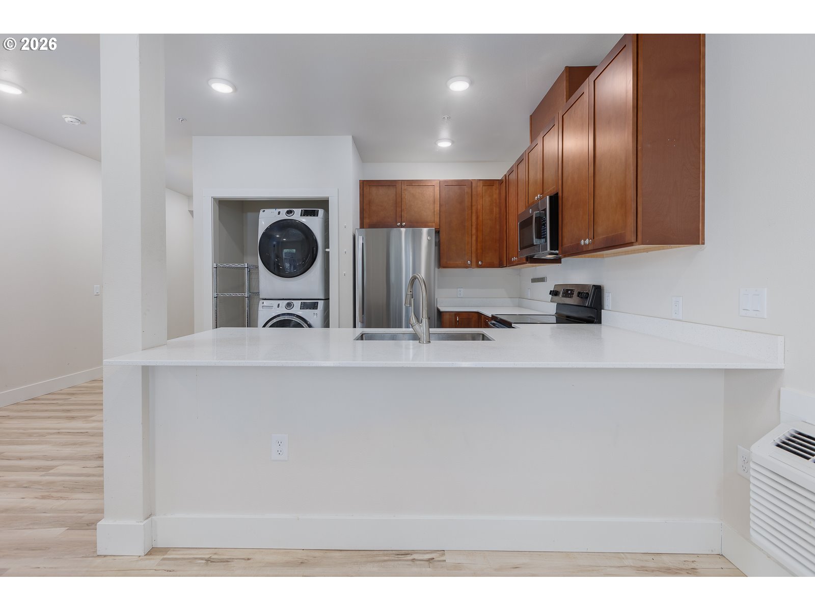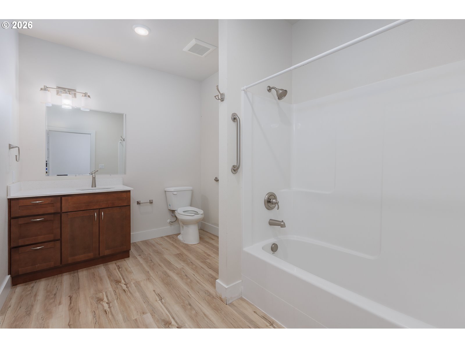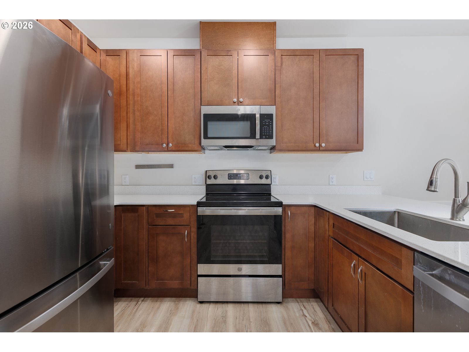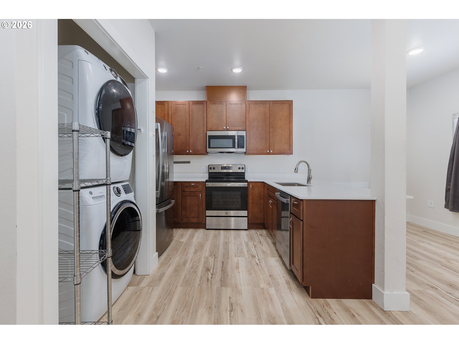 Welcome to easy coastal living in this beautifully designed, ground-floor 1-bedroom, 1-bath condo, built in 2024 with comfort, accessibility, and modern style in mind. Thoughtfully crafted for step-free living, this home offers accessible features with a spacious layout, and seamless transitions throughout. The open-concept floor plan creates a bright and inviting living space. Large windows fill the home with natural light, while clean lines and contemporary finishes give it a fresh, modern feel. The living area flows effortlessly into the kitchen, which features sleek cabinetry, stainless steel appliances, and ample quartz counter space for cooking and gathering. The spacious bathroom is designed with accessibility in mind with grab bars, an easy-to-navigate layout, and modern fixtures. Outside is a private rear patio, a perfect spot to take in the clean, coastal air. No stairs, ground-level access, and a handicapped parking spot located right outside the door. Located just south of the Newport Bridge, this condo is just minutes from some of the Oregon Coast's most popular attractions. Spend your days exploring the Oregon Coast Aquarium, strolling along the nearby beaches, or enjoying the vibrant atmosphere of the South Beach Marina. A variety of local shops, dining options, and everyday conveniences are all within easy reach, making this an ideal location for both full-time living and a relaxing coastal getaway. Built in 2024, this home offers the peace of mind that comes with newer construction. Whether you're looking for a primary residence, a second home, or a smart investment, this condo delivers accessibility, location, and contemporary comfort.
