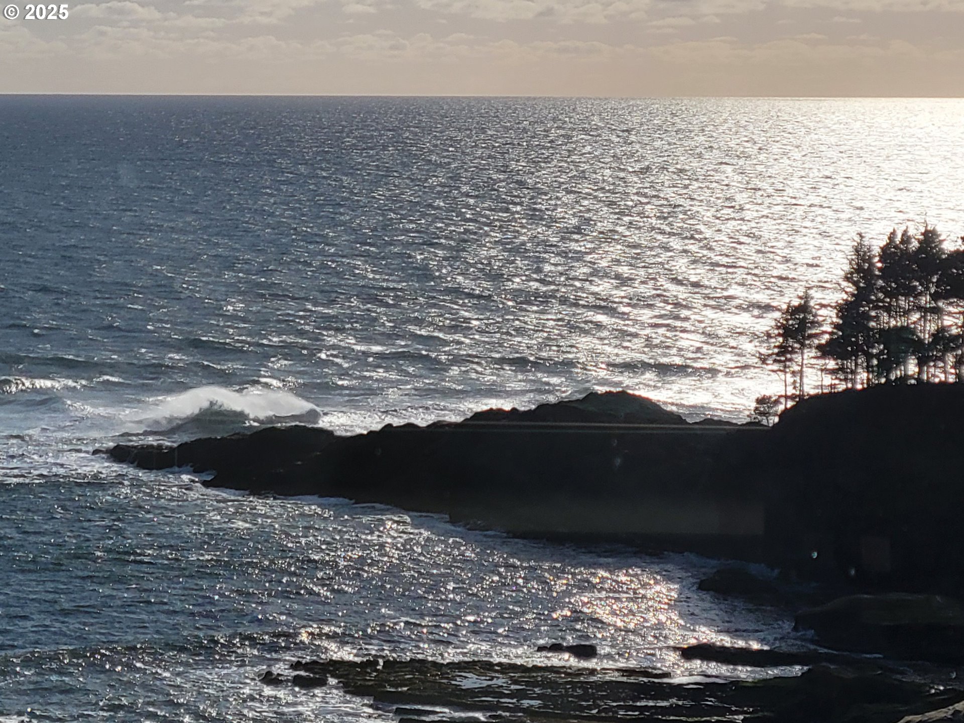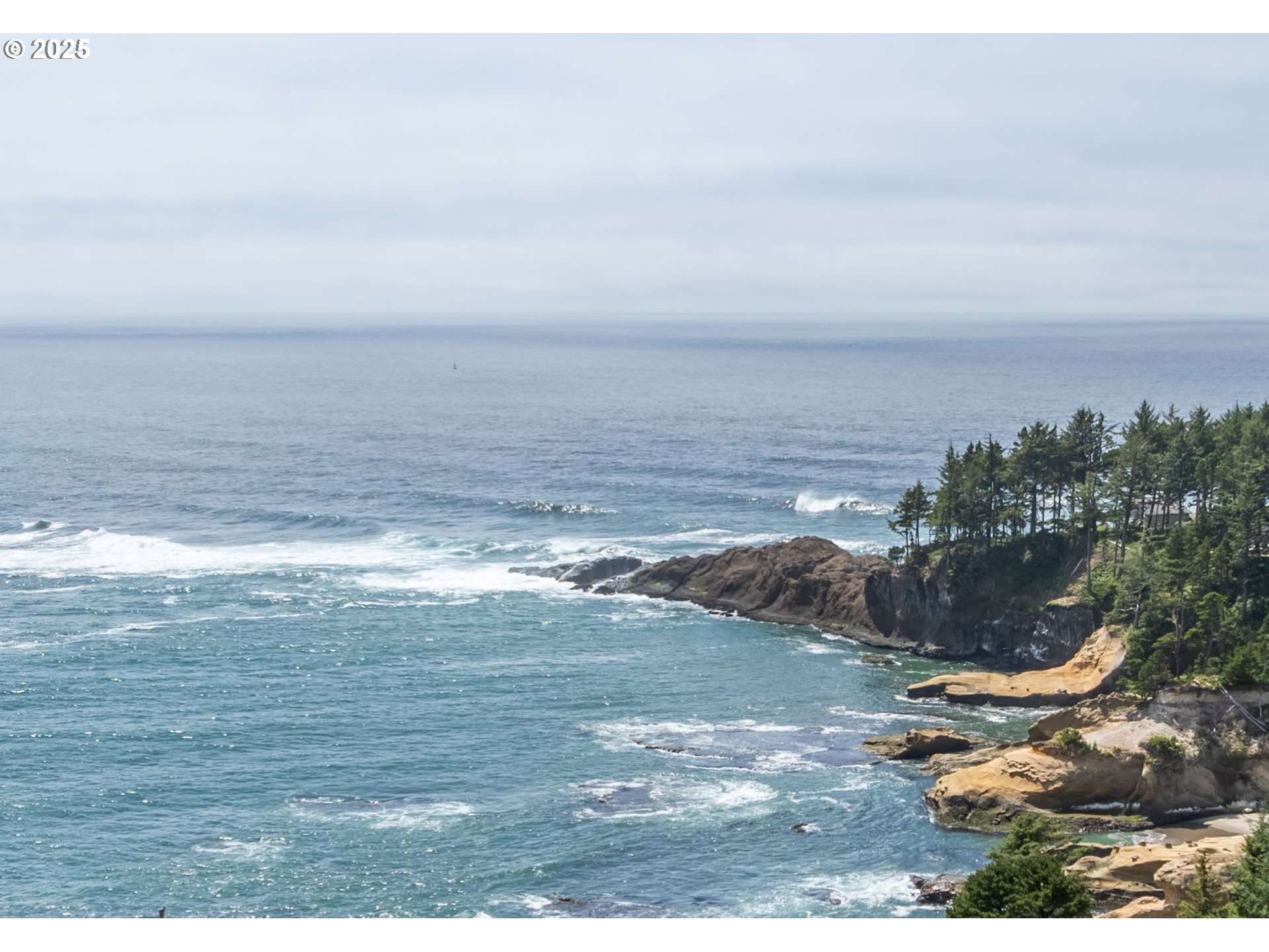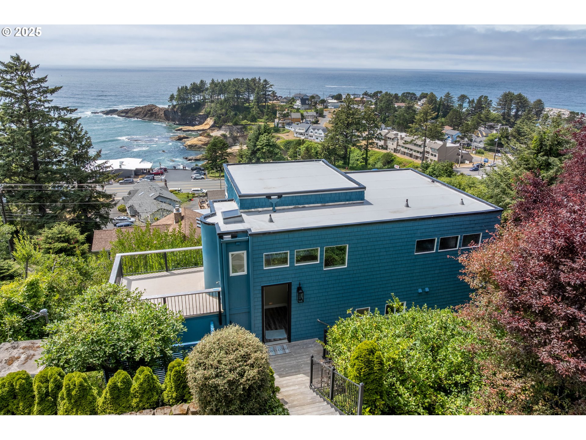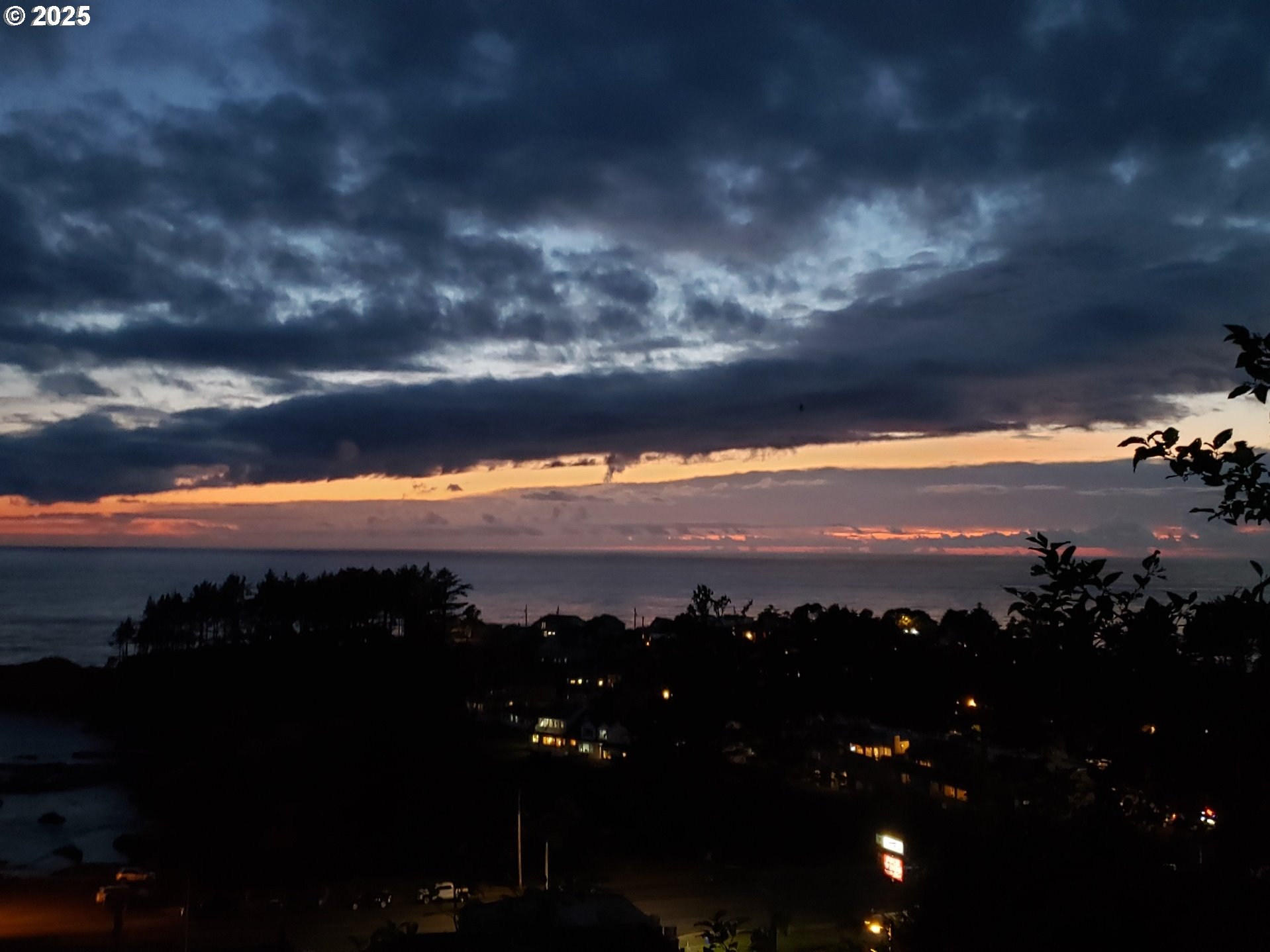 View of Views! 180~ degrees of dazzling Ocean and a commanding view of the entire Depoe Bay. Sparkling water, Storm driven waves thundering over the rocky point. And sunsets, Sunsets, SUNSETS year round. Always something new and exciting. Boats coming and going from the “world’s smallest harbor” Majestic whales showing off, Happy lazy seals lounging on the rocks below, Ocean birds crowding the rock in Pirate’s Cove, Quaint village scene on the point below, all from your every window. Yep, a view from every room. No shoulder to shoulder houses competing for a slice of ocean view here. Lush spacious surroundings and unobstructed view just above the town. Entertain in your beautiful showpiece or just relax and enjoy the beauty. Maybe join the happy crowd at the shops, restaurants or whale watching center just below in “the whale watching capital”. Or branch out to the numerous beaches, nature and attractions near around. The home is built to take full advantage of its magnificent view. Spacious cooks kitchen sports 6 burner stainless gas cooktop w downdraft, 6 foot wide fridge/freezer units, miles of granite and tile countertop and cabinets galore, with pullouts and appliance garages, and of course the inspiring view. Rooftop patio, balcony and cedar decks wrap around the living area. Decorative iron railing too. Primary bedroom suite has spacious private bath with tile, double shower, privacy potty, and spacious walk-in closet. Each bedroom has the view, and a sliding glass door to viewing deck. Quality LVP flooring throughout, this home is clean clean, fresh, and tasteful. Visit when the view is clear, don’t miss the magic. Return for sunset viewing, you'll be glad you did.