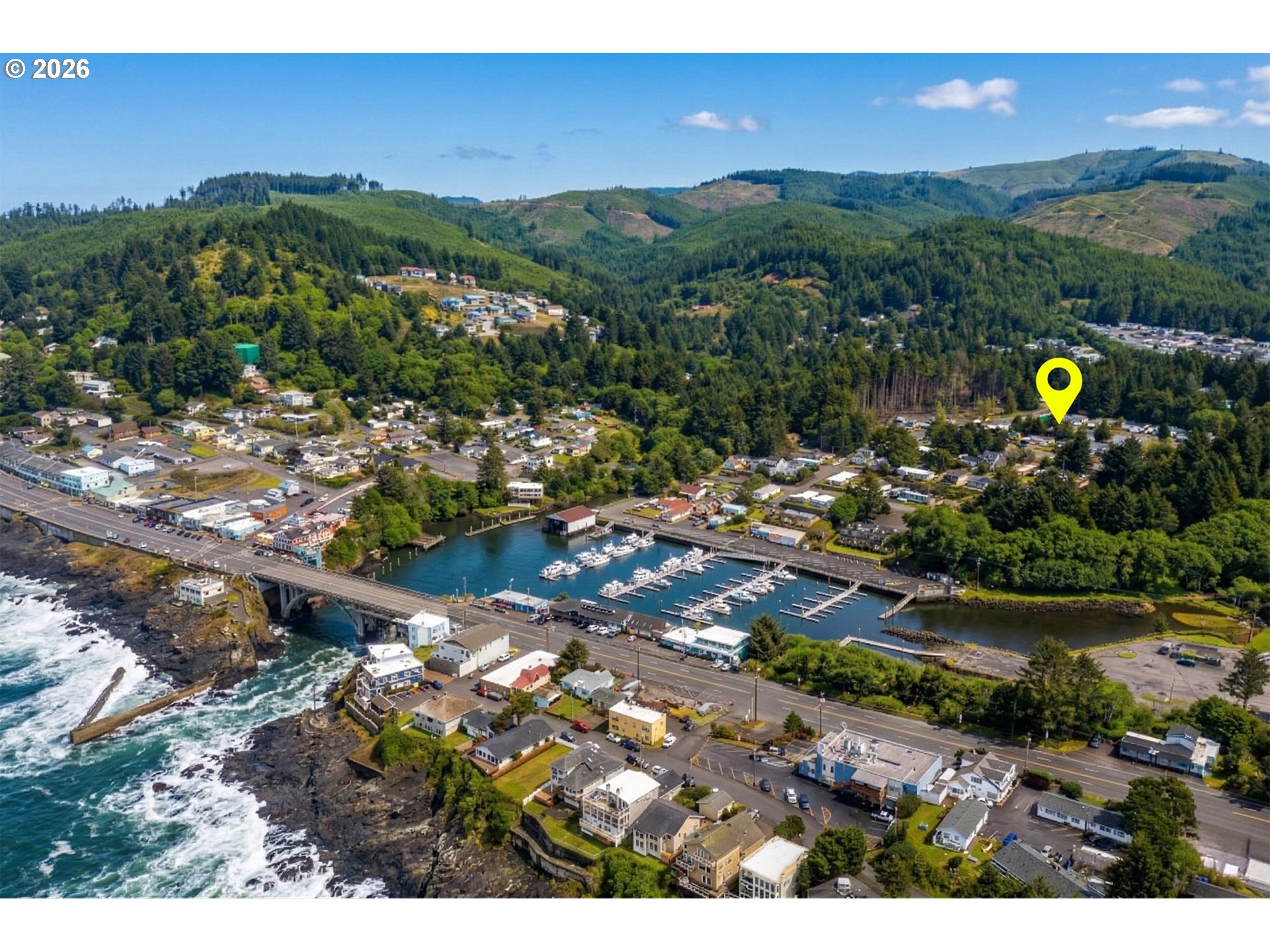 Experience a seamless blend of coastal elegance and modern comfort in this light-filled sanctuary. This meticulously maintained home sits on an oversized lot near the heart of Depoe Bay, boasting significant recent upgrades including a newer roof (2024), Insta hot water in kitchen, newer electric stove, dishwasher & built-in microwave and newer washer and dryer. The thoughtful floor plan is defined by soaring vaulted ceilings and striking trapezoid windows that invite the sun to dance across the living/dining rooms, creating an open, airy atmosphere that is perfect for effortless entertaining. Whether you are hosting a lively dinner party or curling up by the flickering fireplace for a cozy coastal evening, the home flows beautifully for every occasion. Step into a spacious kitchen featuring a skylight, stainless steel appliances, a central island, pantry, and a built-in desk area. The primary suite offers a nice retreat with an ensuite bath, complete with a deep soaking tub, separate shower, and a generous walk-in closet. A large laundry room with a dedicated sink, extra storage, a newer washer & dryer flow nicely into the large two car garage. Practicality is woven into every corner of this home and provides ample storage throughout! Enjoy outside living with a fenced backyard complete with a garden shed and ample room to breathe, all situated just moments from nature trails, the iconic Oregon coastline, and the salt-aired charm of downtown Depoe Bay.