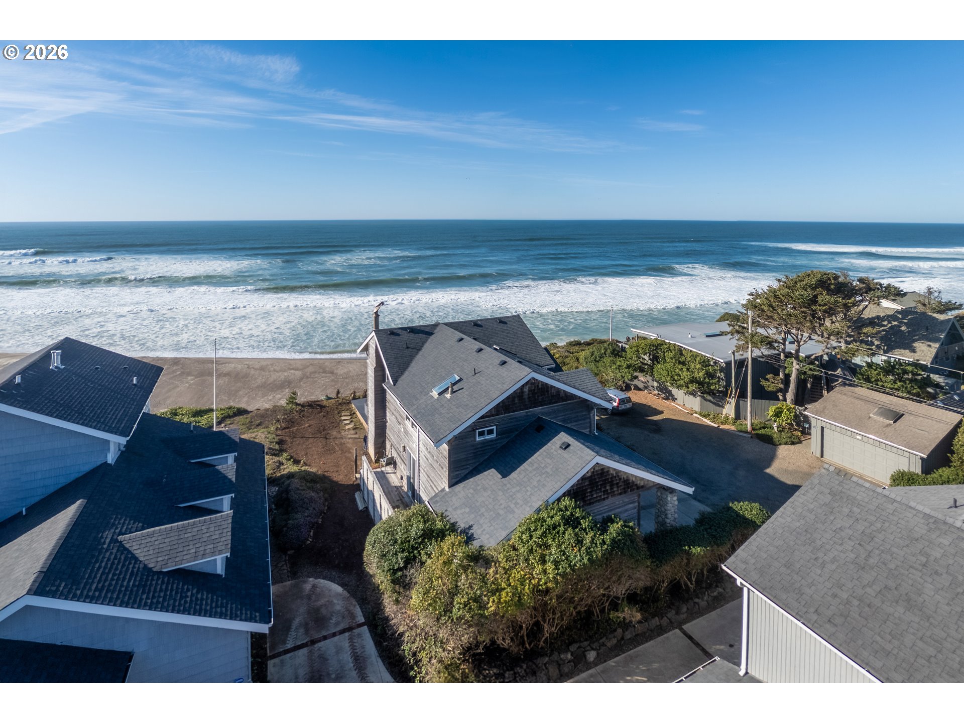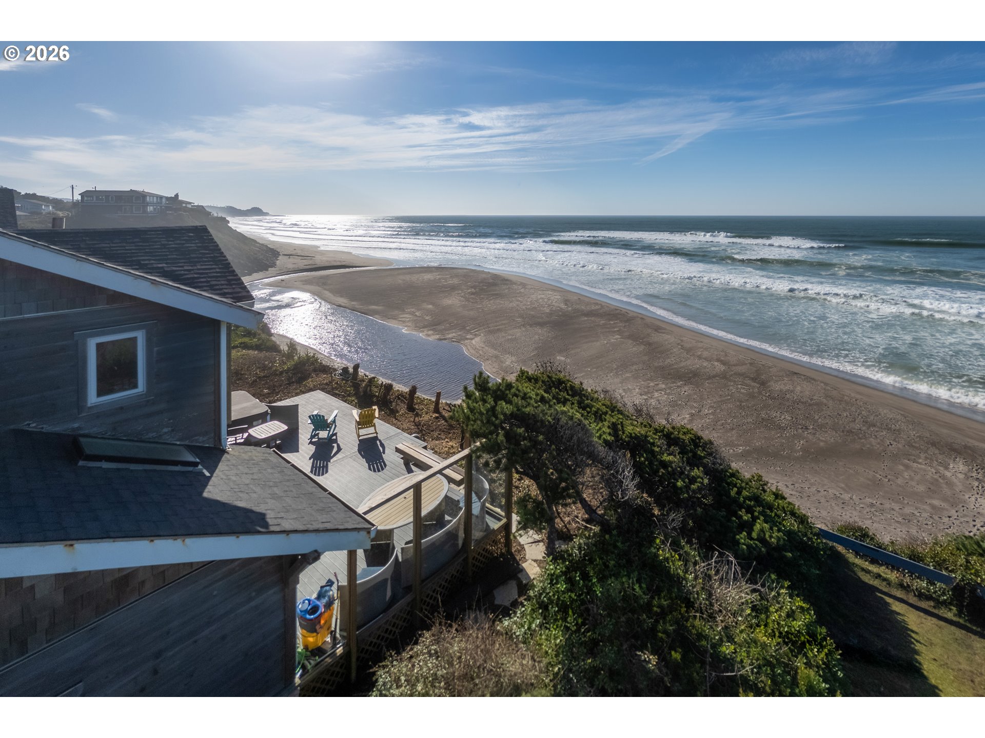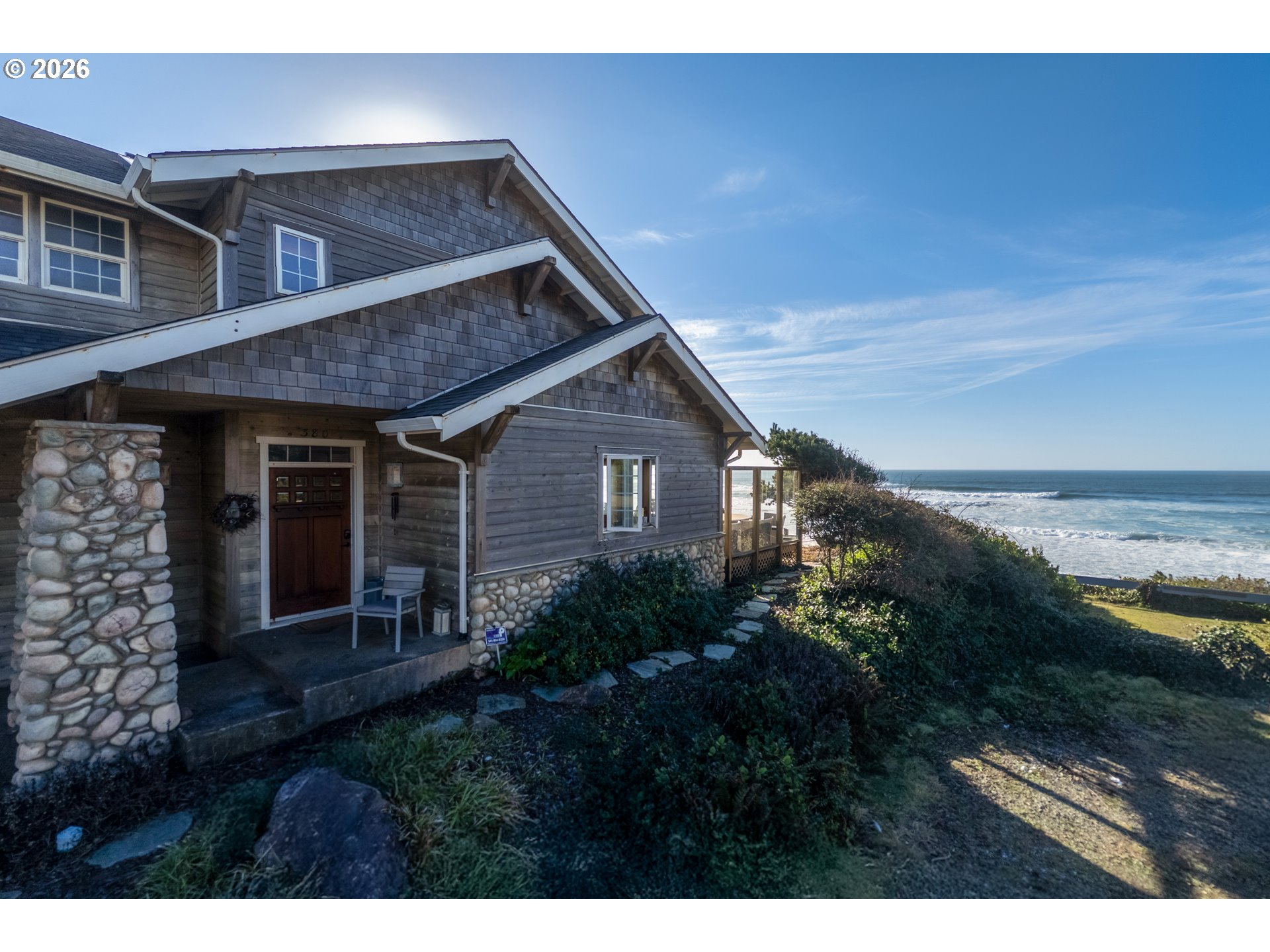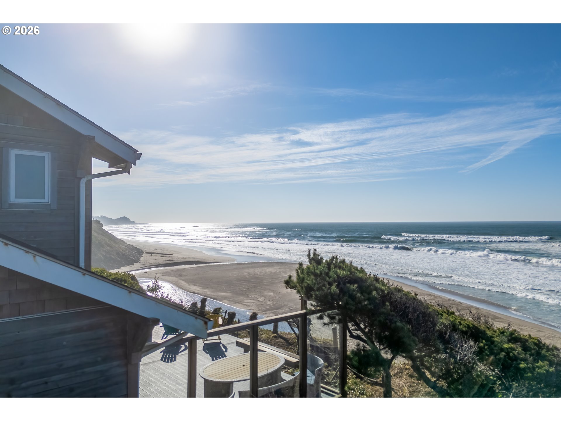 Expansive Ocean Views! 3 Primary Suites! Open floor plan, Wall of windows, Media room could be 4th bedroom. Pantry, Skylights, Granite counters, wood burning fireplace in Living room, gas fireplace in primary bedroom, Large deck w/hot tub and oversized 2 car garage.