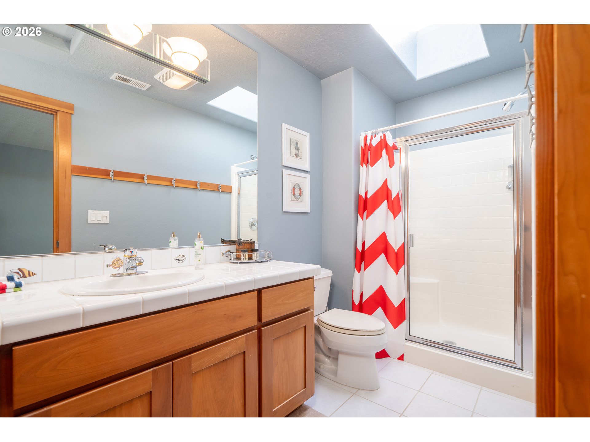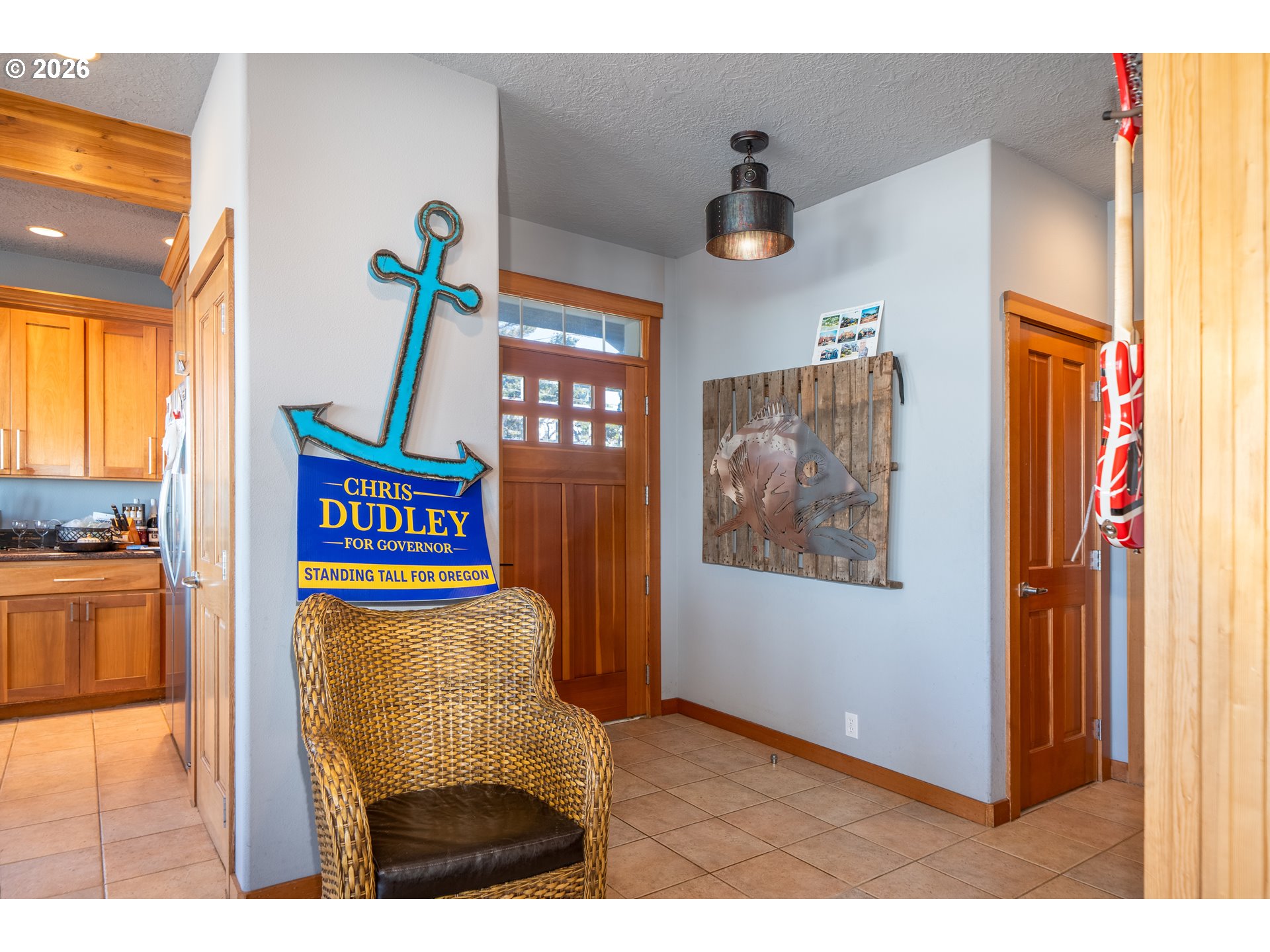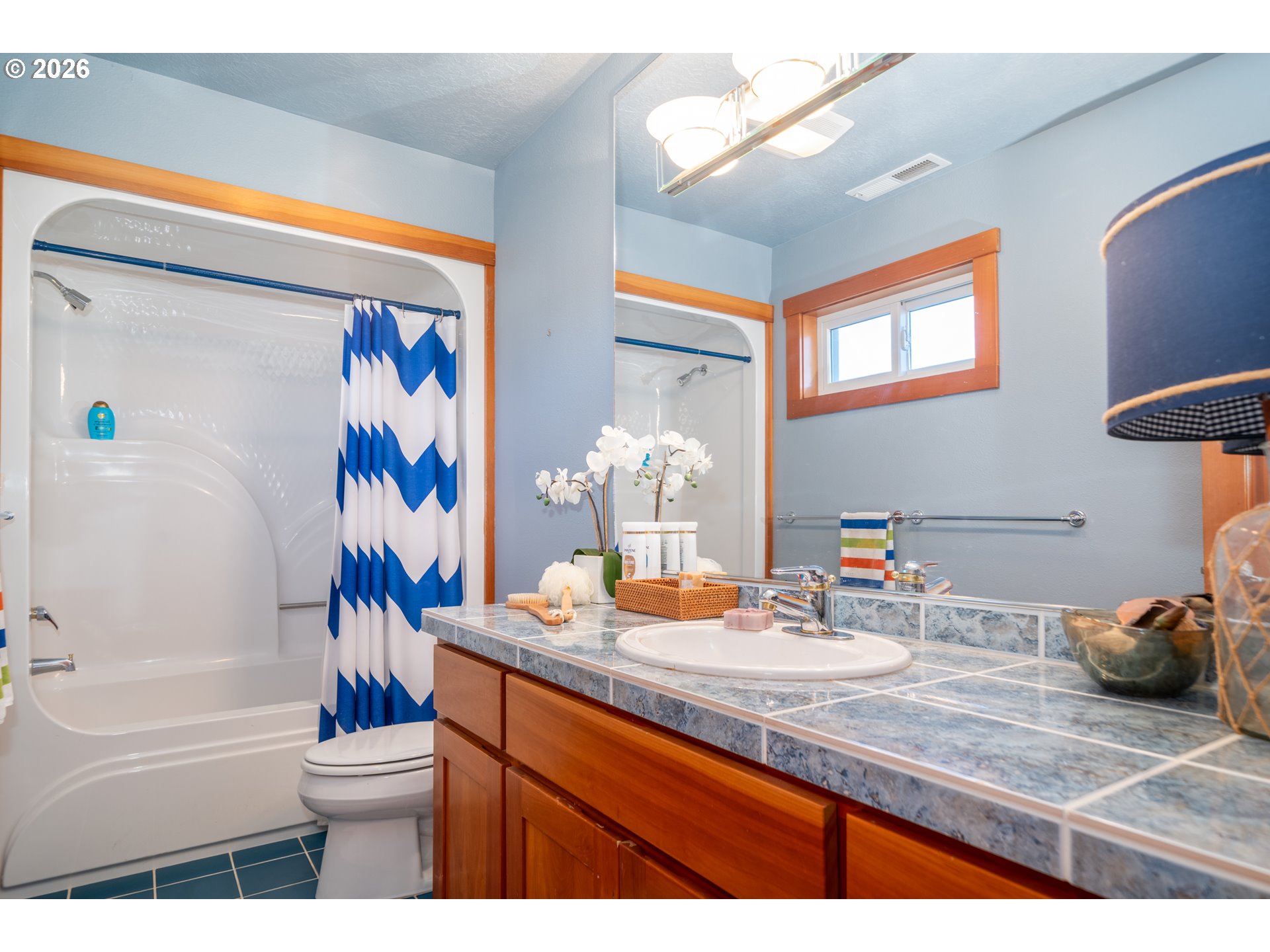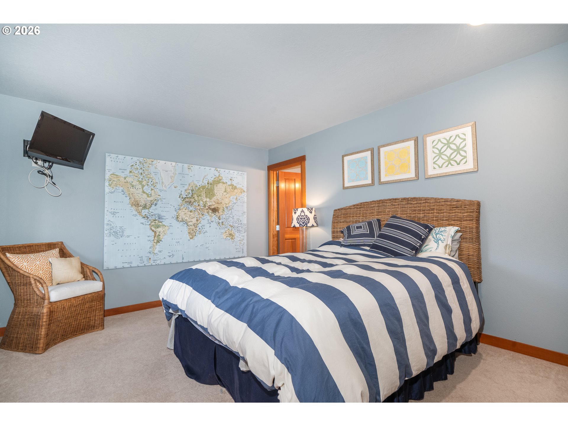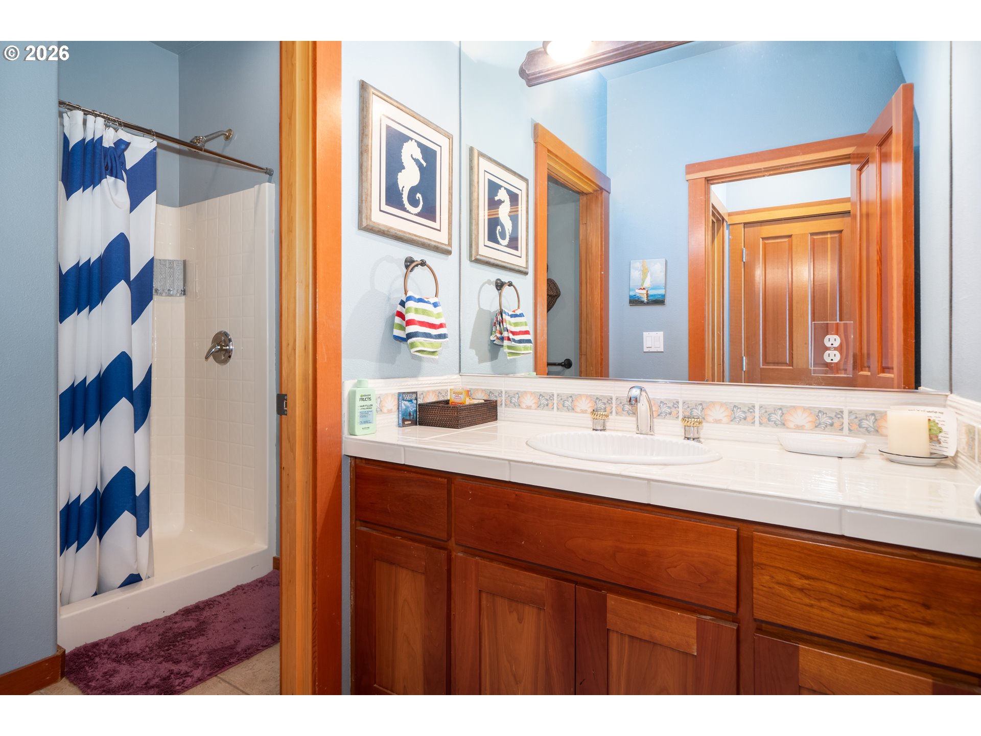 Expansive Ocean Views! 3 Primary Suites! Open floor plan, Wall of windows, Media room could be 4th bedroom. Pantry, Skylights, Granite counters, wood burning fireplace in Living room, gas fireplace in primary bedroom, Large deck w/hot tub and oversized 2 car garage.