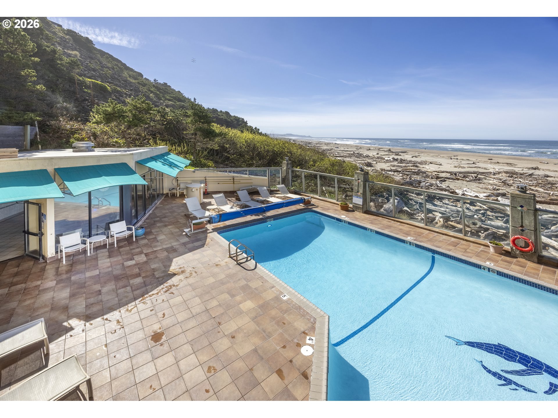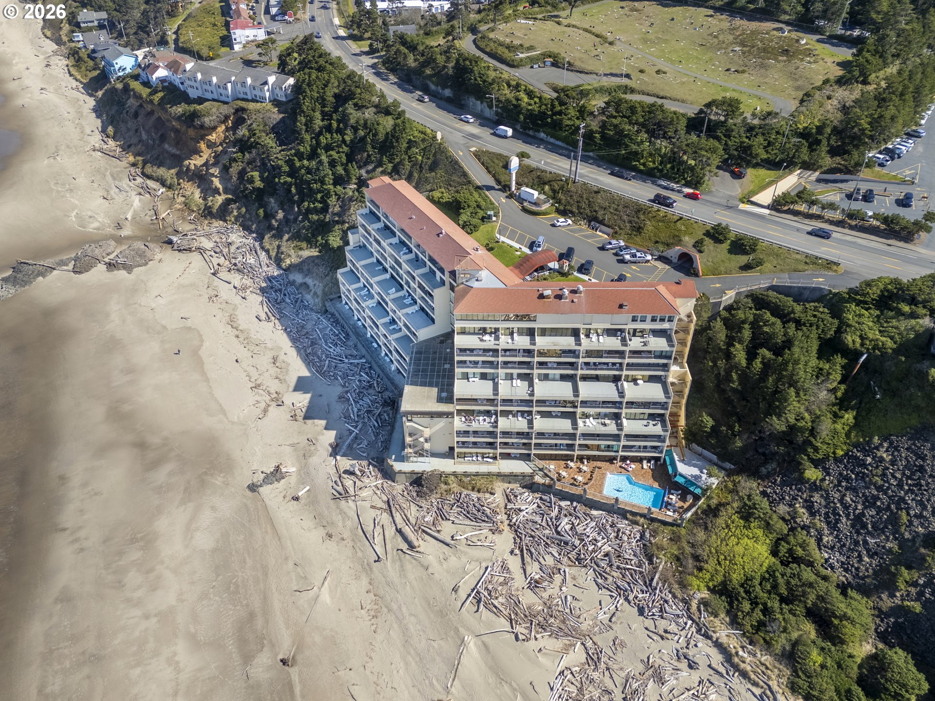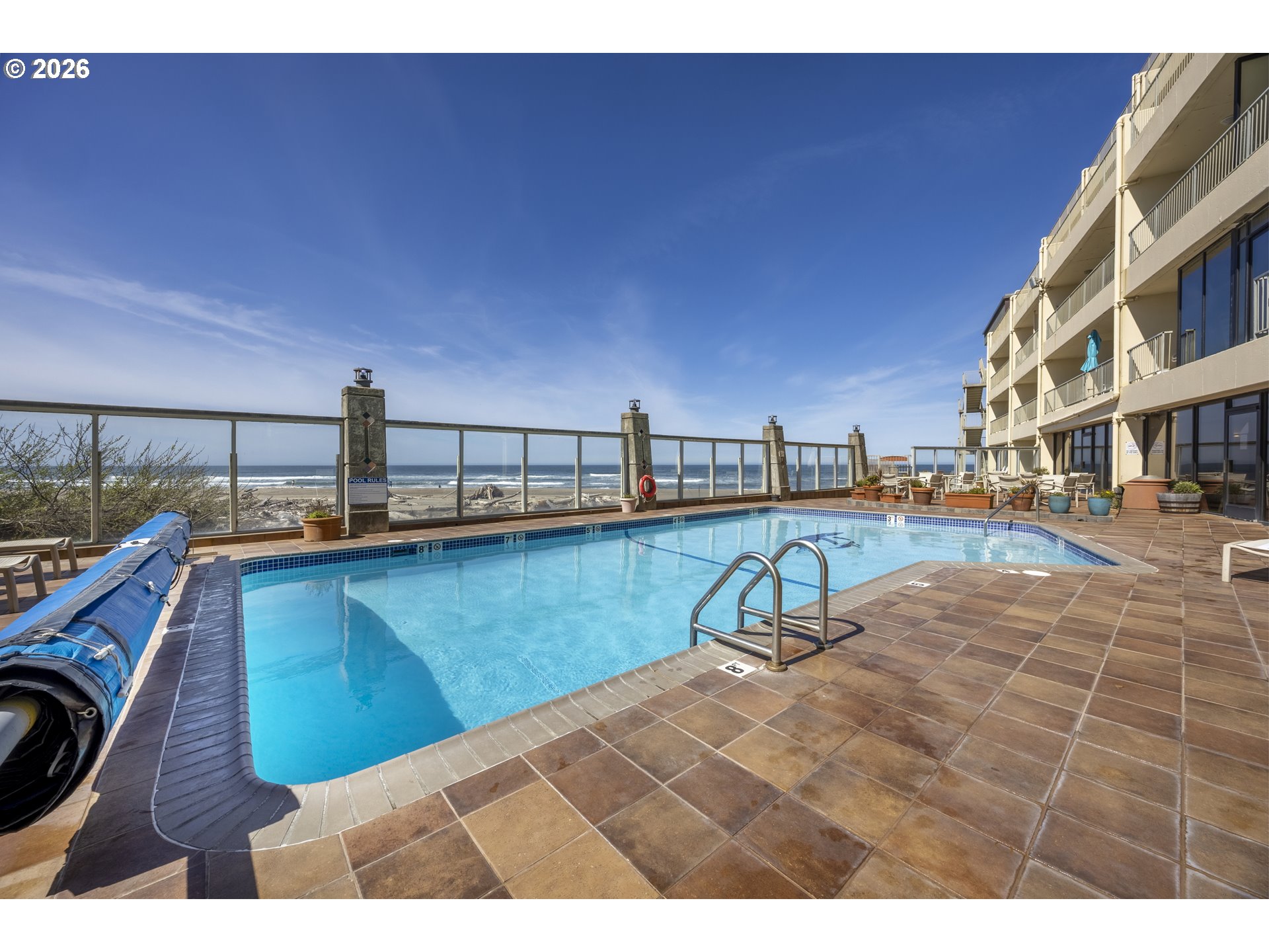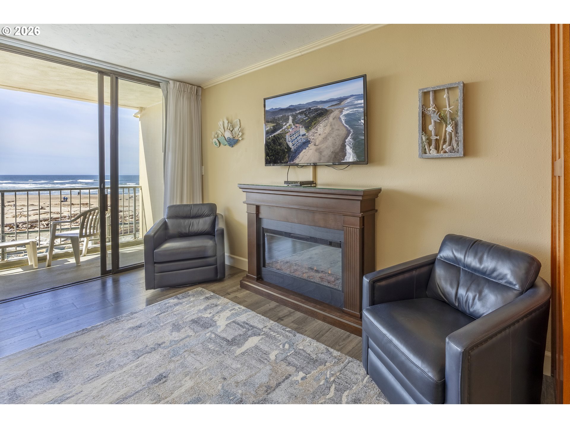 Oceanfront resort living at its finest. Wake up in this beautifully updated oceanfront 2nd-floor studio at Inn at Spanish Head, where sweeping Pacific views and a sun-filled southfacing balcony overlooking the pool create a truly exceptional coastal setting—the perfect backdrop for evening wine and unforgettable sunsets. Love storm watching? Settle in by the elegant electric fireplace with a warm drink and take in the dramatic waves from the comfort of your own private, year-round retreat. Thoughtfully designed and turnkey, this fully furnished condo showcases recent updates, a full kitchen, a king-sized bed, and a dining table with barstools ideally positioned to enjoy meals with a view. An owner's private storage closet and a bright, comfortable living space complete this refined coastal escape. Located within one of Lincoln City's premier oceanfront resorts, owners and guests enjoy an array of amenities including a heated pool, hot tub spa, fitness center, game room, laundry facilities, valet parking, room service, full-time on-site rental management, and the renowned Fathoms Restaurant & Lounge. Just moments from miles of sandy beach, this location embodies the very best of Oregon Coast living. Currently operating as a nightly vacation rental and owner's vacation getaway. Schedule your private showing and begin experiencing oceanfront living at its finest!