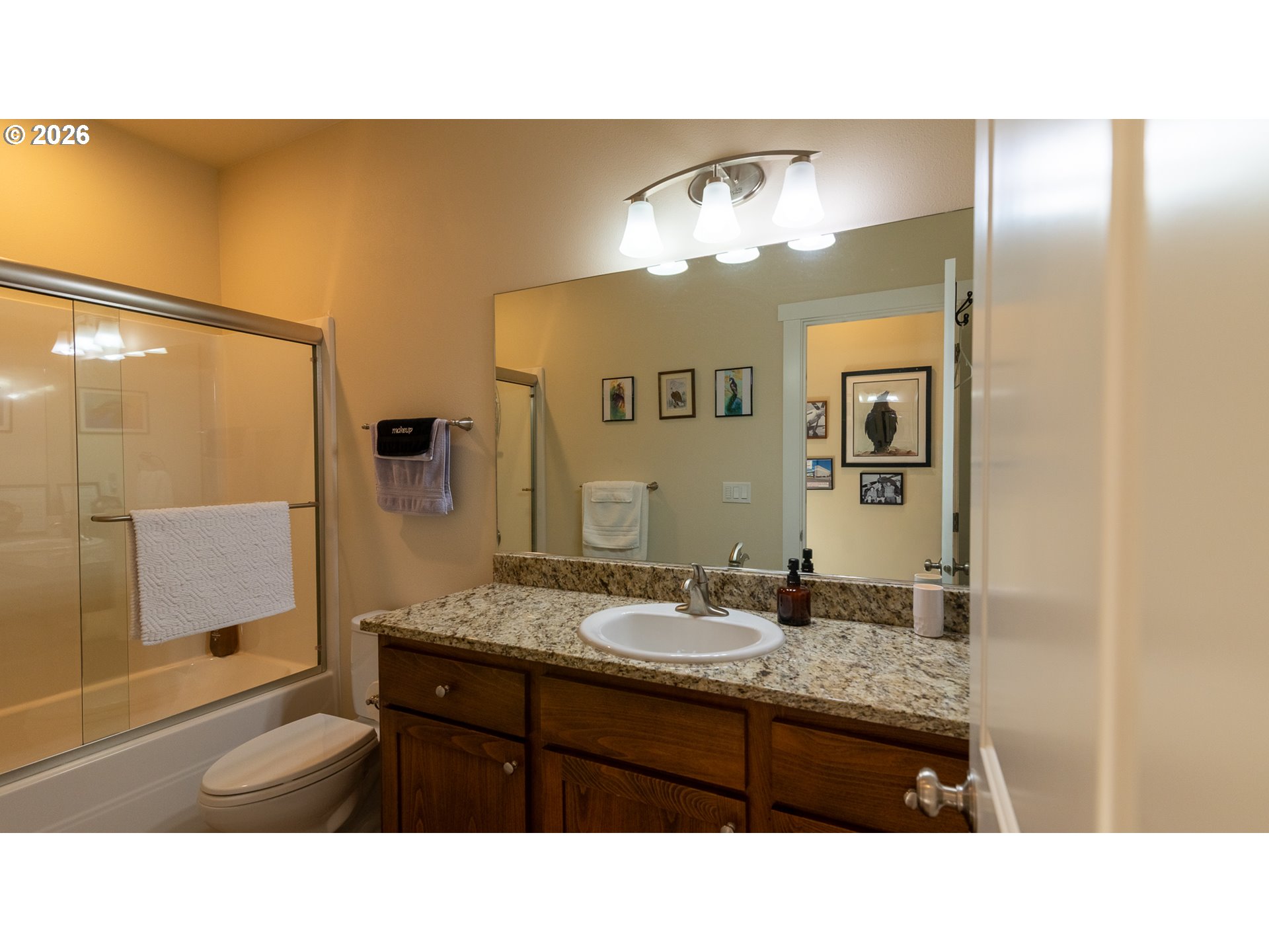 Discover coastal living at its finest in this meticulously maintained, one-level home in The Resort at Bayview. Built in 2016 and cherished by its original owner, this 3 bedroom, 2 bathroom residence offers an open-concept layout with 9-foot ceilings that create an immediate sense of space and light. The primary suite serves as a true retreat, featuring vaulted ceilings and abundant natural light. The heart of the home is a spacious kitchen designed with a large island, granite countertops, and stainless steel appliances, perfect for both hosting gatherings and quiet mornings. Warm wood floors lead to a cozy living area anchored by a gas fireplace, blending comfort with coastal charm. Outside, a private deck overlooks an established greenbelt where you can enjoy the peace of nature and deer sightings. Located outside the tsunami hazard zone, this home provides both beauty and peace of mind. Residents enjoy exceptional community amenities, including a resort-style pool, hot tub, fitness center, and gathering spaces, all for a low monthly HOA fee of $135. The proximity to dining and shopping in Lincoln City further enhances this home's extraordinary value for those seeking the quintessential Oregon Coast lifestyle.