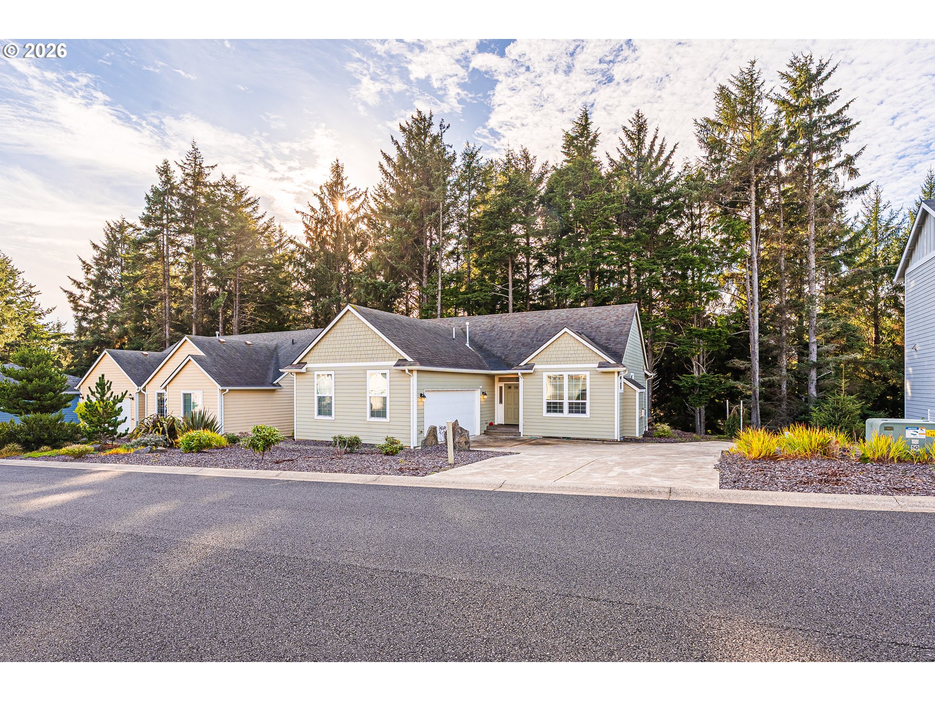 Welcome to The Resort at Bayview, where coastal living meets ease, space, and daily connection to nature. Built in 2016 and lovingly maintained by its original owner, this one-level home offers the true comfort of coastal life. The open-concept layout with 9-foot ceilings creates instant airiness, while the primary suite feels like a retreat with vaulted ceilings and soft natural light. Warm wood floors lead into a spacious kitchen with a large island, granite countertops, and stainless steel appliances—ideal for gatherings or quiet mornings. A gas fireplace grounds the living area, offering that perfect balance of cozy and coastal calm. Outside, the established greenbelt brings privacy, and seasonal deer sightings right to your doorstep. When the ocean calls, residents enjoy nearby shoreline views, beach paths, and the dramatic beauty of Oregon’s storm-watching season and king tides. Lincoln City’s dining, shopping, and beach access points are all just minutes away. Community amenities elevate the experience with a resort-style pool, hot tub, fitness room, and welcoming gathering spaces, all included in the affordable $135/month HOA.With the original owner preparing to move closer to family, this well-cared-for home is ready for someone new to step in and enjoy coastal living with comfort, nature, and extraordinary value.Bonus peace of mind: The property is located outside the tsunami hazard zone, offering added security.