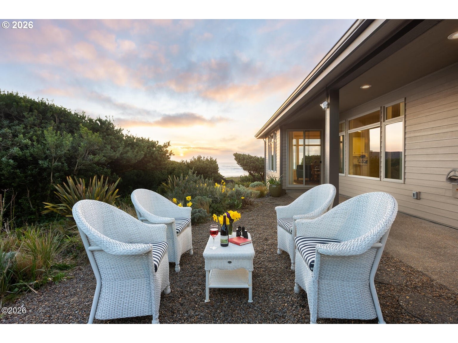 (503) 893-8874Sweeping Pacific Ocean views, High Quality Craftsmanship, and over 350,000 in recent improvements make this beautifully updated one-level home a standout in the gated Sandpiper Shores community. Designed for effortless coastal living, the home offers stunning sunsets, incredible storm watching, and easy access to nearby deeded beach access and the private Hidden Lake park and trail system. The home features approximately 1,989 square feet with 2 bedrooms plus a dedicated office and light-filled living spaces designed to capture the ocean backdrop. The gourmet kitchen includes quartz countertops, a JennAir cooktop, and a KitchenAid combination microwave and oven, creating a perfect space for both everyday living and entertaining. Recent upgrades include a cement tile roof, Hardie cement siding, new house wrap, new gutters, Milgard double-pane windows and sliding doors, a Wayne Dalton fiberglass garage door, and a striking mahogany front entry door, creating a durable and beautifully refreshed exterior designed for the coastal climate. Inside, the home features Cortec luxury vinyl plank flooring throughout, fresh interior paint, updated LED lighting, quartz countertops in the kitchen and bathrooms, a refreshed guest bath, and an updated primary bath with new fixtures and lighting. The living room is anchored by a beautifully redesigned fireplace surround and mantel, adding warmth and character to the space. Comfort is ensured year-round with a Mitsubishi ducted heat pump system installed in 2022 for efficient heating and cooling. Residents of Sandpiper Shores enjoy a private gated entry, maintained landscaping, and a private park with scenic trails winding to and around Hidden Lake. The home is also just moments from deeded beach access, offering easy enjoyment of miles of sandy shoreline. With exceptional upgrades, thoughtful design, and unforgettable ocean views, this home offers a rare opportunity to experience the very best of Oregon Coast living.