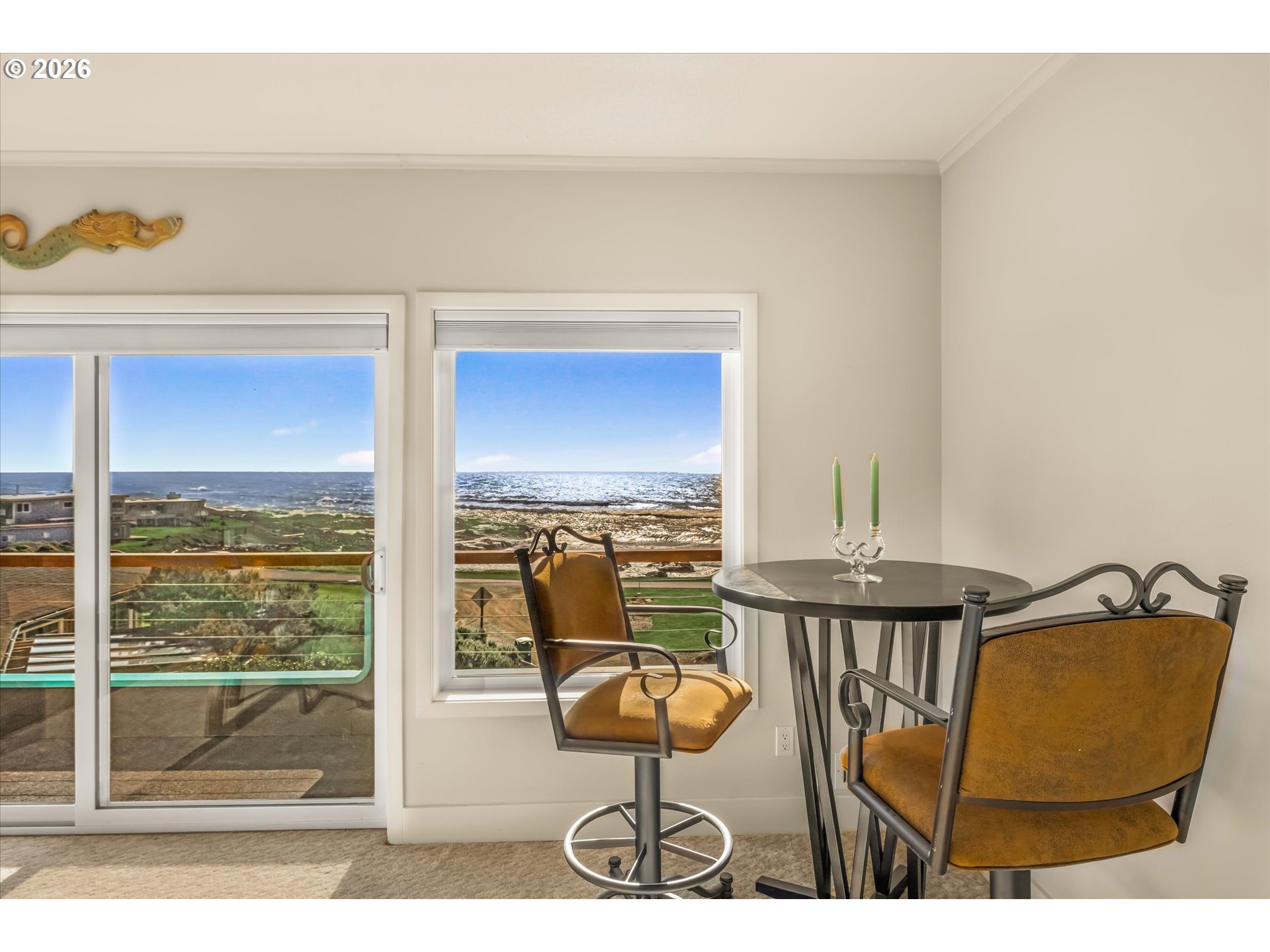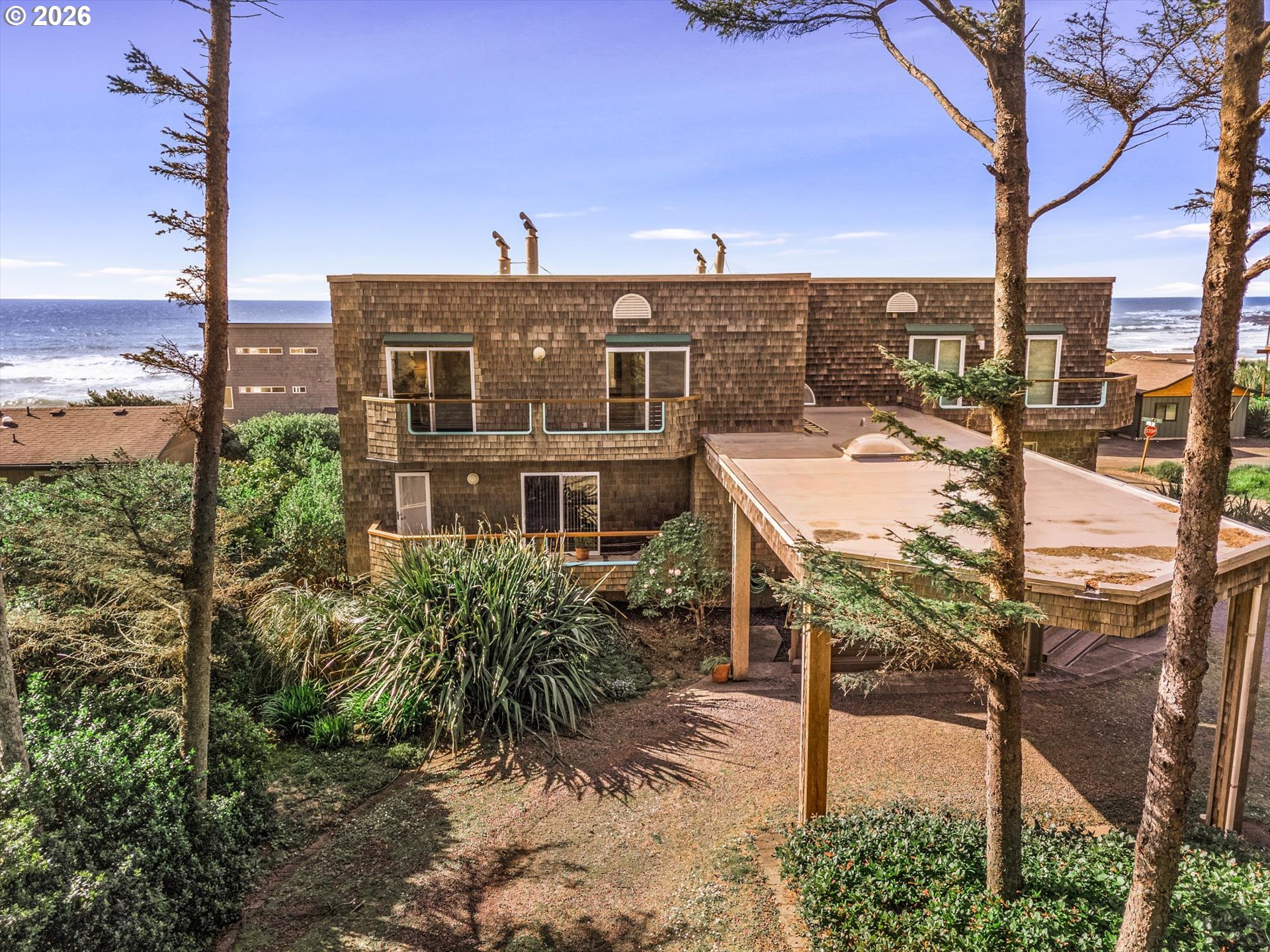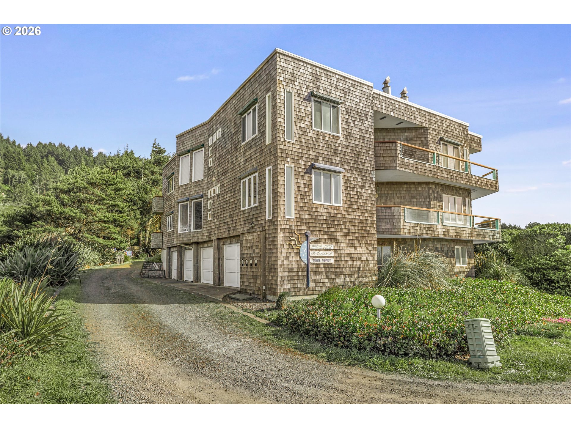 DRAMATIC Ocean/Basalt Rock Views from this LUXURIOUS condo in the City of Yachats. One of only four units in Shellmidden Shores Condominiums, this unit is in the desirable SouthWest facing upper location overlooking the crashing waves. The covered Entryway leads up the stairs to main-level living and an open floor plan featuring wall-to-wall VIEWS from the living/dining/kitchen areas. Enjoy the view while you prepare meals in the beautifully updated "Cook's" kitchen! Oceanview deck off of Living Area and Primary Suite. Exceptional whitewater VIEWS from the Primary Suite. Pamper yourself in the Primary Bath which features a jetted tub and separate shower. Two additional bedrooms and a bath for family and guests. Plenty of parking with an attached single car garage and a designated exterior parking space. Home comes tastefully furnished with all appliances. New carpet was installed in 2023. Move right in! The building complex boasts a new roof in 2023. This condo is within one of THE most sought-after areas in the charming City of Yachats! Close to great restaurants, fun shops and the 804 Trail which leads from old growth forest to the sandy beaches. Come and see why so many people come to visit and end up staying forever in Yachats, Gem of the Oregon Coast.