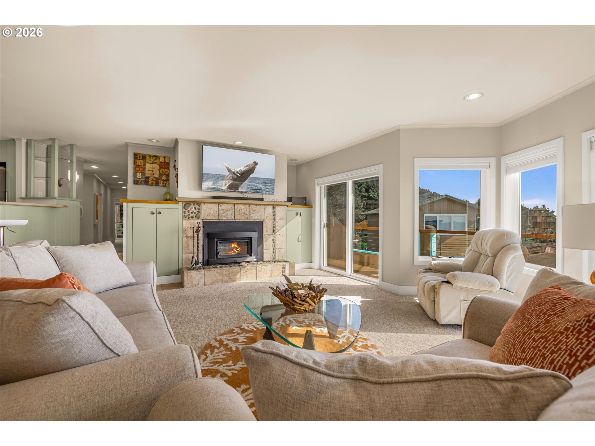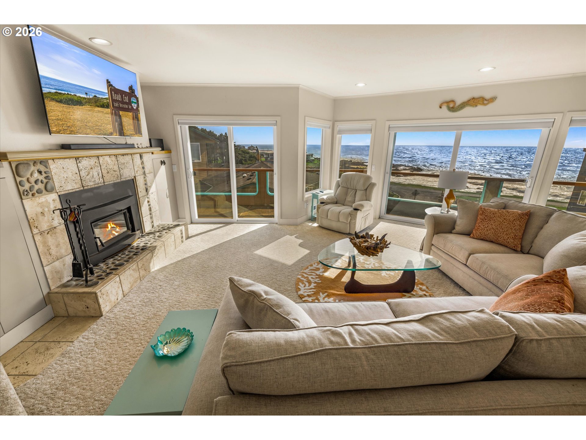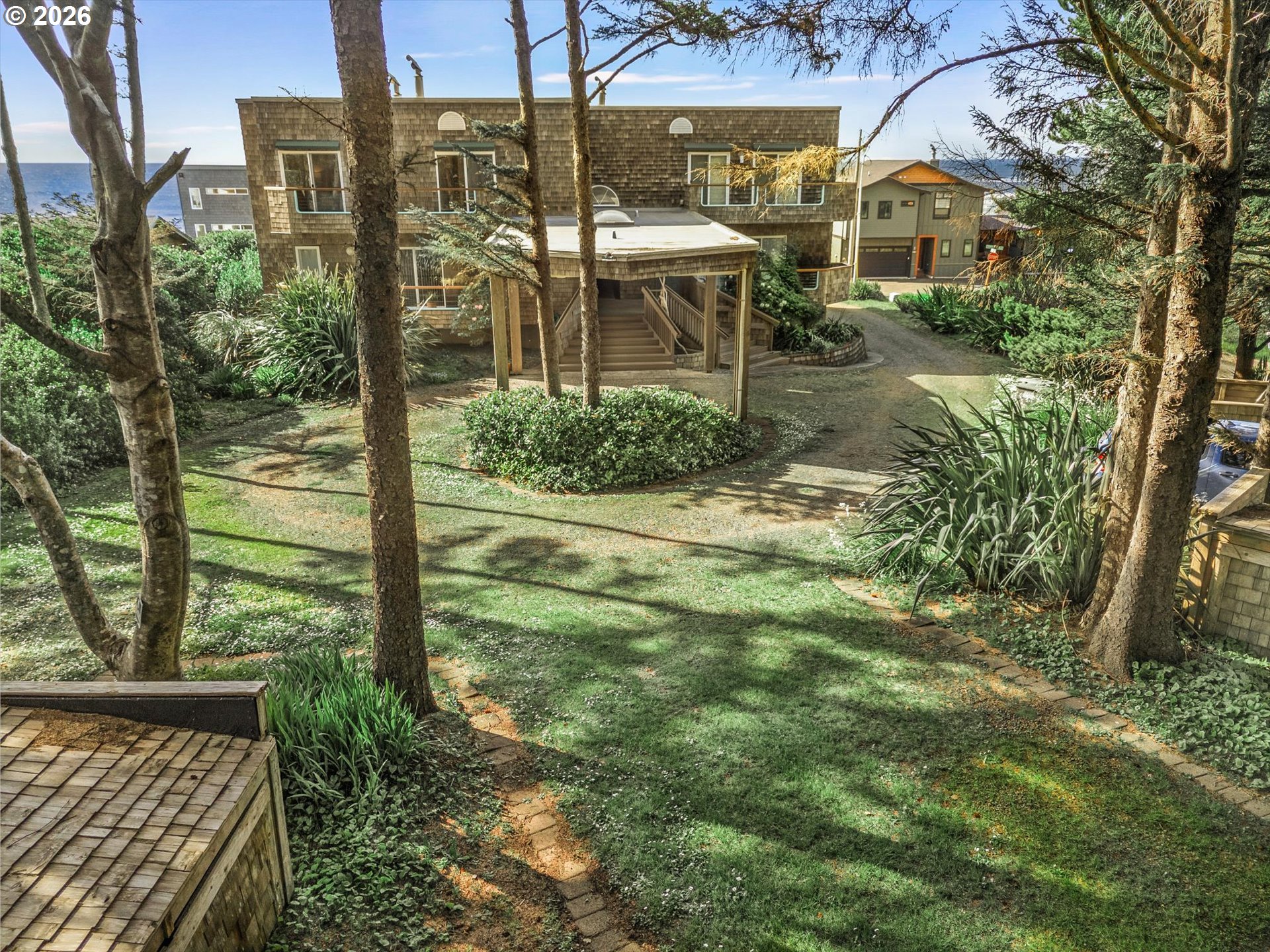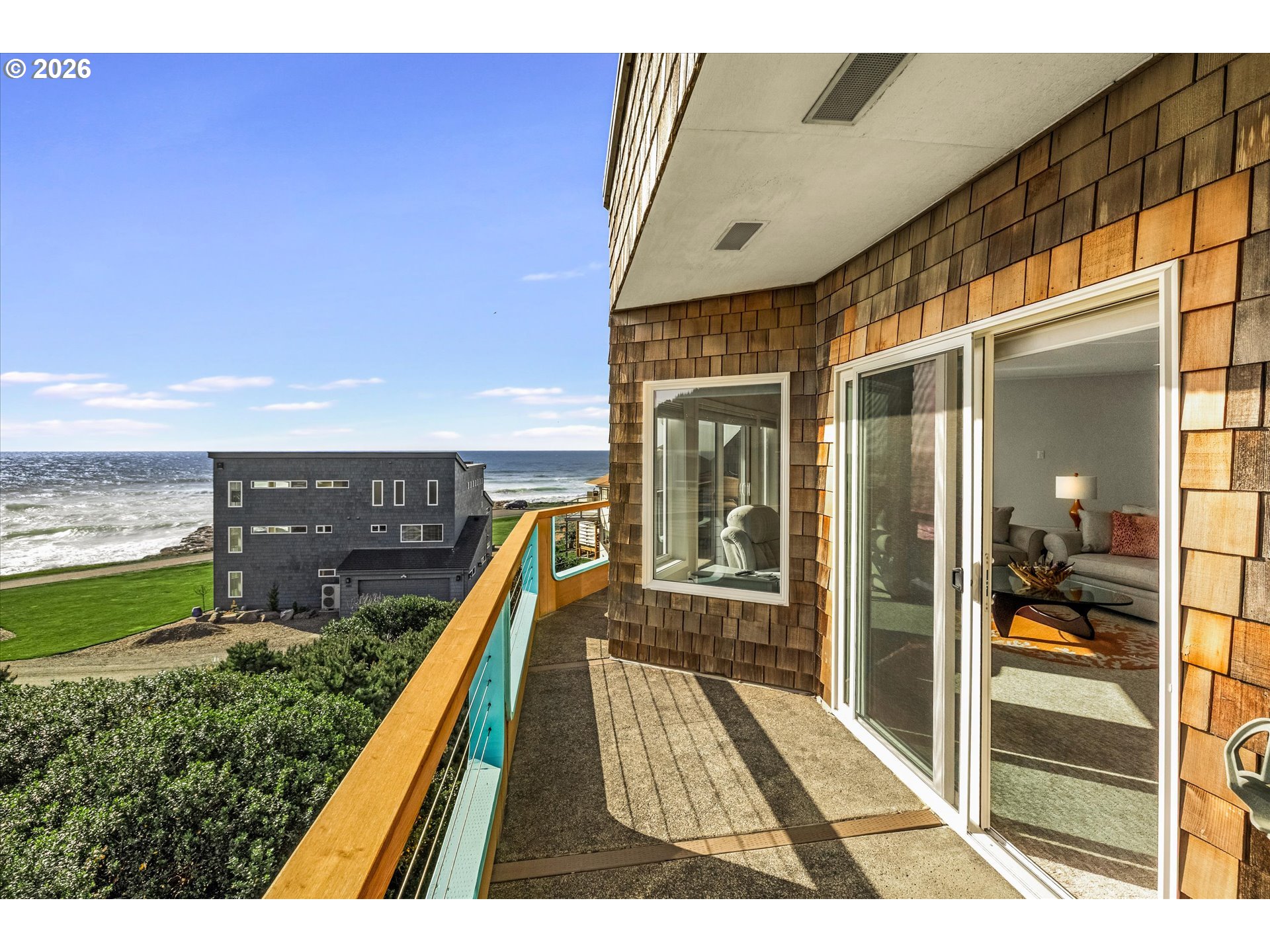 DRAMATIC Ocean/Basalt Rock Views from this LUXURIOUS condo in the City of Yachats. One of only four units in Shellmidden Shores Condominiums, this unit is in the desirable SouthWest facing upper location overlooking the crashing waves. The covered Entryway leads up the stairs to main-level living and an open floor plan featuring wall-to-wall VIEWS from the living/dining/kitchen areas. Enjoy the view while you prepare meals in the beautifully updated "Cook's" kitchen! Oceanview deck off of Living Area and Primary Suite. Exceptional whitewater VIEWS from the Primary Suite. Pamper yourself in the Primary Bath which features a jetted tub and separate shower. Two additional bedrooms and a bath for family and guests. Plenty of parking with an attached single car garage and a designated exterior parking space. Home comes tastefully furnished with all appliances. New carpet was installed in 2023. Move right in! The building complex boasts a new roof in 2023. This condo is within one of THE most sought-after areas in the charming City of Yachats! Close to great restaurants, fun shops and the 804 Trail which leads from old growth forest to the sandy beaches. Come and see why so many people come to visit and end up staying forever in Yachats, Gem of the Oregon Coast.