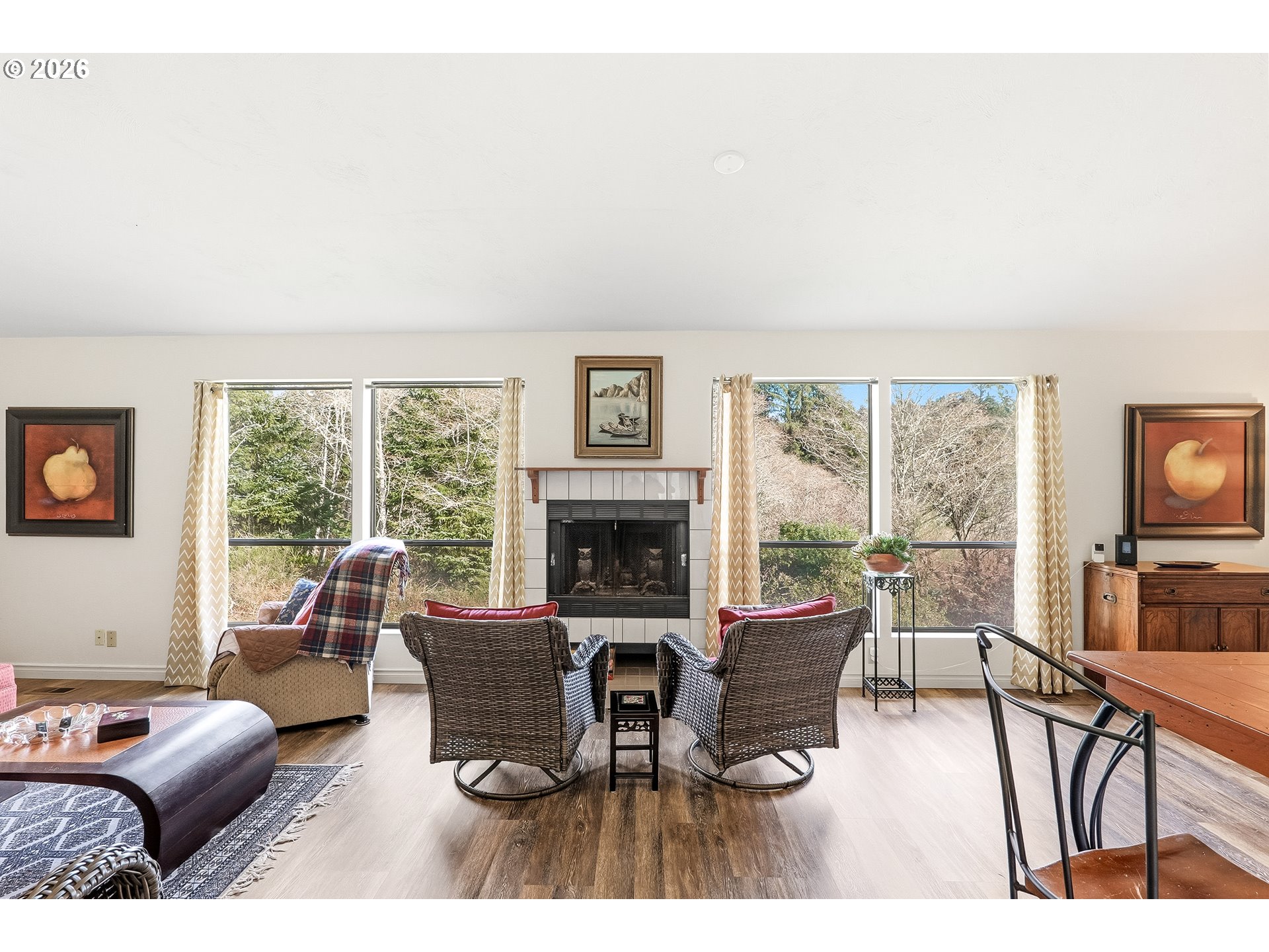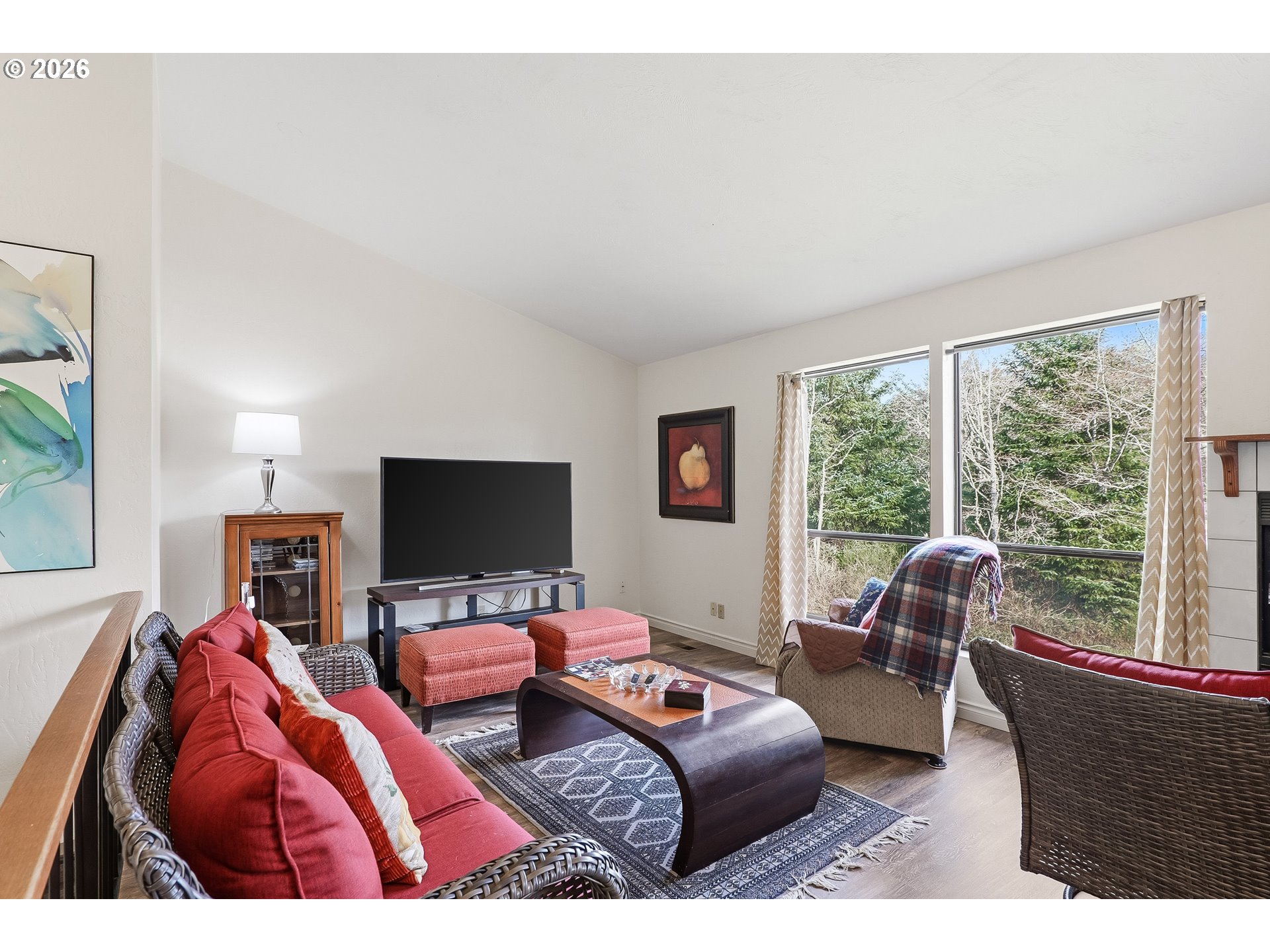 So many possibilities await in this unique, full-time home or beach retreat in NE Lincoln City. With over 1,000 square feet per level, this versatile property offers two separate living spaces—ideal as a coastal retreat, full-time residence, monthly rental, private guest quarters, or a setup for independent living. The flexible layout with two spacious bedroom suites enhances functionality, livability, and comfort while offering exceptional potential. The upper level is bright and inviting, overlooking a peaceful, secluded setting, with high ceilings and a cozy wood-burning fireplace. The lower level offers its own living space with a desirable walk-out design, providing easy outdoor access and added privacy—perfect for guests, extended living, or rental flexibility. While move-in ready, you can bring your personal style and ideas to add a more modern touch and truly make it your own. Recent improvements include upstairs LVP flooring (Feb 2022), a new natural gas furnace (Dec 2021), a new gas water heater (Aug 2023), and a sewer line inspection and cleaning (Oct 2025). Additional highlights include a two-car garage and a welcoming courtyard entry. Conveniently located just blocks from golf, dining, shopping, Chinook Winds Casino Resort, and the miles of sandy beaches Lincoln City is known for, this versatile coastal property is ready to complement your lifestyle.