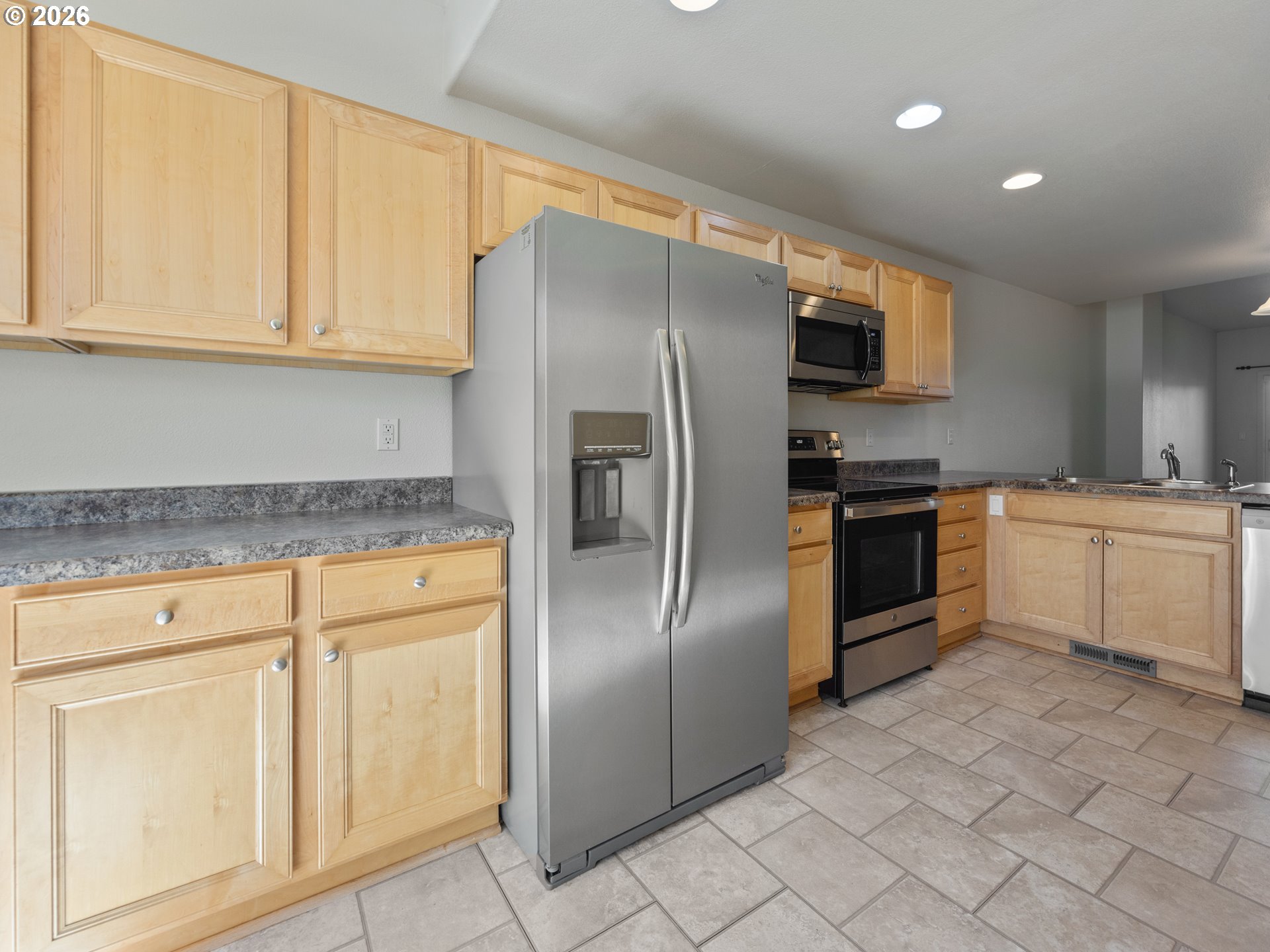 Dishwasher, Disposal, FreeStandingRange, FreeStandingRefrigerator, Microwave, StainlessSteelAppliance, Til