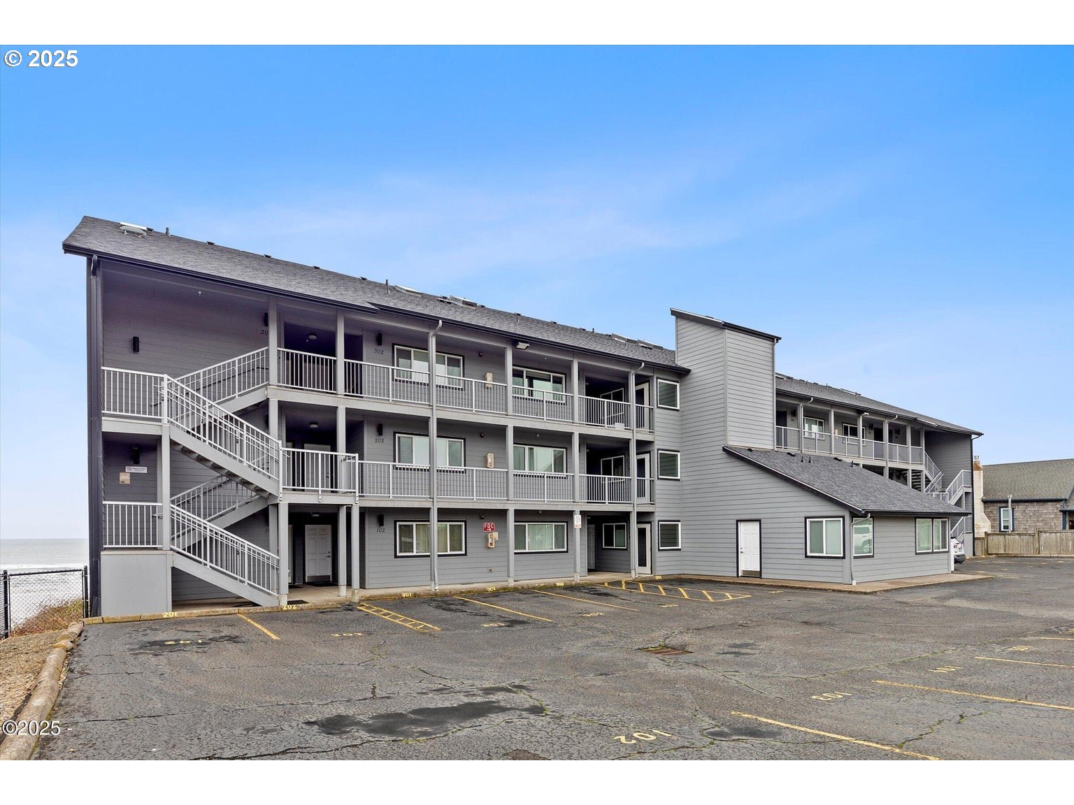 Experience coastal living at its finest in this oceanfront Nye Sands condominium, where short-term rentals are allowed (buyer to verify details with the City of Newport). This second-floor unit offers convenient elevator access, an assigned parking space, and easy single-level living. Step out onto the full-width balcony to enjoy sweeping views stretching from the Yaquina River jetty to the Yaquina Head Lighthouse. Beach access is just down the hill, opening the way to miles of beautiful shoreline. Located in the heart of the Nye Beach district, this home places you close to local shops, art galleries, restaurants, and the community arts center—an area known for its vibrant coastal charm.Whether you're looking for a full-time home, a vacation getaway, or a strong short-term rental opportunity, this oceanfront condo offers comfort, flexibility, and unforgettable views.