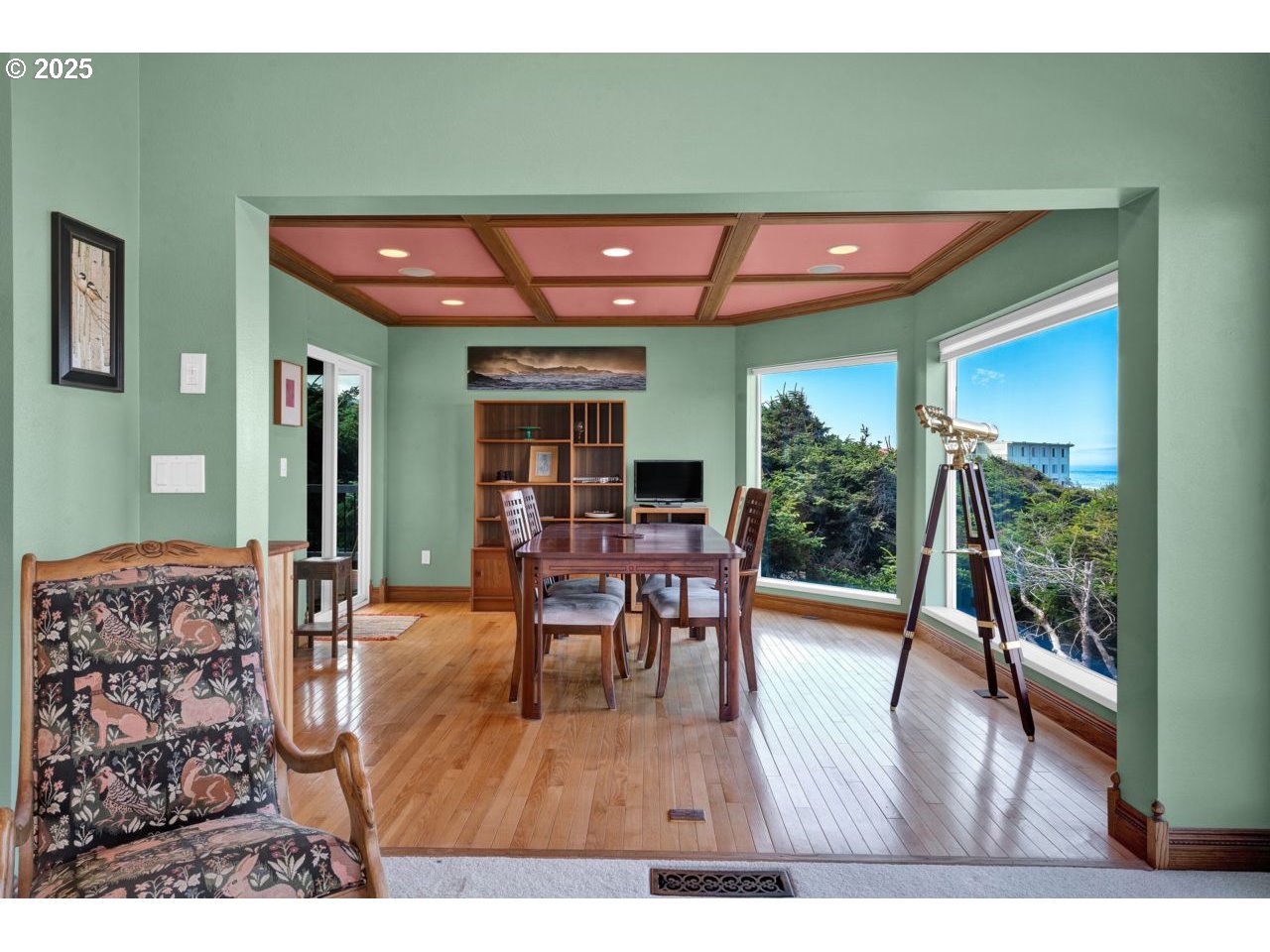 (503) 893-8874Welcome to Yachats, the Gem of the Oregon Coast! One house back from the ocean this stunning 3-story beauty has magnificent white water views. Starting on the lower level are two ensuite bedrooms with a large primary with two closets and large bathroom including two sinks, soaker tub and separate shower. Head to the main floor on easy stairs to awe inspiring views from the multiple windows of the main living area. Large kitchen with a nice pantry, propane, pass-thru fireplace and an expansive living/dining area. Head to the next level with a spiral staircase to more views. This area has a full bath and many built-ins and office/computer space, a sitting area and overlooks the living area. There's an attached two car garage and lots of storage behind the garage. Towards the ocean there is the great 804 walking trail with benches to enjoy the ocean up close. Please make an appointment to see, you won't be disappointed.