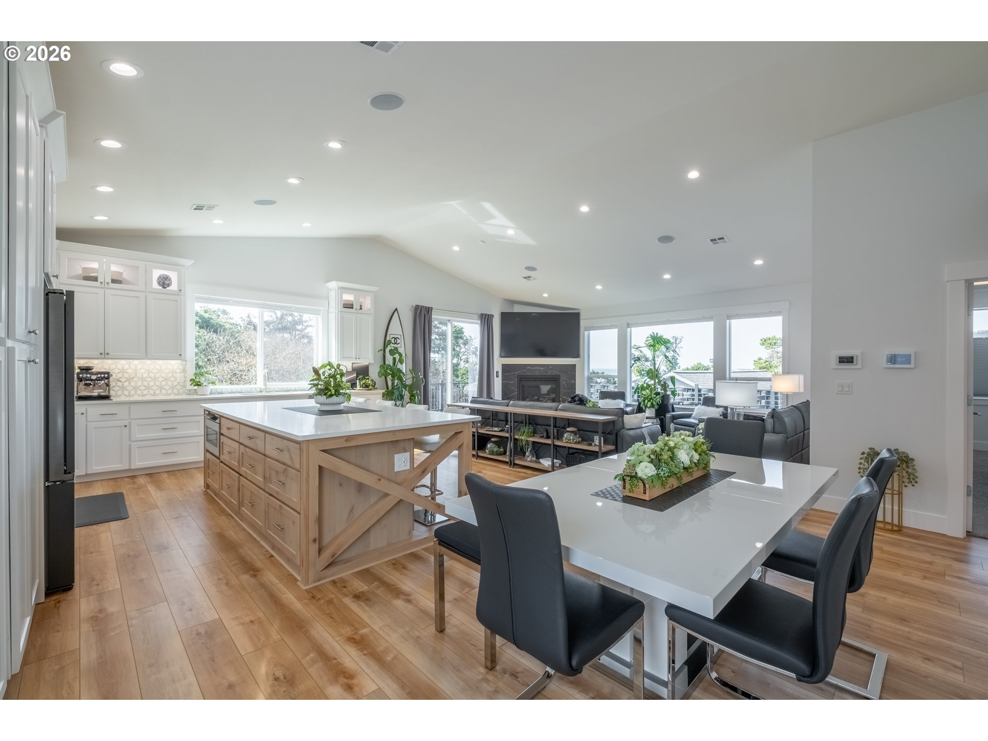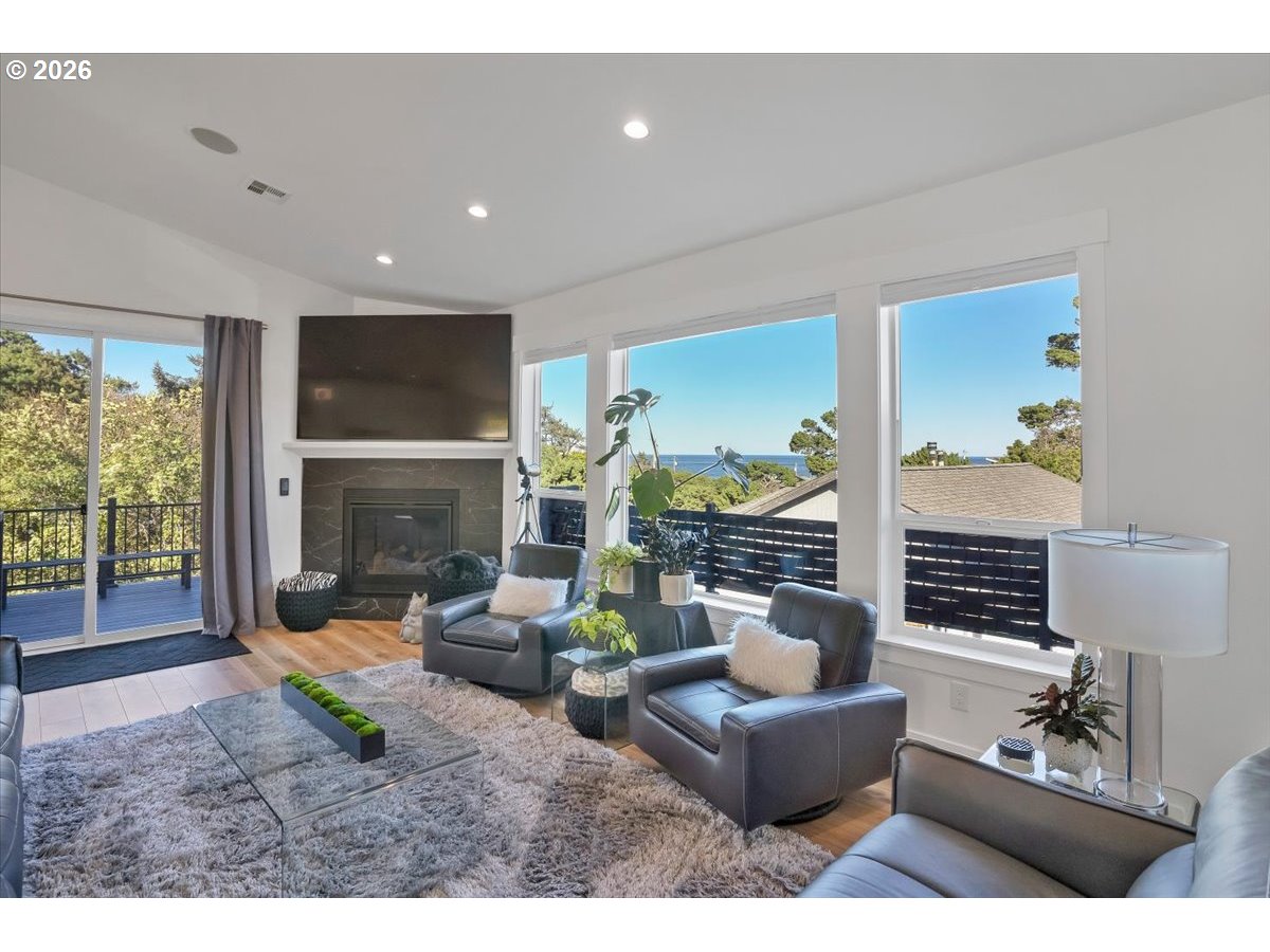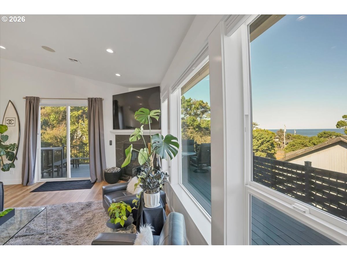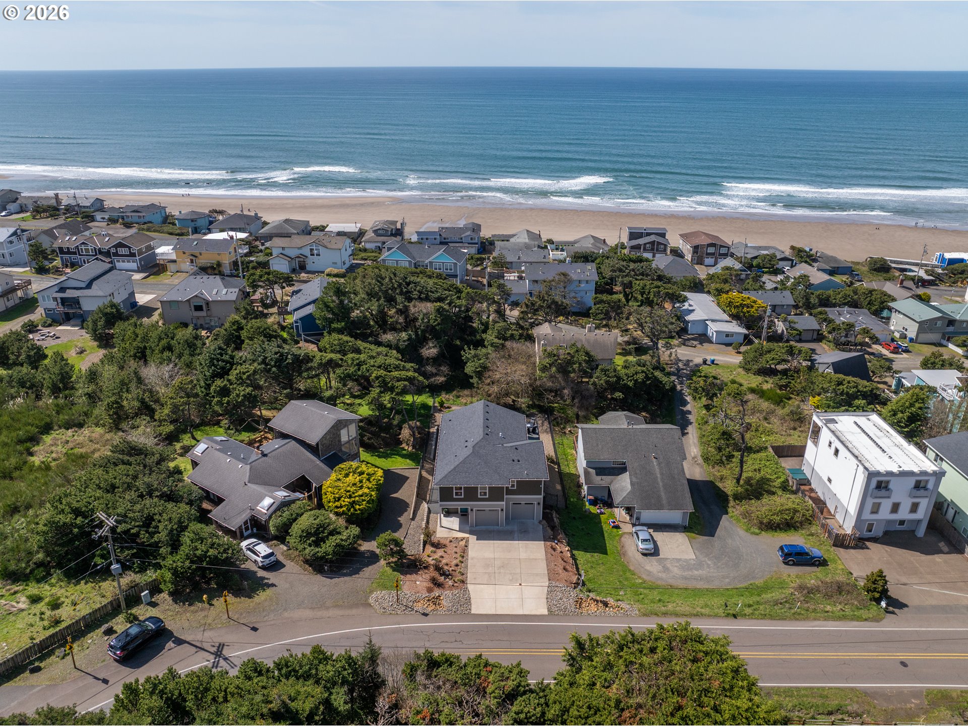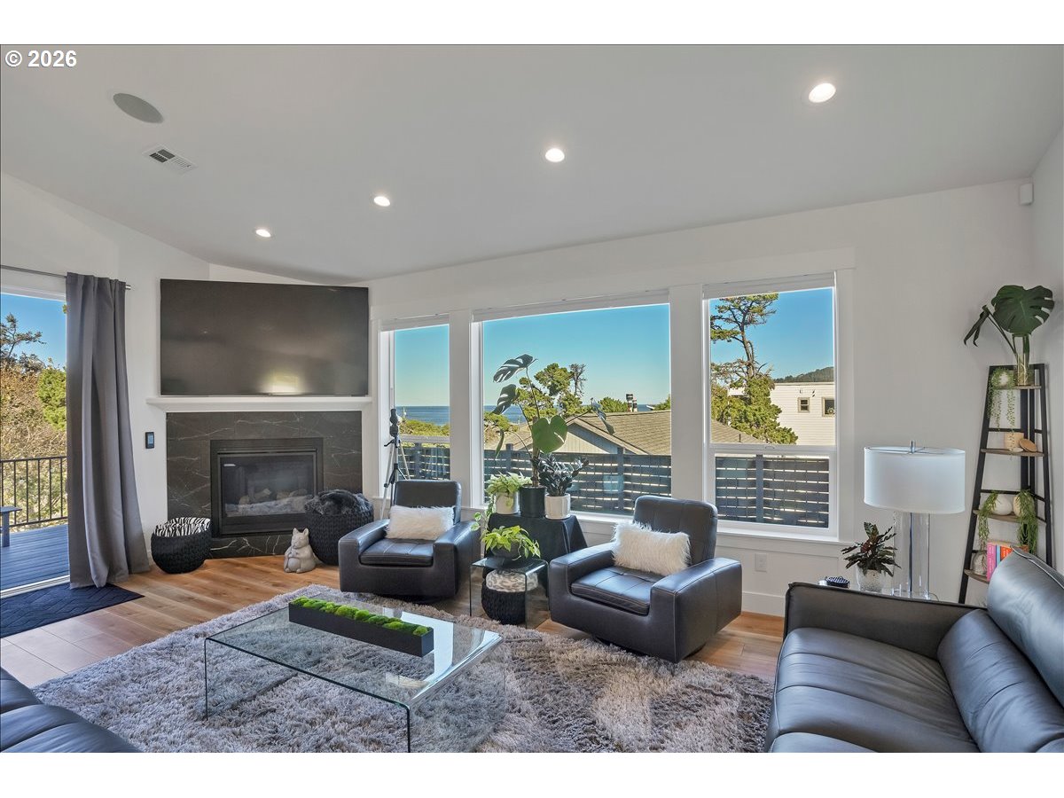 Luxury that inspires in the coveted Roads End neighborhood, where thoughtful design meets elevated coastal living. This stunning 2,636 sq ft modern home welcomes you with an open-concept main level crafted for both everyday comfort and refined entertaining. The chef’s kitchen is a true centerpiece, featuring quartz countertops, a custom island, premium appliances, and a gas range, all seamlessly connected to a light-filled open living space with soaring ceilings, designer finishes, and a dramatic statement fireplace.The primary suite offers a private retreat, complete with a custom walk-in closet and a spa-inspired bath showcasing a steam shower. A second bedroom and spacious laundry room on the main level provide convenience and flexibility. Downstairs, the home continues to impress with a guest-ready en suite, kitchenette, and expansive flex space ideal for multi-generational living, extended stays, or entertaining. Even a doggie outlet space.Step outside to experience exceptional outdoor living with two oversized decks designed for gathering and relaxing, a fenced yard with a fire pit, and a lower covered patio for year-round enjoyment.Immerse yourself in the sights and sounds of the coast—enjoy views of active ocean waves, breathe in the fresh salt air, and take in magnificent sunsets that paint the sky each evening, all complemented by the iconic silhouette of God’s Thumb. With beach access just steps away, this home captures the essence of coastal luxury living.Ideally located near renowned coastal restaurants, charming shabby chic boutiques, the Lincoln City Outlets, and Chinook Winds Casino offering not just gaming but a variety of entertainment this home blends luxury with the best of coastal lifestyle and convenience.