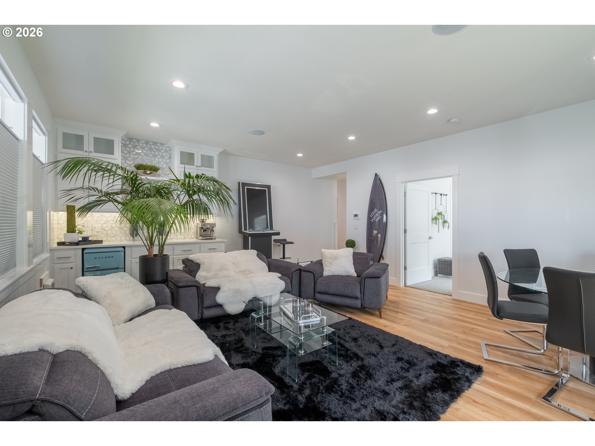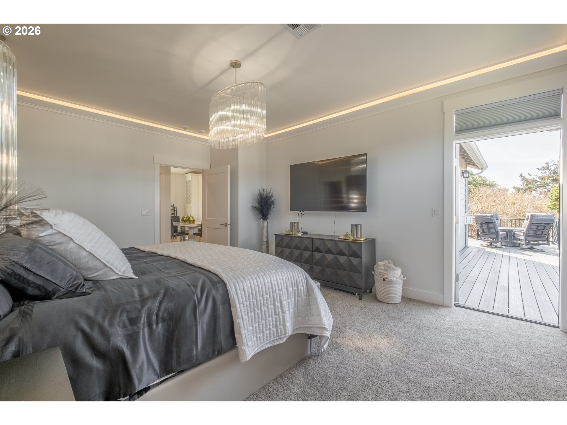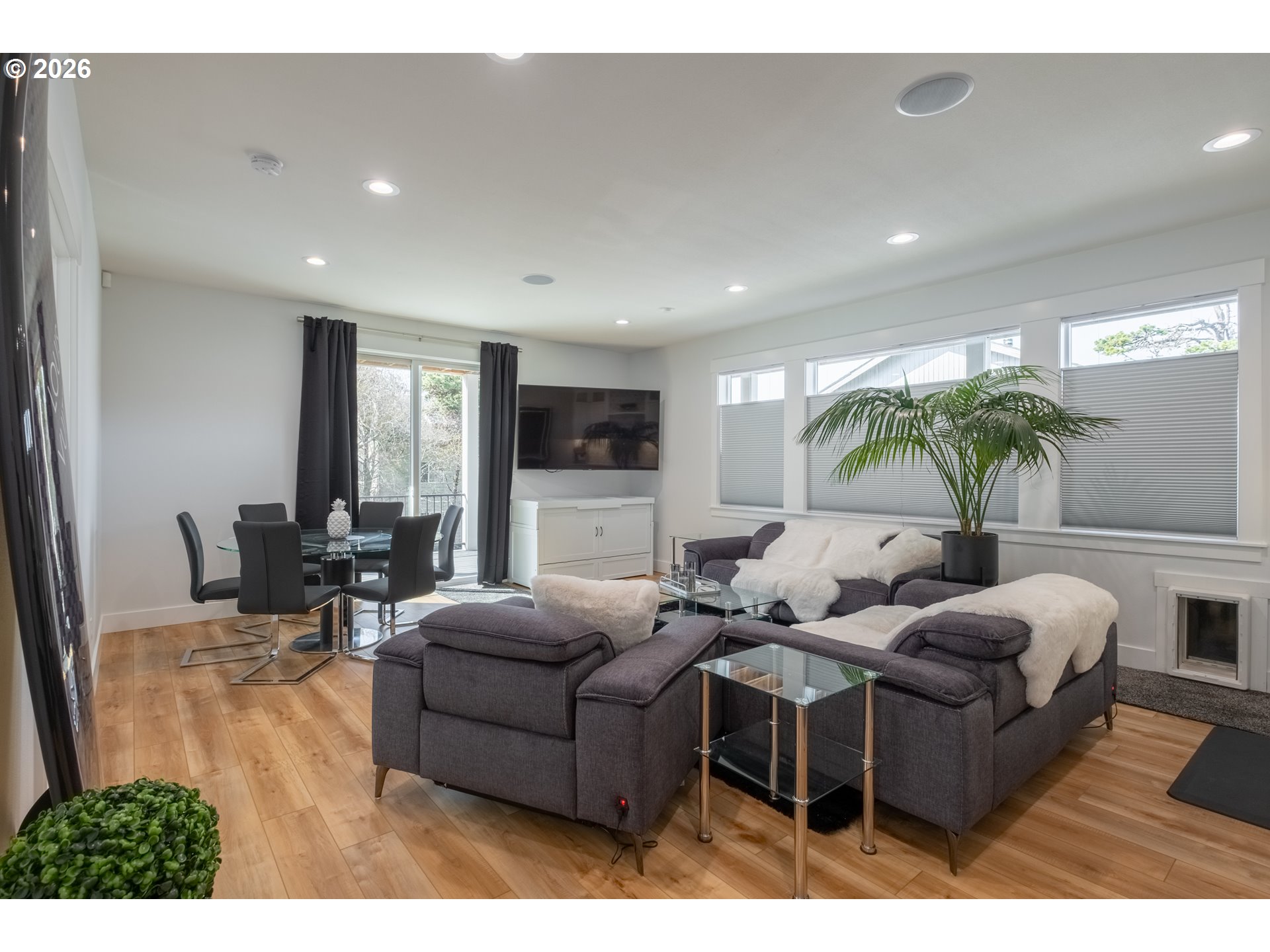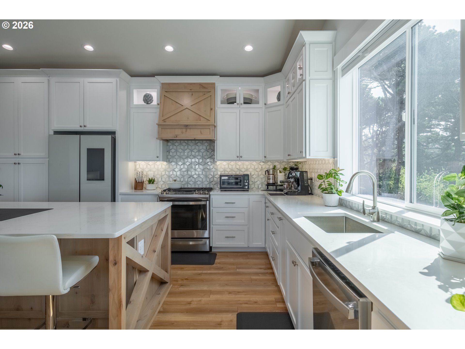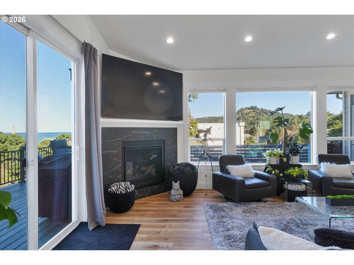 Luxury that inspires in the coveted Roads End neighborhood, where thoughtful design meets elevated coastal living. This stunning 2,636 sq ft modern home welcomes you with an open-concept main level crafted for both everyday comfort and refined entertaining. The chef’s kitchen is a true centerpiece, featuring quartz countertops, a custom island, premium appliances, and a gas range, all seamlessly connected to a light-filled open living space with soaring ceilings, designer finishes, and a dramatic statement fireplace.The primary suite offers a private retreat, complete with a custom walk-in closet and a spa-inspired bath showcasing a steam shower. A second bedroom and spacious laundry room on the main level provide convenience and flexibility. Downstairs, the home continues to impress with a guest-ready en suite, kitchenette, and expansive flex space ideal for multi-generational living, extended stays, or entertaining. Even a doggie outlet space.Step outside to experience exceptional outdoor living with two oversized decks designed for gathering and relaxing, a fenced yard with a fire pit, and a lower covered patio for year-round enjoyment.Immerse yourself in the sights and sounds of the coast—enjoy views of active ocean waves, breathe in the fresh salt air, and take in magnificent sunsets that paint the sky each evening, all complemented by the iconic silhouette of God’s Thumb. With beach access just steps away, this home captures the essence of coastal luxury living.Ideally located near renowned coastal restaurants, charming shabby chic boutiques, the Lincoln City Outlets, and Chinook Winds Casino offering not just gaming but a variety of entertainment this home blends luxury with the best of coastal lifestyle and convenience.