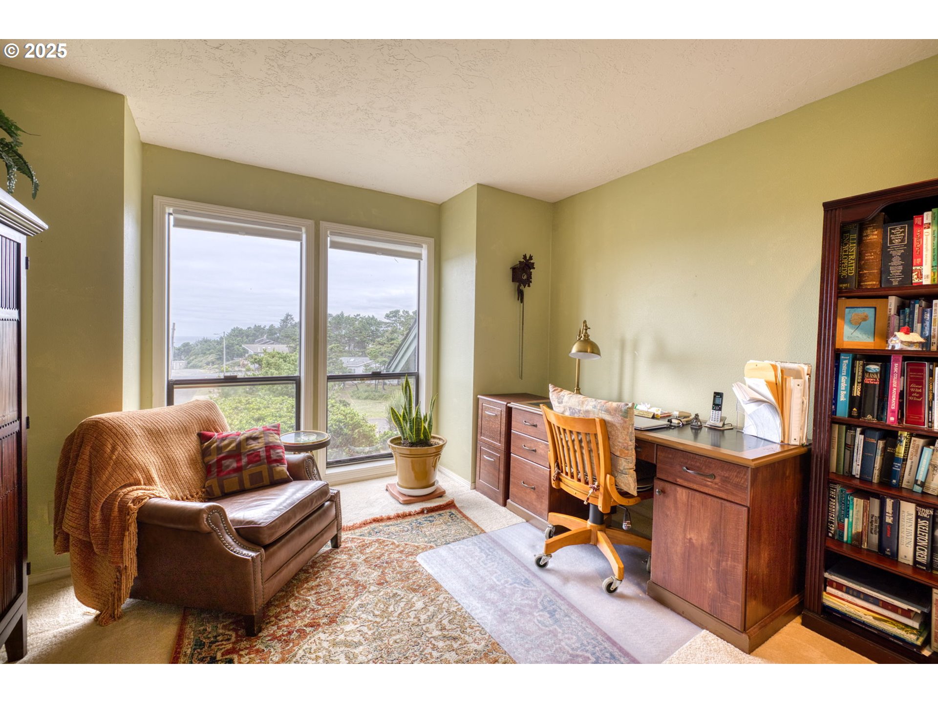 (503) 893-8874Ocean view home on the Yaquina Lighthouse Peninsula, set on a commanding hillside with a private greenbelt backdrop. Features a grand entry and formal foyer leading to 4 bedrooms and 2.5 baths, including a spacious primary suite. Formal living and entertaining areas are designed to capture expansive Pacific views, with large windows maximizing natural light. A separate private art studio offers flexibility for creative use, office, or retreat. The 3-car garage provides ample space, with a new garage door scheduled for installation. spacious layout designed to enhance comfort and function. Outdoors, enjoy ocean breezes and coastal sunsets in a private, natural setting with proximity to Yaquina Head, trails, and beaches. A rare opportunity to own a property with both hillside privacy and ocean vistas.