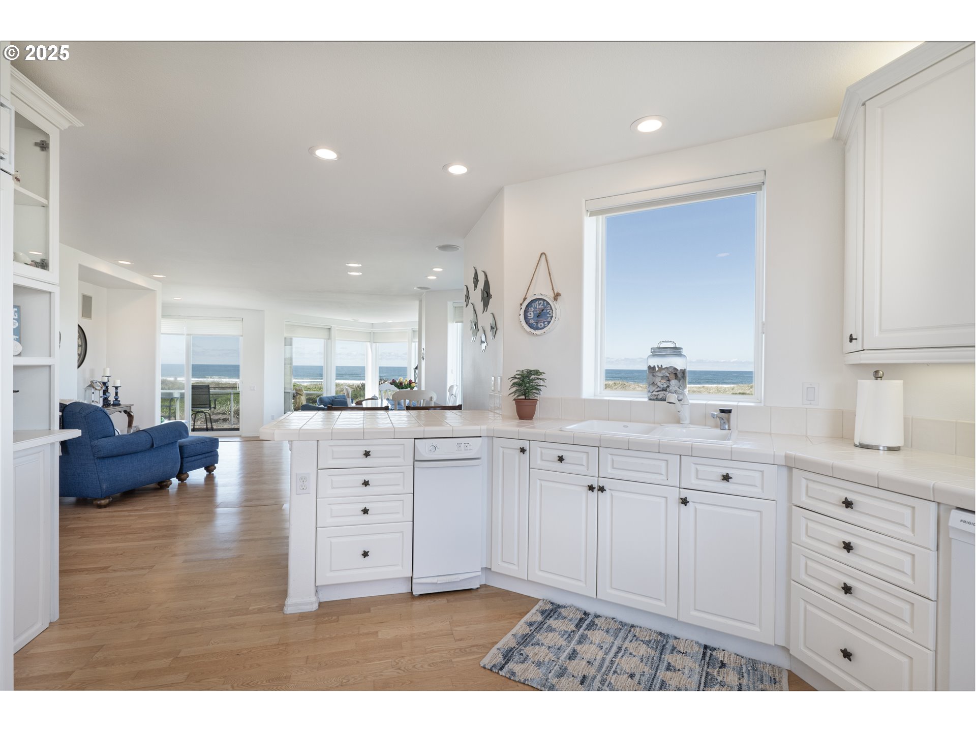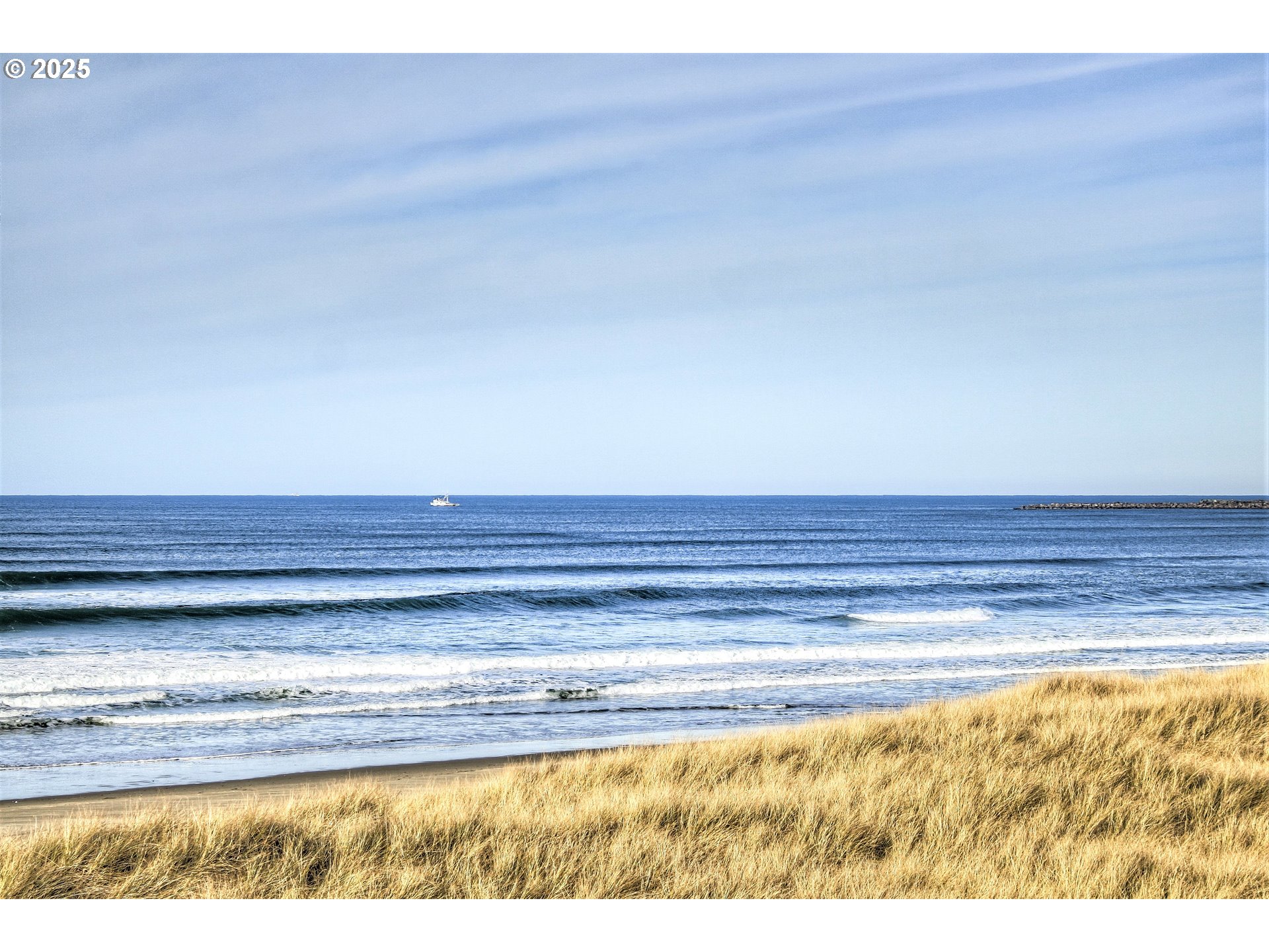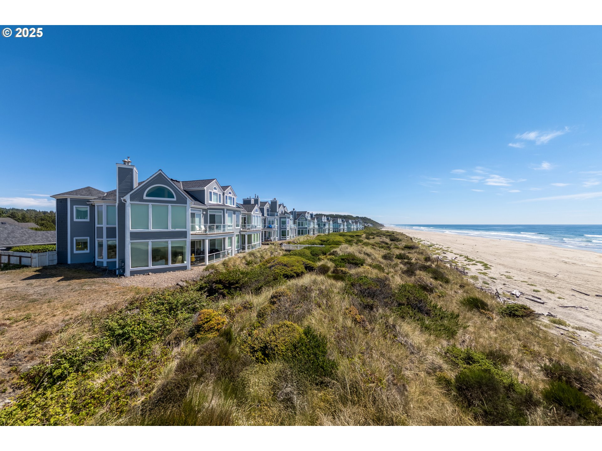 This rare end-unit oceanfront condominium is in the Southshore gated community in South Beach, Oregon. This home was built with exterior concrete walls, ceilings and floors. This construction method offers superior energy efficiency and sound proofing than traditional stick-built construction. The condo has extra-large windows and its specific location on the north-end results in premium views of the dunes and ocean as well as the north jetty and Yaquina Head Lighthouse. The living and primary bedroom have sliding glass doors leading to a large westside covered patio complete with windscreens providing a delightful outdoor living space. New roofing, windows, siding and exterior painting combine to make this condo better than new. The main living has an open space design to provide the living, dining and kitchen areas with excellent ocean views. Interior features of the home include wood flooring in the living areas and wall-to-wall carpeting in the bedrooms. The kitchen includes tile counters, eating bar and built-in appliances. The primary bedroom features patio access, ensuite 5-piece bathroom and walk-in closet. Enjoy your time at the beach in this beautiful home. Southshore is a friendly and welcoming community offering many amenities and activities. Amenities include the community clubhouse with indoor pool and exercise, sauna and steam rooms, indoor/outdoor tennis and pickleball facilities, community park, private roads and beach access paths.The list price is based on Buyer assuming a special assessment obligation for a recent project to renovate the building exterior.